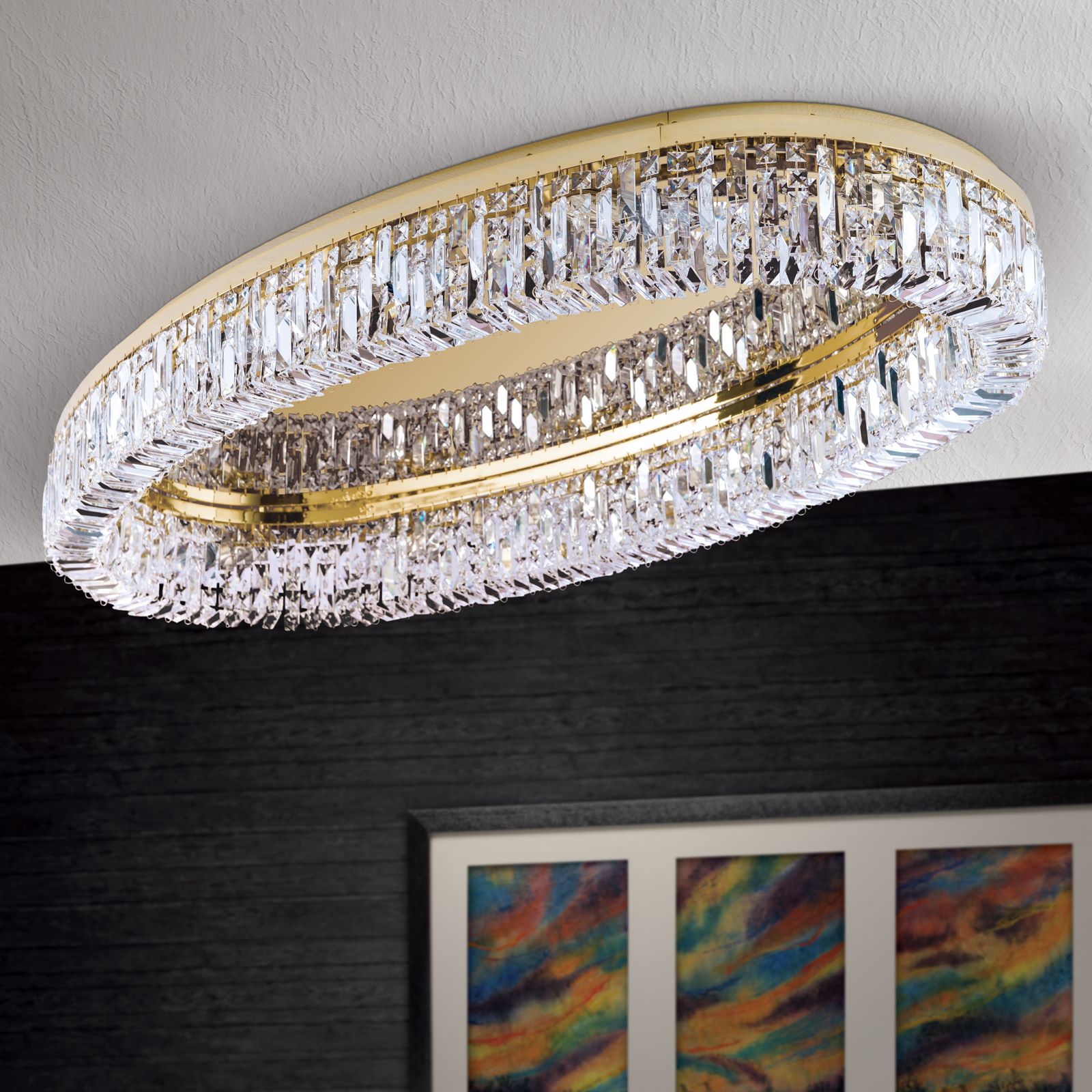 Kristalldeckenleuchte RING, 12-flammig, oval, gold