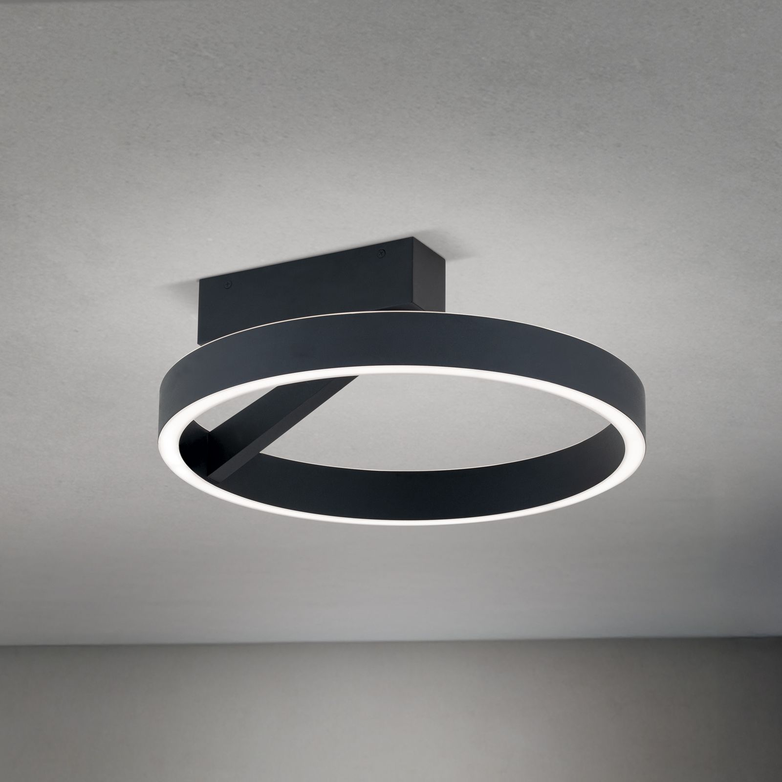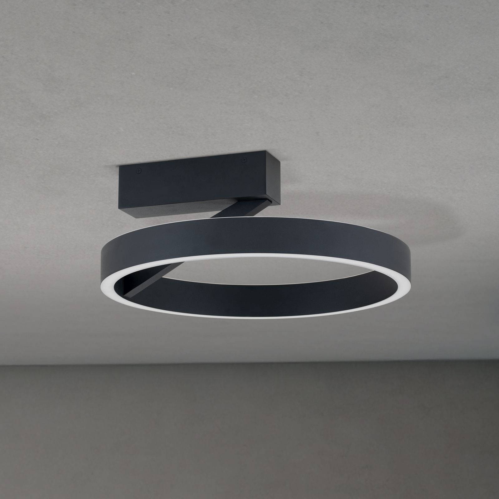 Der filigrane Aluminiumring wird durch einen dezenten Verbindungsbalken fest mit dem Baldachin verbunden – ein klares Designstatement mit Leichtigkeit und Raffinesse. Mit einer Leistungsaufnahme von 40 Watt und einer Lichtstärke von 2500 Lumen bietet die Leuchte eine kraftvolle und gleichmäßige Ausleuchtung.