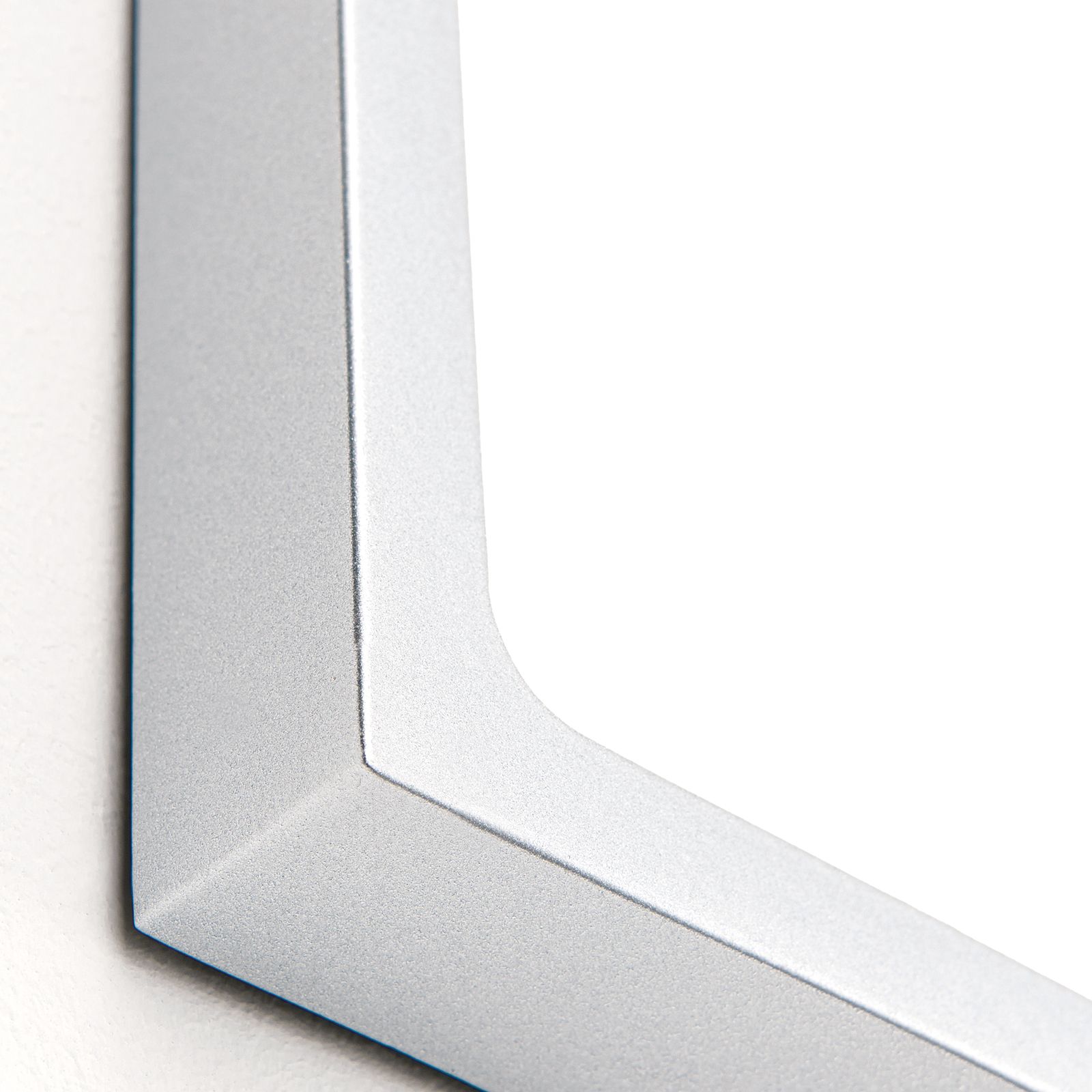 Das Gehäuse in den Farben Titan oder Weiß erhältlich und nur 2,4 cm hoch, weshalb die Leuchte problemlos an niedrigen Decken angebracht werden kann. Aufgrund ihres technisch puristischen Looks verschmilzt sie mit der Architektur.