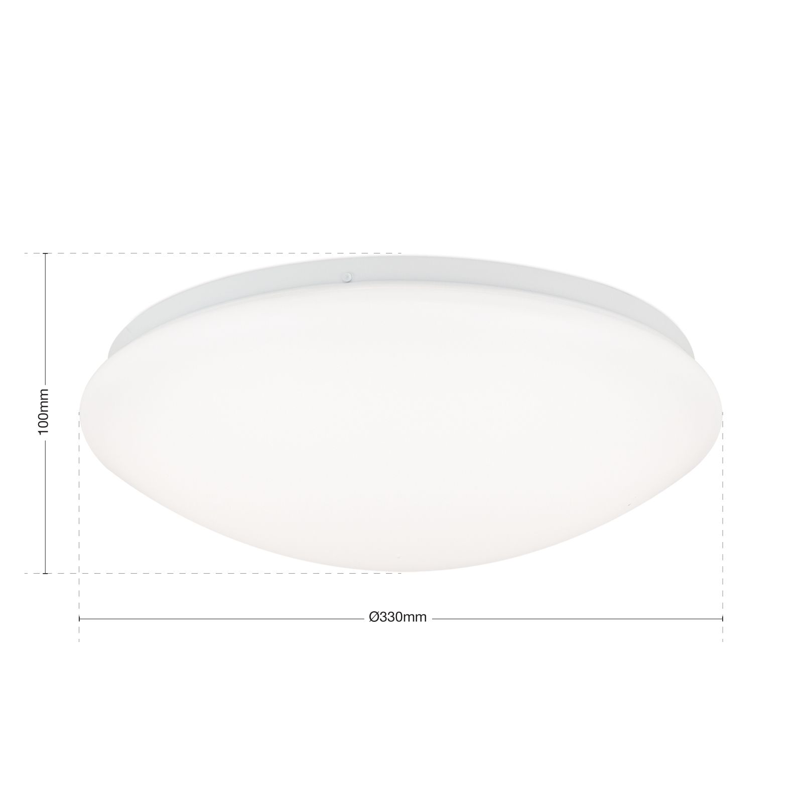 Die einfach gestaltete Deckenleuchte NEDO lässt sich aufgrund ihrer Schlichtheit vielseitig einsetzen und punktet mit ihrer runden zeitlosen Form. Sie kann problemlos an der Decke oder an der Wand montiert werden, wo sie gleichmäßig Licht abgibt. Aufgrund der Höhe von nur 10 cm eignet sie sich gut für Räume mit niedriger Deckenhöhe. Mit einem opalweißen Diffusor erhellt sie den dafür vorgesehenen Bereich angenehm ohne zu blenden. Die Deckenleuchte verfügt über eine Leuchtkraft von 1255 Lumen bei einer warmweißen Farbtemperatur von 3000 Kelvin und kann so auch große Räume mit einer freundlichen und angenehmen Grundbeleuchtung versorgen. Da sie der Schutzklasse II angehört, verfügt sie über keinen Schutzleiter.