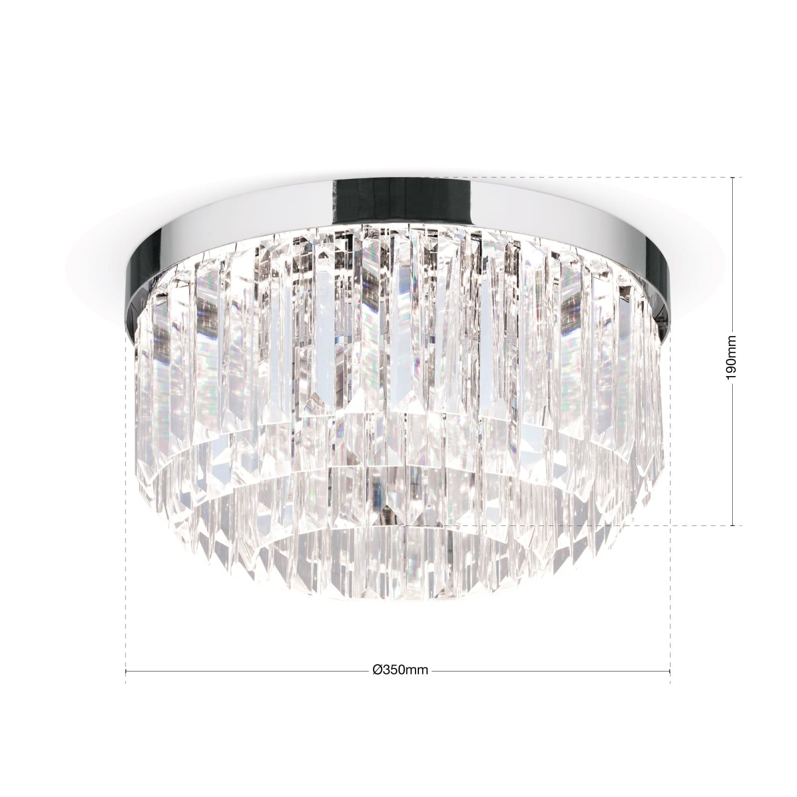 Die Deckenleuchte schafft eine blendfreie und ausgewogene Beleuchtung, die Lichtpunkte sind nahezu unsichtbar und erzeugen faszinierende Lichtbrechungen, die das kristalline Design voll zur Geltung bringen.
