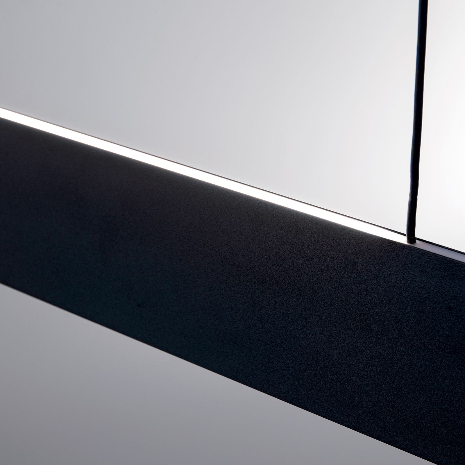 Das Zusammenspiel aus klaren Linien und Flächen bestimmt das Design der modernen LED Hängeleuchte GIDEON. Eine wahlweise mattschwarze- oder weiße Lackierung veredelt den schlanken, eineinhalb Meter langen Metallkörper der Leuchte.