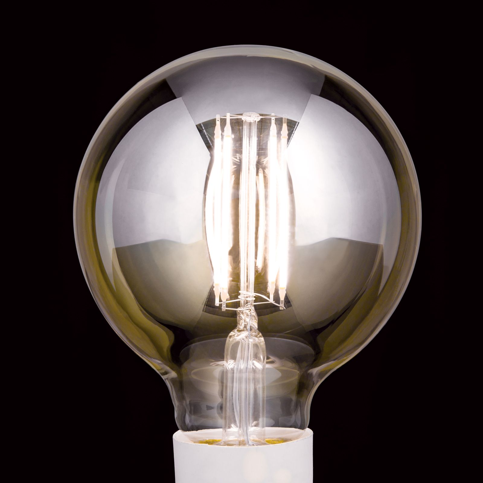 Dieses klare LED Leuchtmittel lässt durch sein ausgefallenes Glühfaden-Design ihren Wohnbereich im beliebten Retro-Stil erstrahlen. Die dimmbare LED-Lampe eignet sich für Leuchten mit E27 Fassung und ihr warmweißes Licht (2200 K) verbreitet eine gemütliche Wohlfühlatmosphäre.