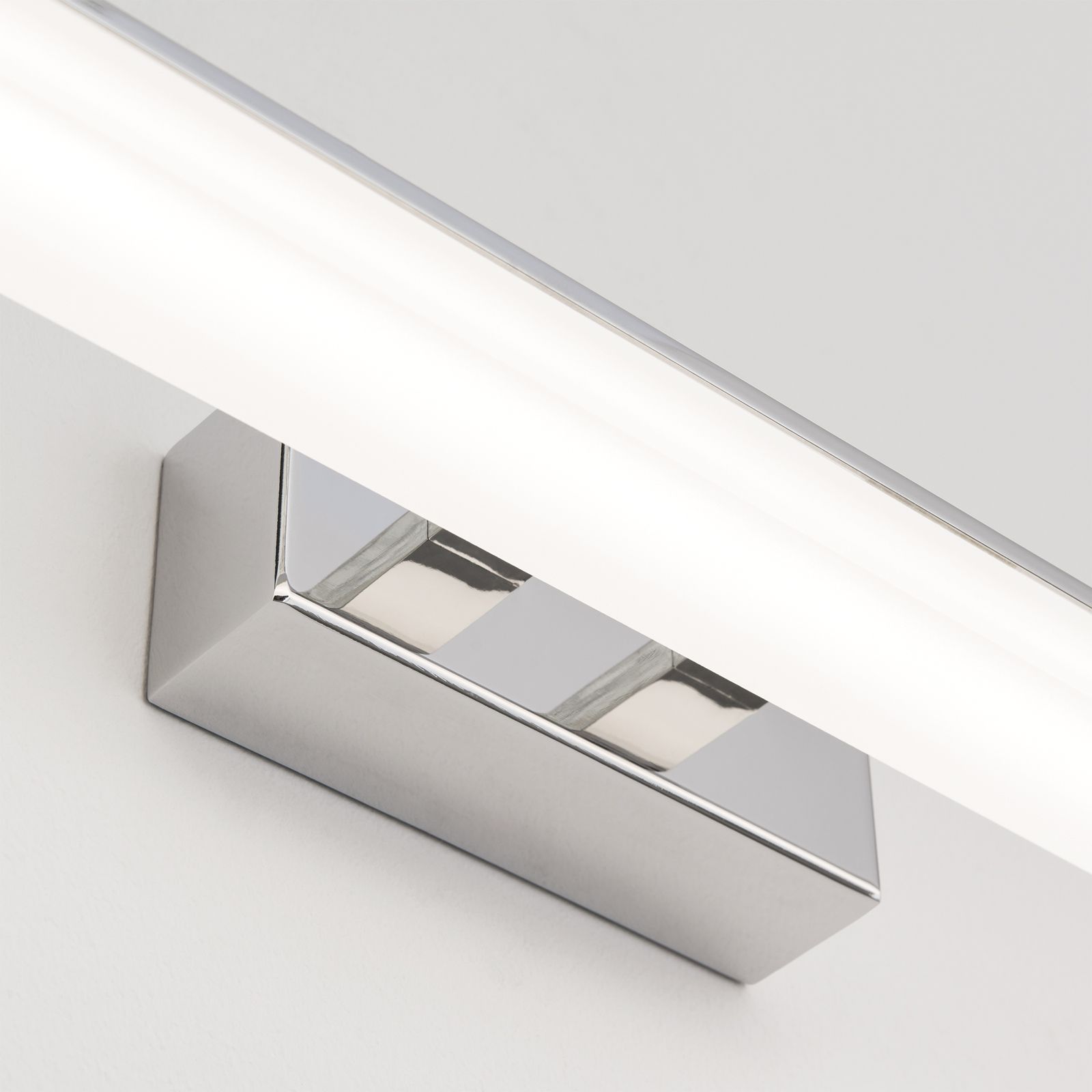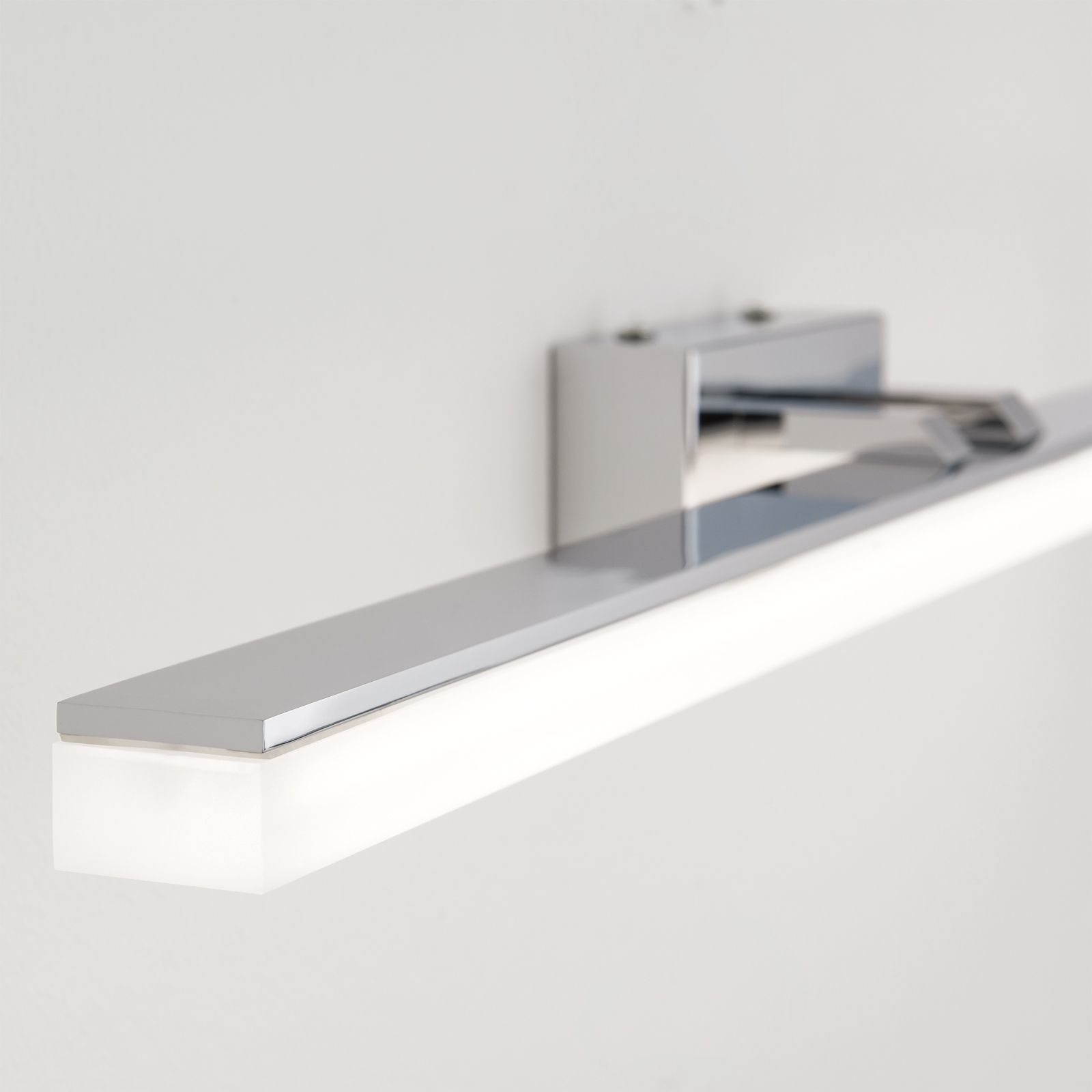 Glänzendes Chrom, mattes Acrylglas und eine schlichte, auf Quadern basierende Form machen die Spiegel- und Bilderleuchte LEDINA zu einem Beleuchtungsallrounder für ihr Zuhause. Sie eignet sich ebenso zur Akzentbeleuchtung im Wohnraum, wo Bilder und Fotowände inszeniert werden wollen oder zur Beleuchtung von Badezimmern und Spiegeln in Nassräumen.