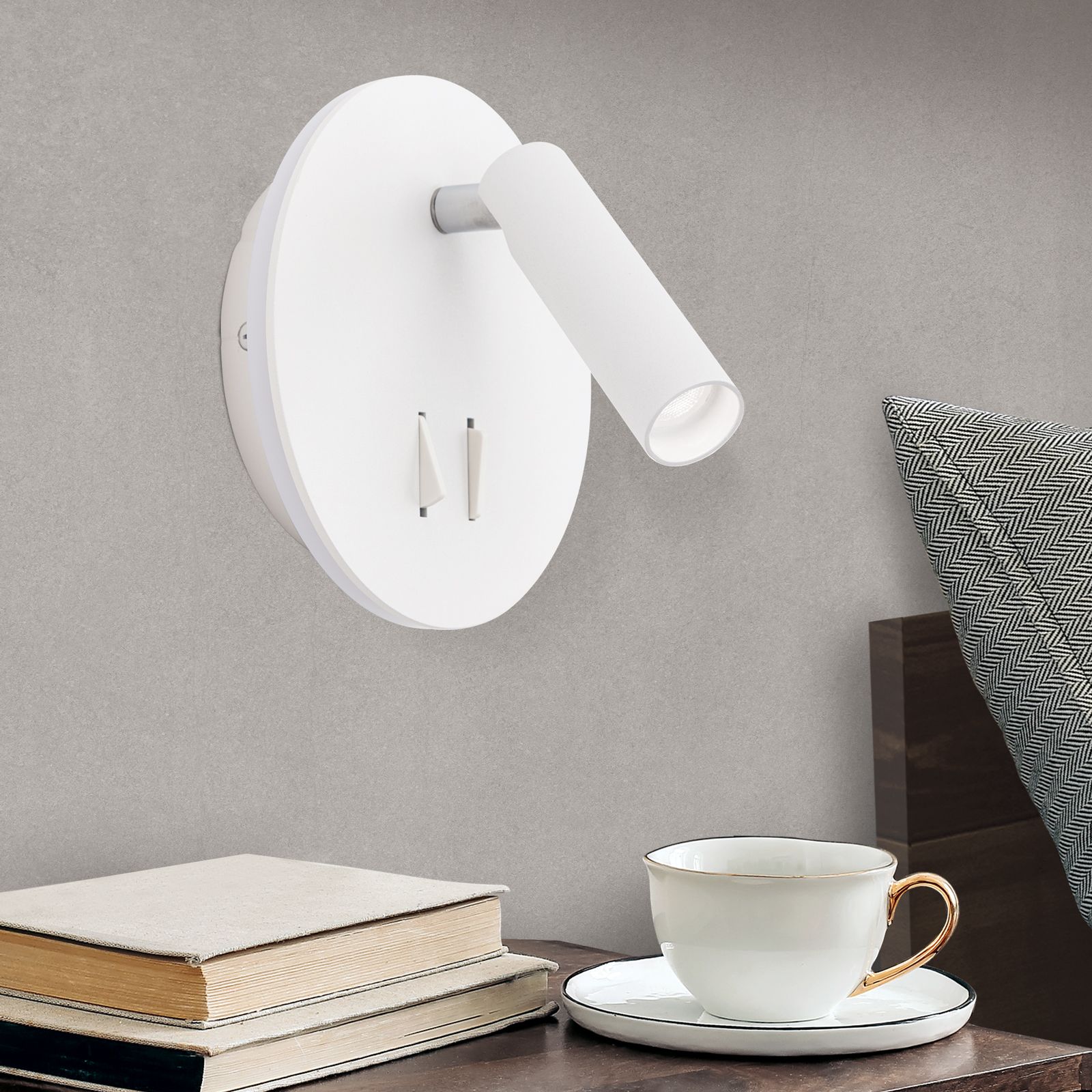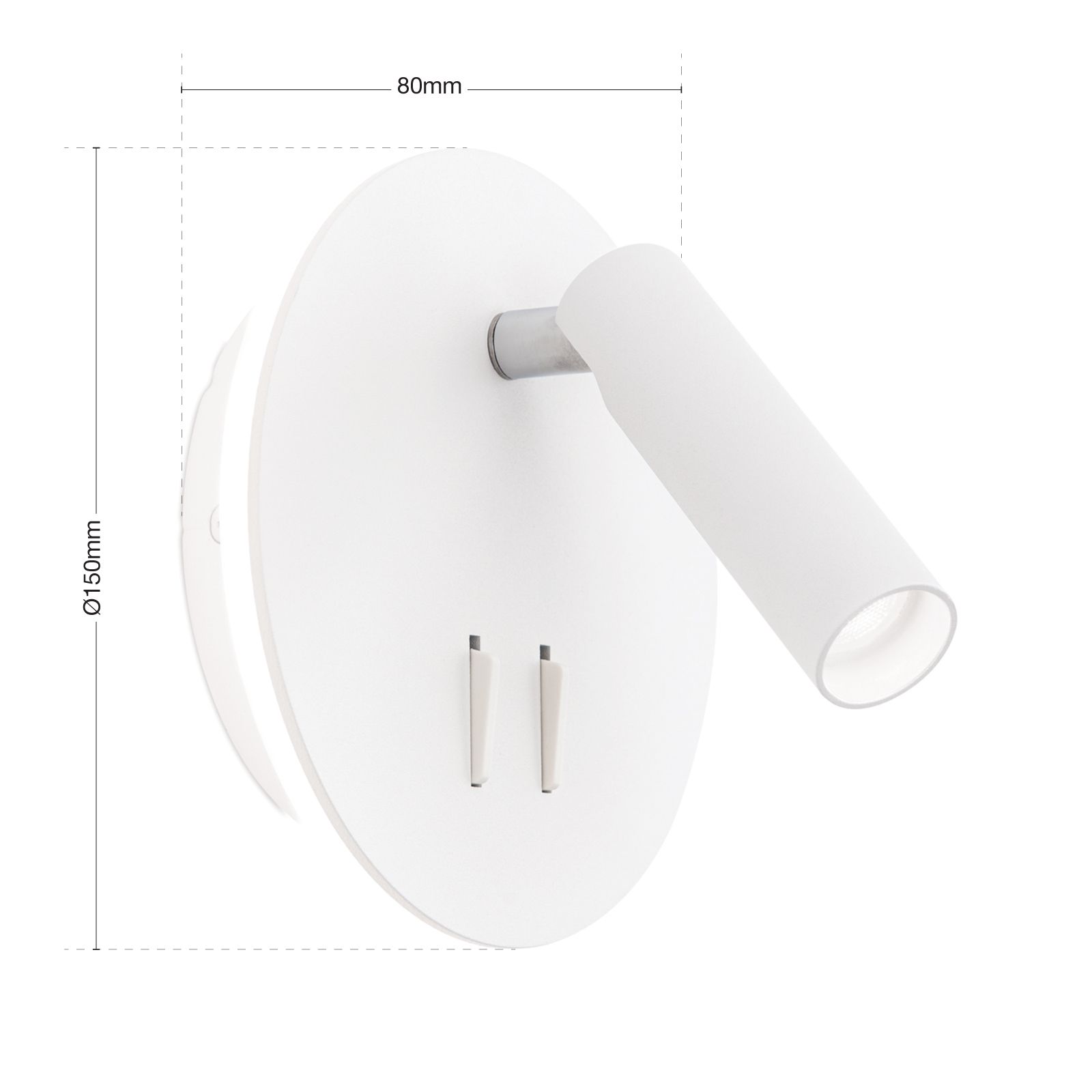 Mit der LED Wandleuchte LENNY wird das zu Bett gehen durch ein warmweißes Licht begleitet. Die runde Leuchte ist mit zwei Lichtquellen ausgestattet - mit einem Leuchtring, der indirektes Licht abgibt und einer Leselampe, die individuell schwenkbar bar. Beide lassen sich mit einem Wippschalter separat Ein- und Ausschalten. Die Wandleuchte ist mit moderner LED-Technik und einer Lichtleistung von 500 und 200 Lumen ausgestattet und nicht dimmbar.