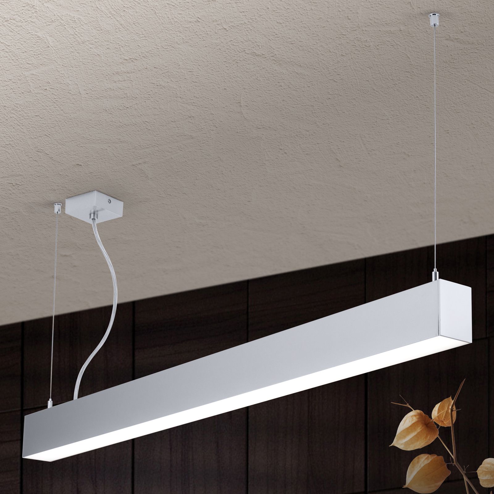 Die LED-Leuchte hat eine alu-matte Oberfläche und kann mit unterschiedlichsten Raumausstattungen kombiniert werden.