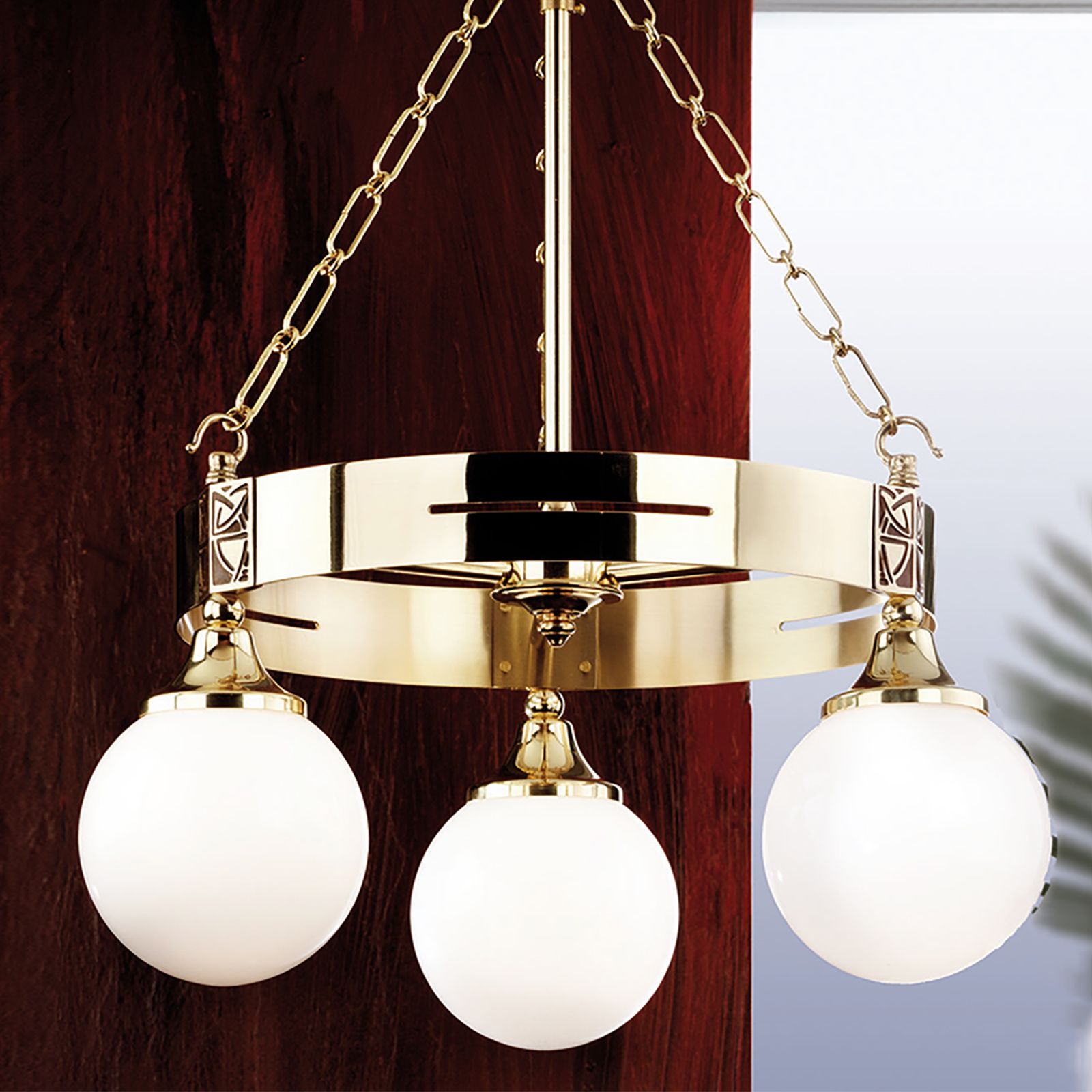 Luster ALT WIEN, 3-flammig, Messing glänzend, mit opal glänzenden Gläsern