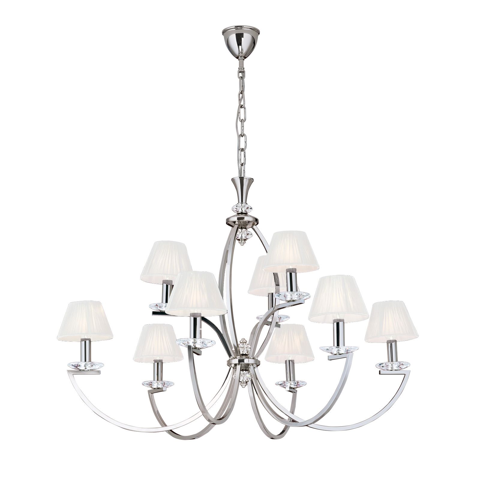 Luster AVALA, 9-flammig, Nickel mit weißen Schirmen