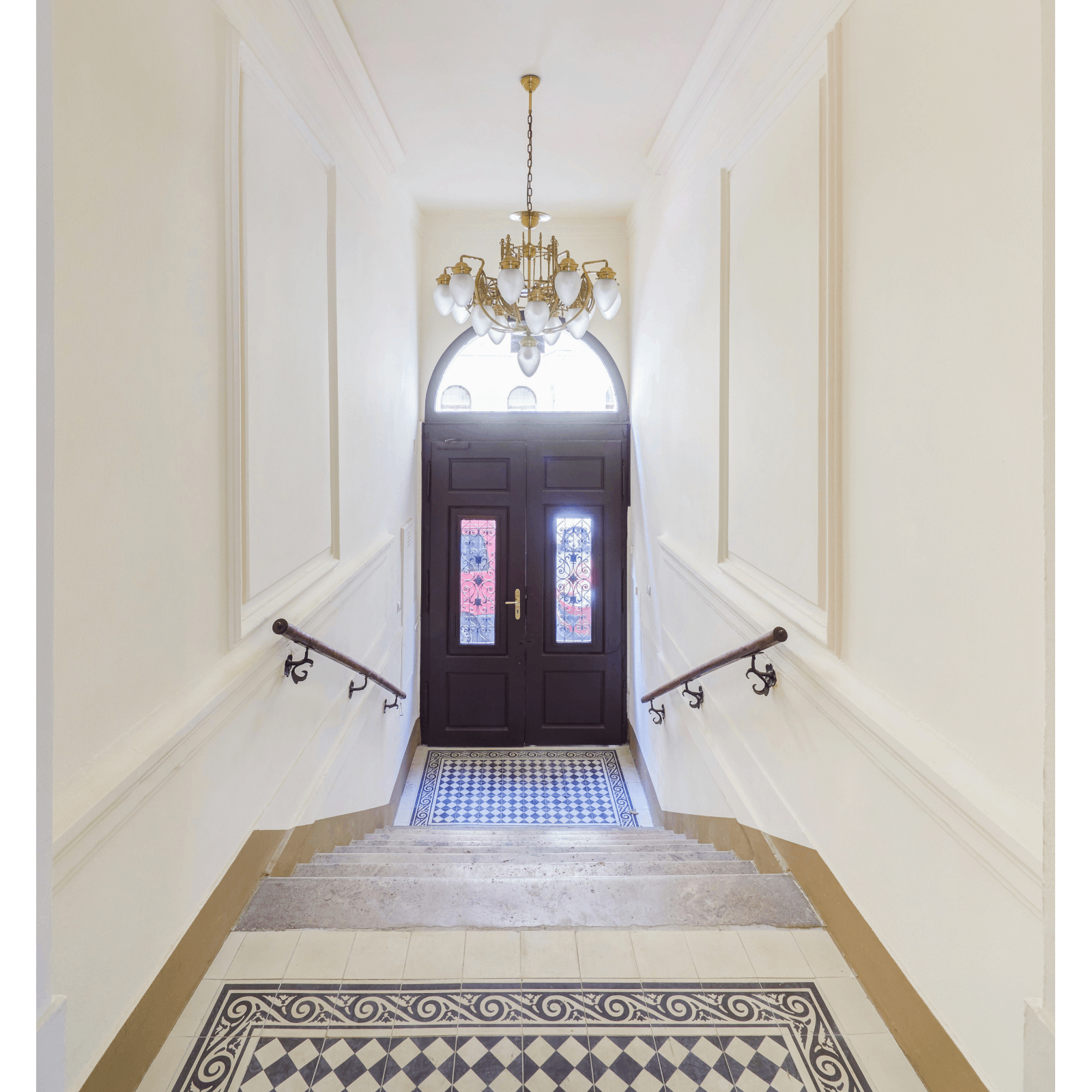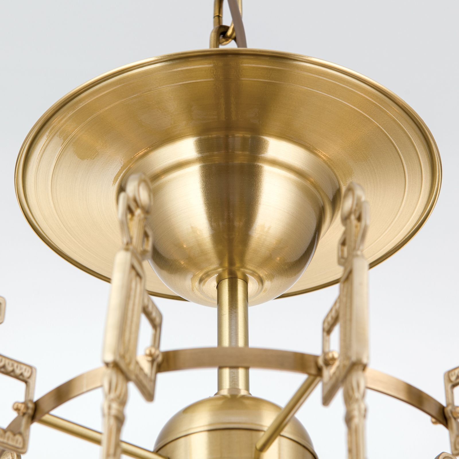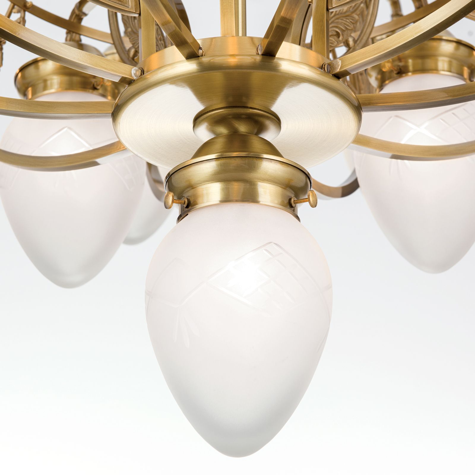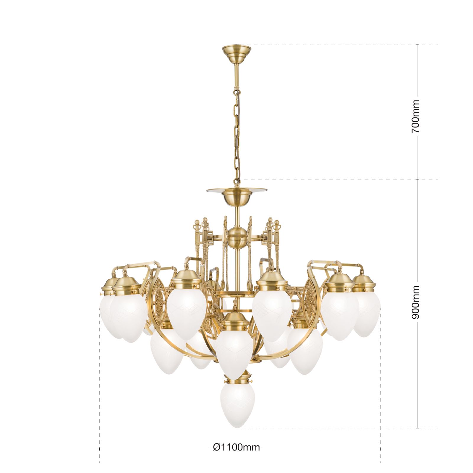 Der Zauber ungarischen Art nouveaus besteht im Zitatenreichtum. Der 16-flammige Luster aus der Kollektion BUDAPEST zeigt deutlich, wie hier unterschiedliche Einflüsse zu einem eigenständigen Stil verschmelzen. Der Grundaufbau folgt dem Barockluster, das Zierwerk bedient sich beim Jugendstil, die Gravur ist traditionellen magyarischen Mustern entlehnt. Konferenzräume, Säle, elegante Restaurants oder auch großzügig bemessene Empfangsräume wie Arztpraxen oder Anwaltskanzleien bieten dieser Leuchte genügend Raum zur Entfaltung ihres kraftvollen, warmen Lichtes. Dieser Kronleuchter ist sechzehn E27-Fassungen für je bis zu 60 Watt ausgestattet.