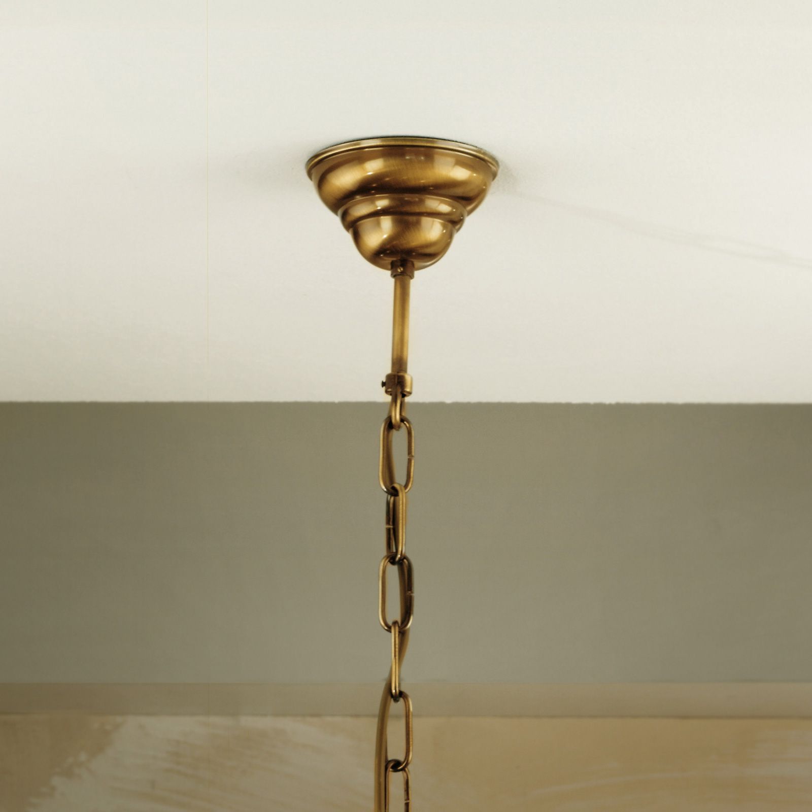 Der 8-flammige Luster eignet sich aufgrund seiner Größe und Leuchtstärke für zwanzig bis dreißig Quadratmeter große Wohn-, Ess- oder Schlafzimmer. Wer einem eleganten aber nicht überbordend barocken Stil anhängt, ist mit diesem Luster bestens beraten. Dank seiner Abhängung von 70 Zentimetern und einer Höhe des Leuchtkörpers von nur 30 Zentimetern können auch Räume mit niedrigeren Decken stilvoll ausgeleuchtet werden: Bei geringer Höhe bringt es der Kronleuchter auf einen beachtlich großen Durchmesser von 70 Zentimetern. Dies verdankt er weit ausladenden, stilgerecht S-bogenförmigen Armen. Auf die Tropfschalen sind Lampenfassungen in Kerzenoptik gesetzt.