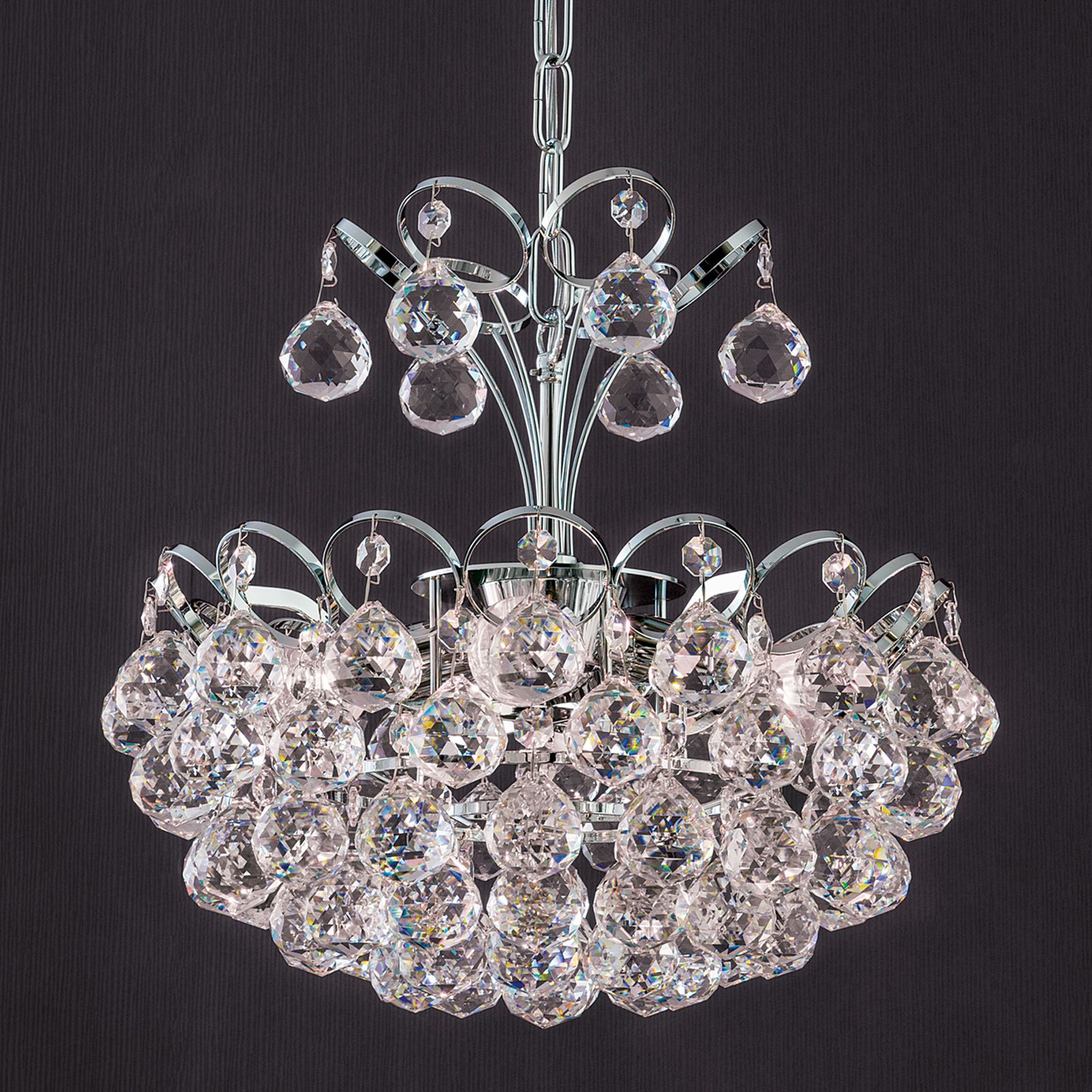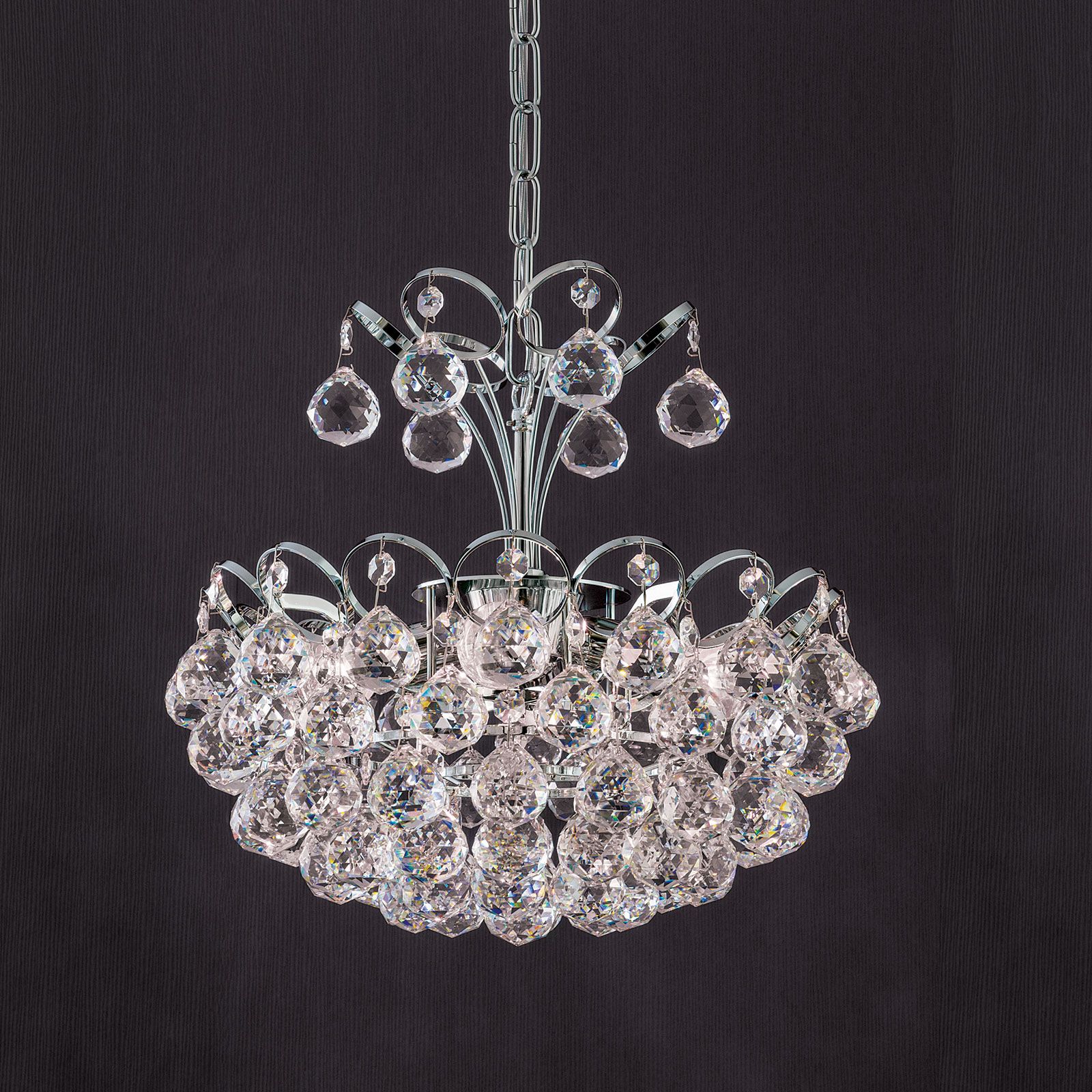 Luster KRISTALL KLASSISCH, 4-flammig, Chrom, mit Kugelbehang