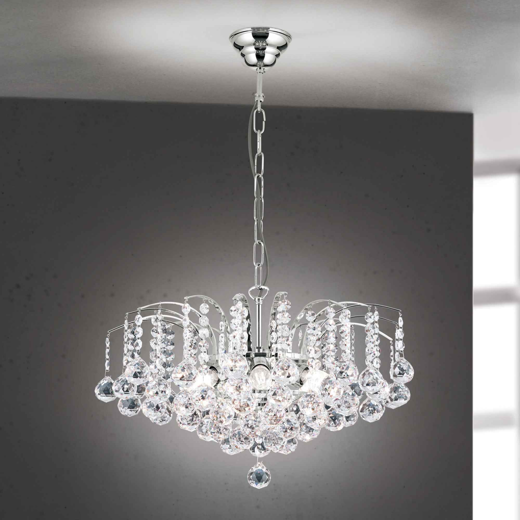 Luster KRISTALL KLASSISCH, 6-flammig, Chrom, mit klarem Kristallbehang