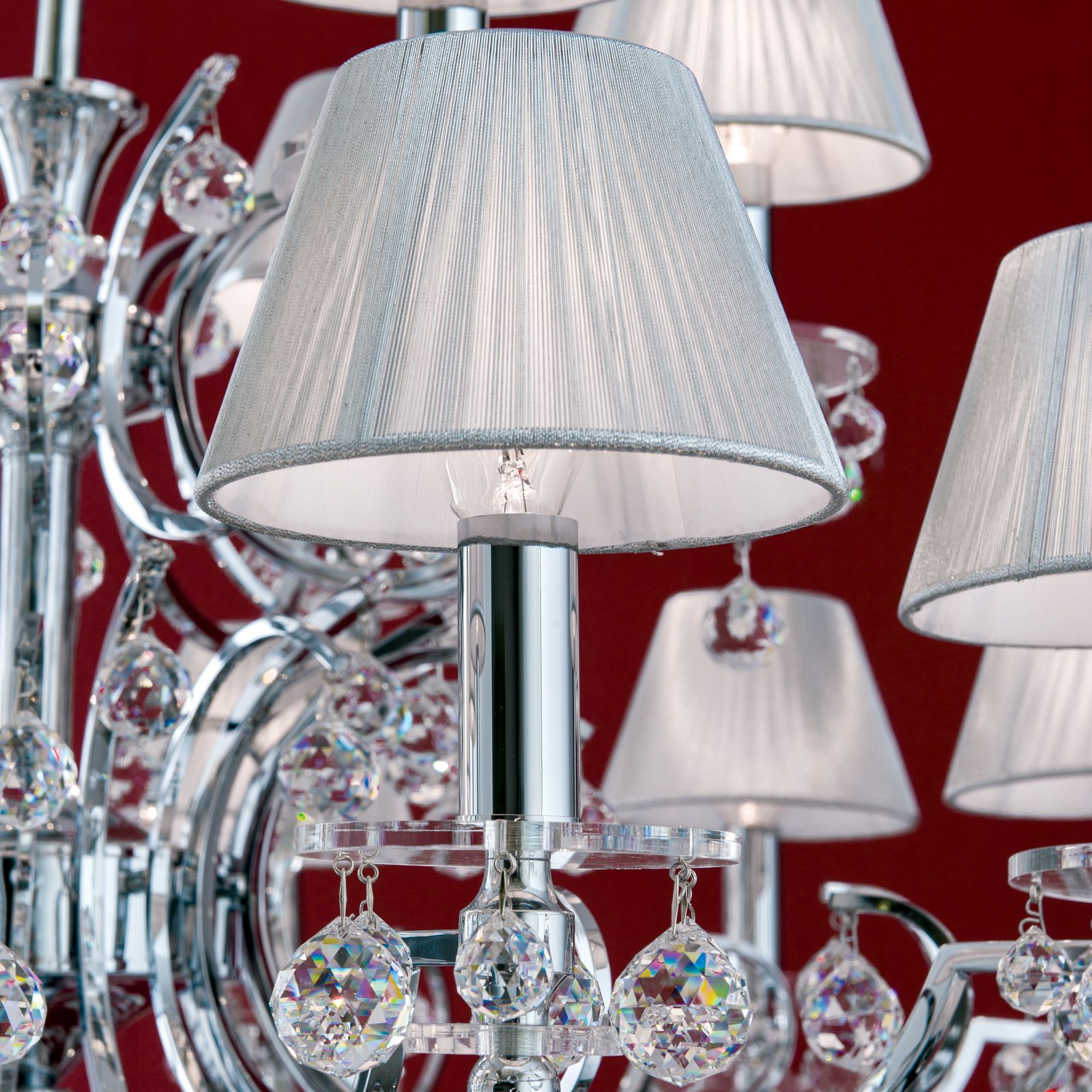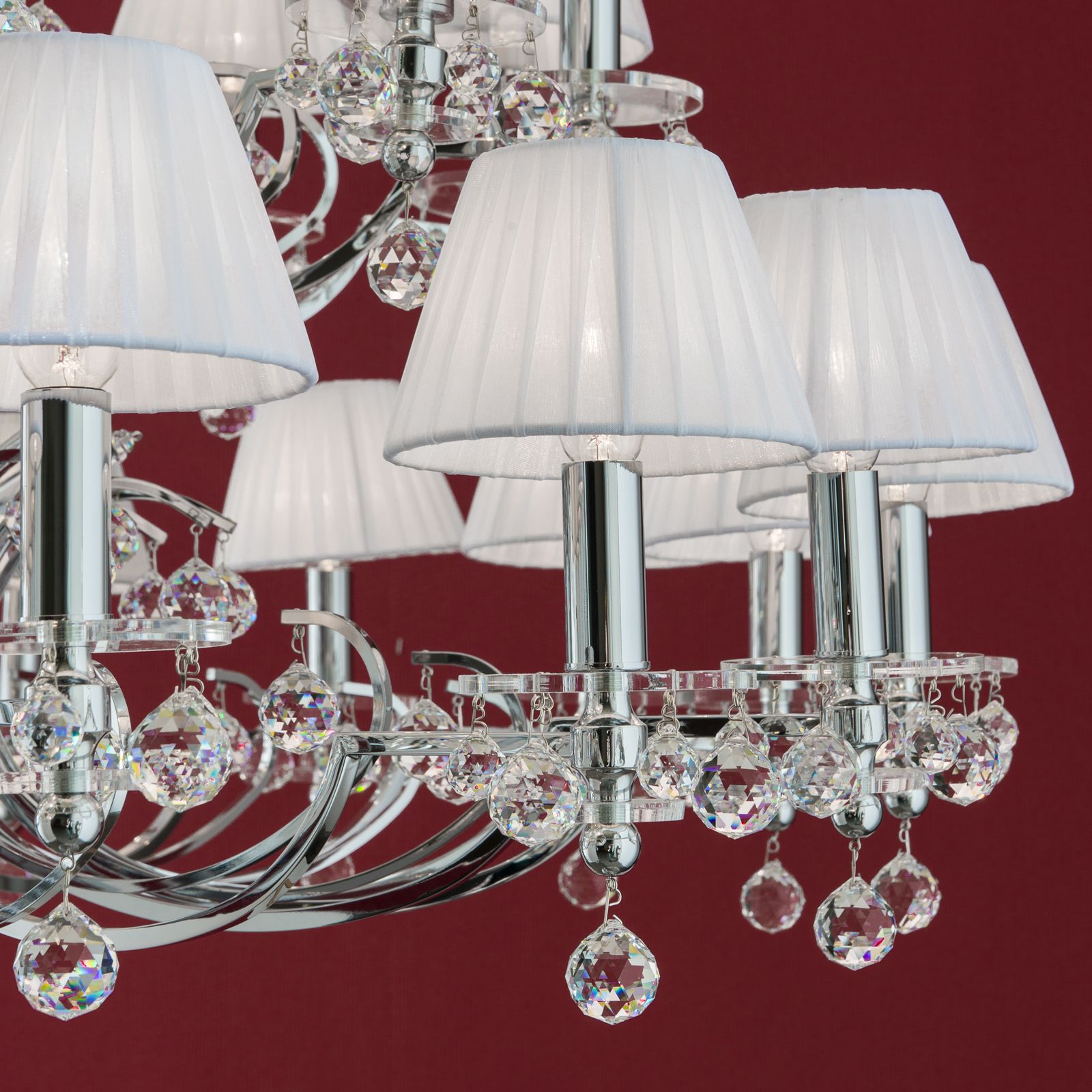 Luster KRISTALLDESIGN, 36-flammig, Chrom mit weißen Schirmen