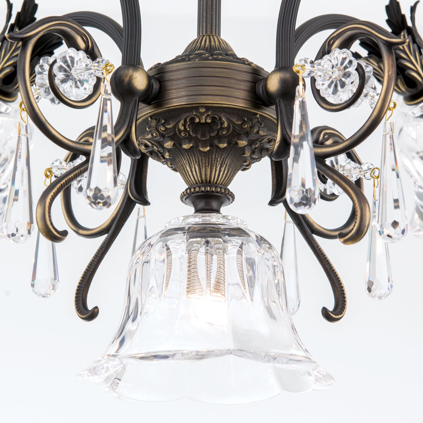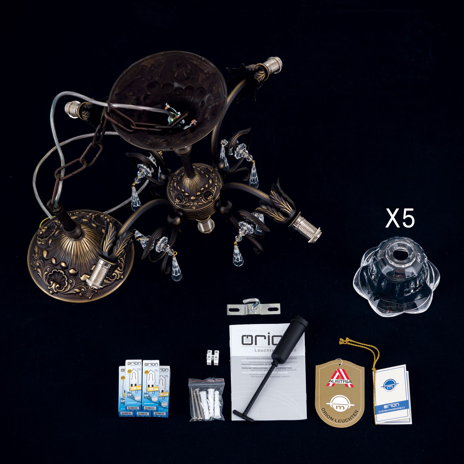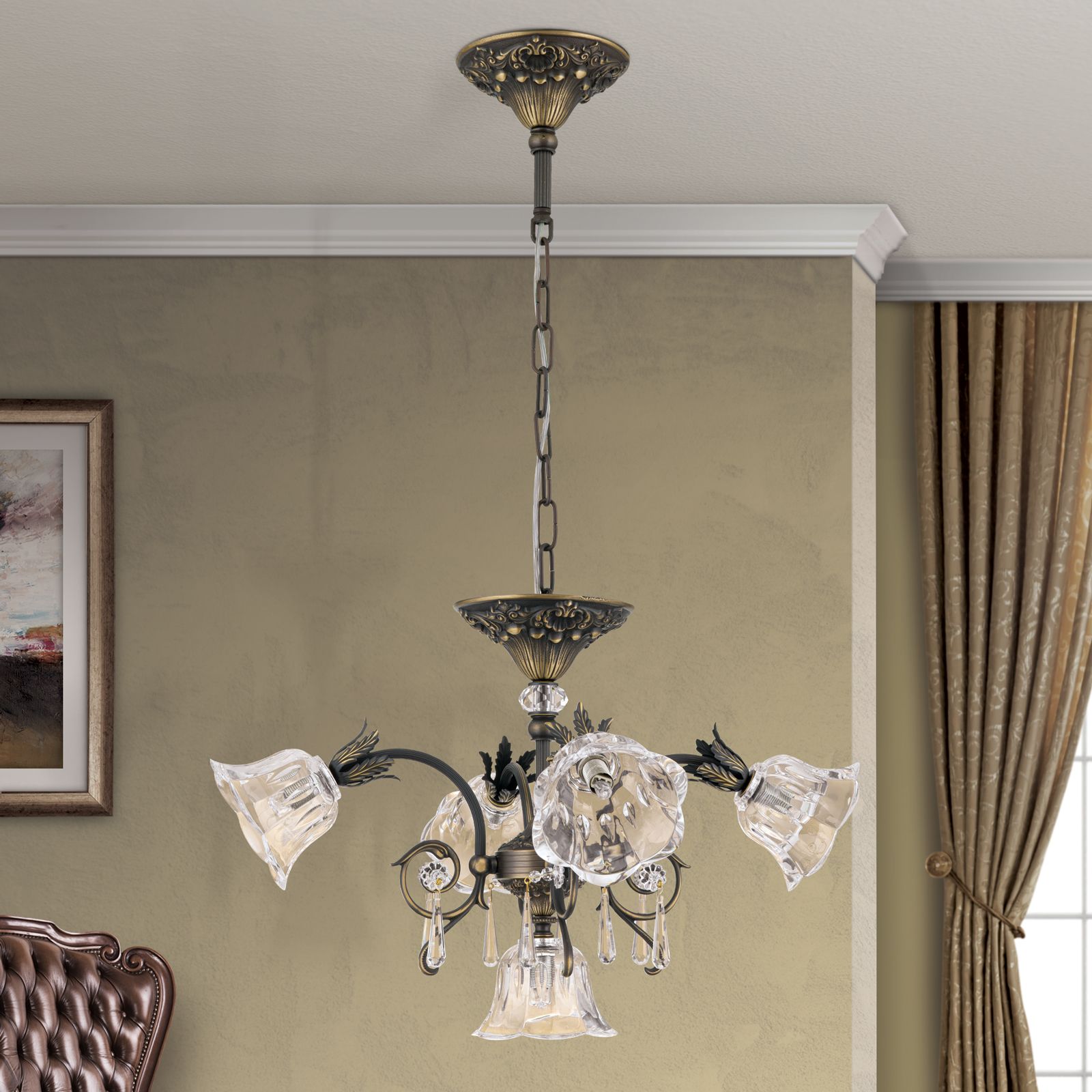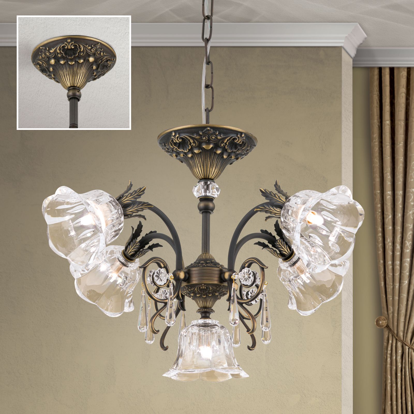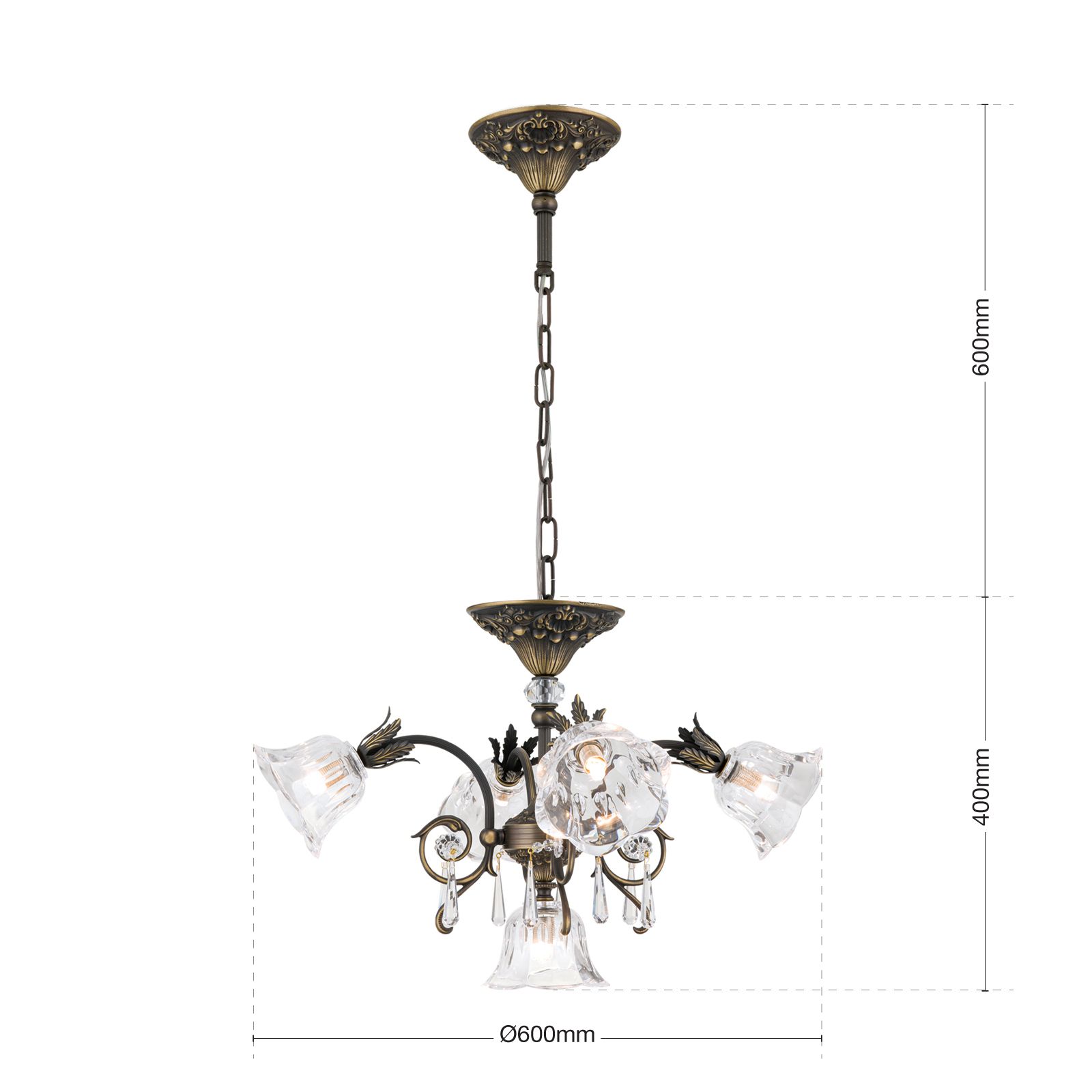 Außergewöhnlich und reich verziert zeigt sich der 5-flammige Kronleuchter aus der Serie LA BOHEME. Er fügt sich besonders gut in klassisch eingerichtete Wohnräume ein und sorgt dort alleine, aber auch in Gruppen angeordnet für eine höchst dekorative Beleuchtung.