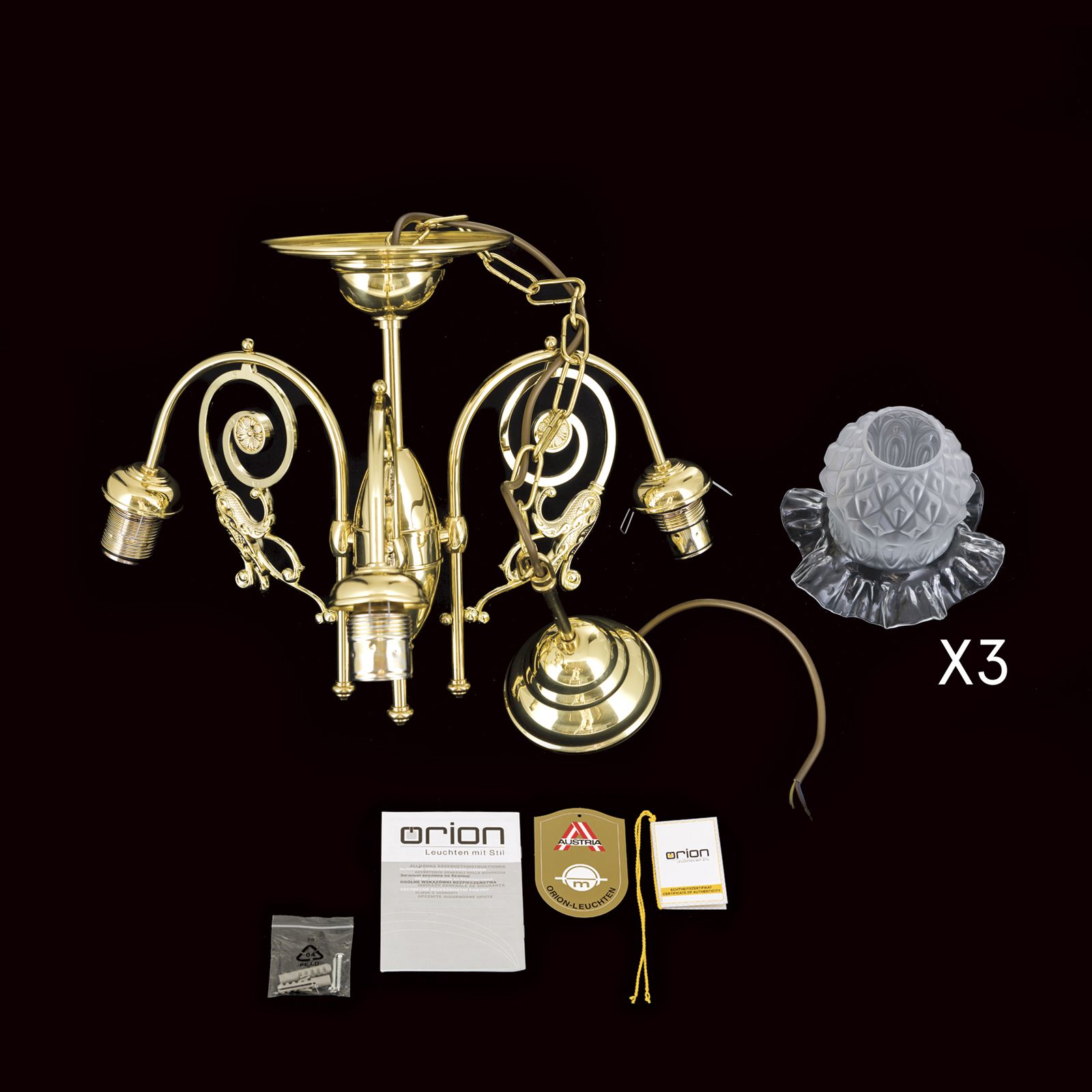 Erleben Sie zeitlose Eleganz und bezaubernde Beleuchtung mit unserem Luster RINGSTRASSE in Messing glänzend und 3-flammiger Ausführung. Dieser prächtige Kronleuchter wird nicht nur Ihr Zuhause erhellen, sondern auch eine erstaunliche ästhetische Note hinzufügen.