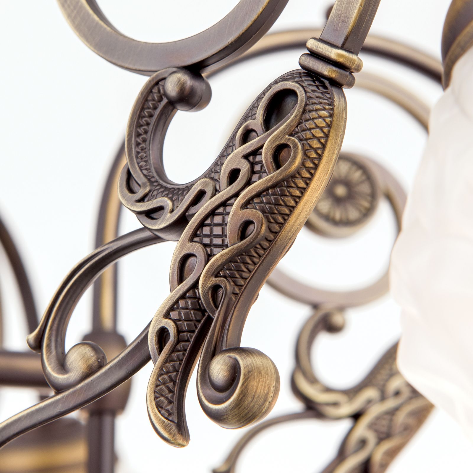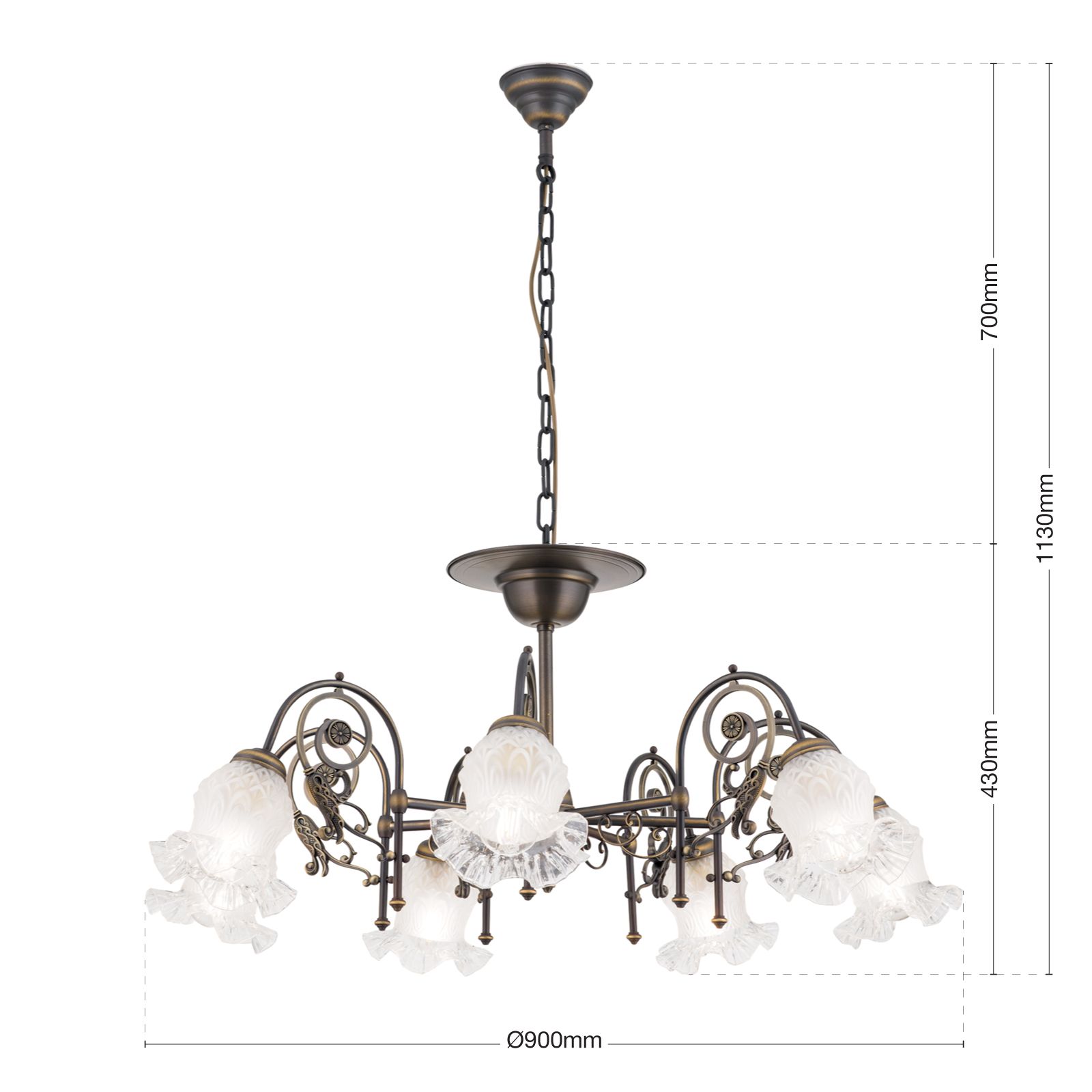 Luster RINGSTRASSE, 7-flammig, Altpatina, mit Blütengläsern