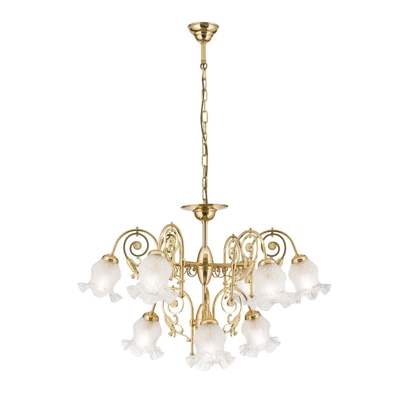 Luster RINGSTRASSE, 9-flammig, Messing glänzend, mit Blütengläsern