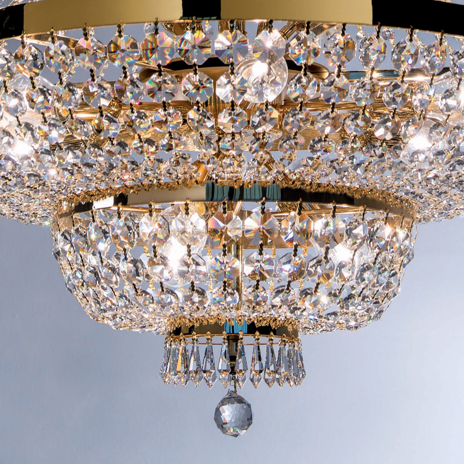 Er besteht aus 4 Ringen, die mit unzähligen Kristallkoppen bestückt sind. Für das gewisse Etwas sorgt eine facettierte Kristallkugel, die zentral an einer von tropfenförmigen Kristallen eingefassten Zierplatte angebracht ist und sich in dieser widerspiegelt.