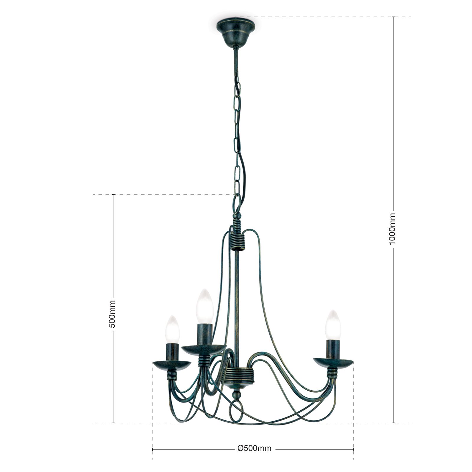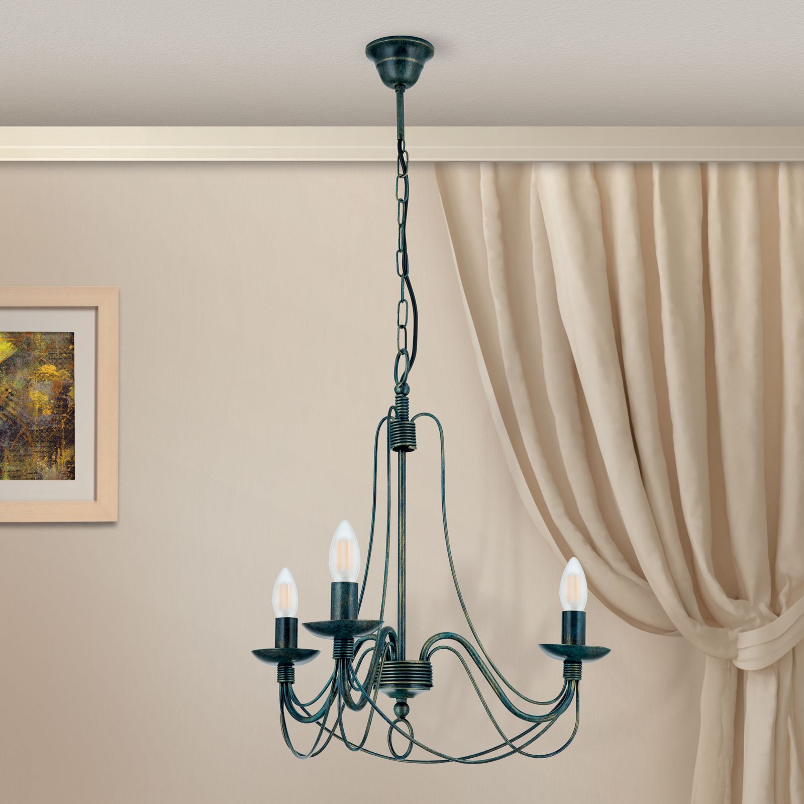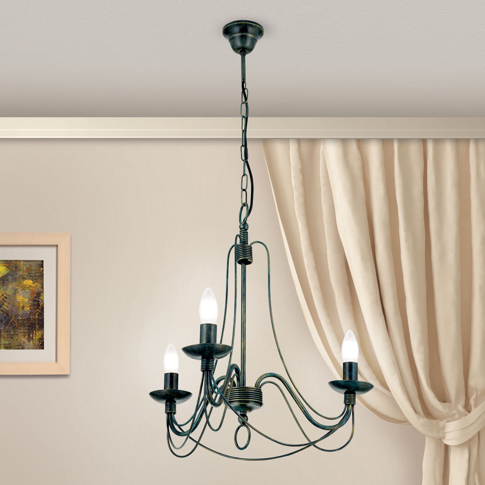 Der 3-flammige Luster aus der VELA-Produktreihe bringt den klassischen Luster in einer modernen Formgebung in unsere Wohnzimmer. Die in die Armenden laufenden S-Bogen flämischer Kronleuchter, die an die Form französischer Behangkronen erinnernden feingliedrigen Streben: alle Elemente sind Zitate großer barocker Vorbilder und doch wieder ganz neu gedacht. Eine feingliedrige 50 Zentimeter lange Kette geht am Plafond in eine verzierte Rosette über. Über einem kleinen Kartentisch, einem Lehnstuhl oder in einem Alkoven, wird diese Leuchte eine heimelige Atmosphäre verbreiten. Mit Windstoßkerzenleuchten lässt sich ein nostalgischer Touch erzielen. Die drei E14-Fassungen bieten eine maximale Leistung von je 40 Watt.