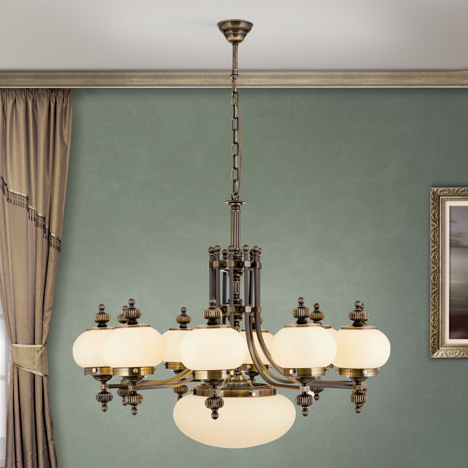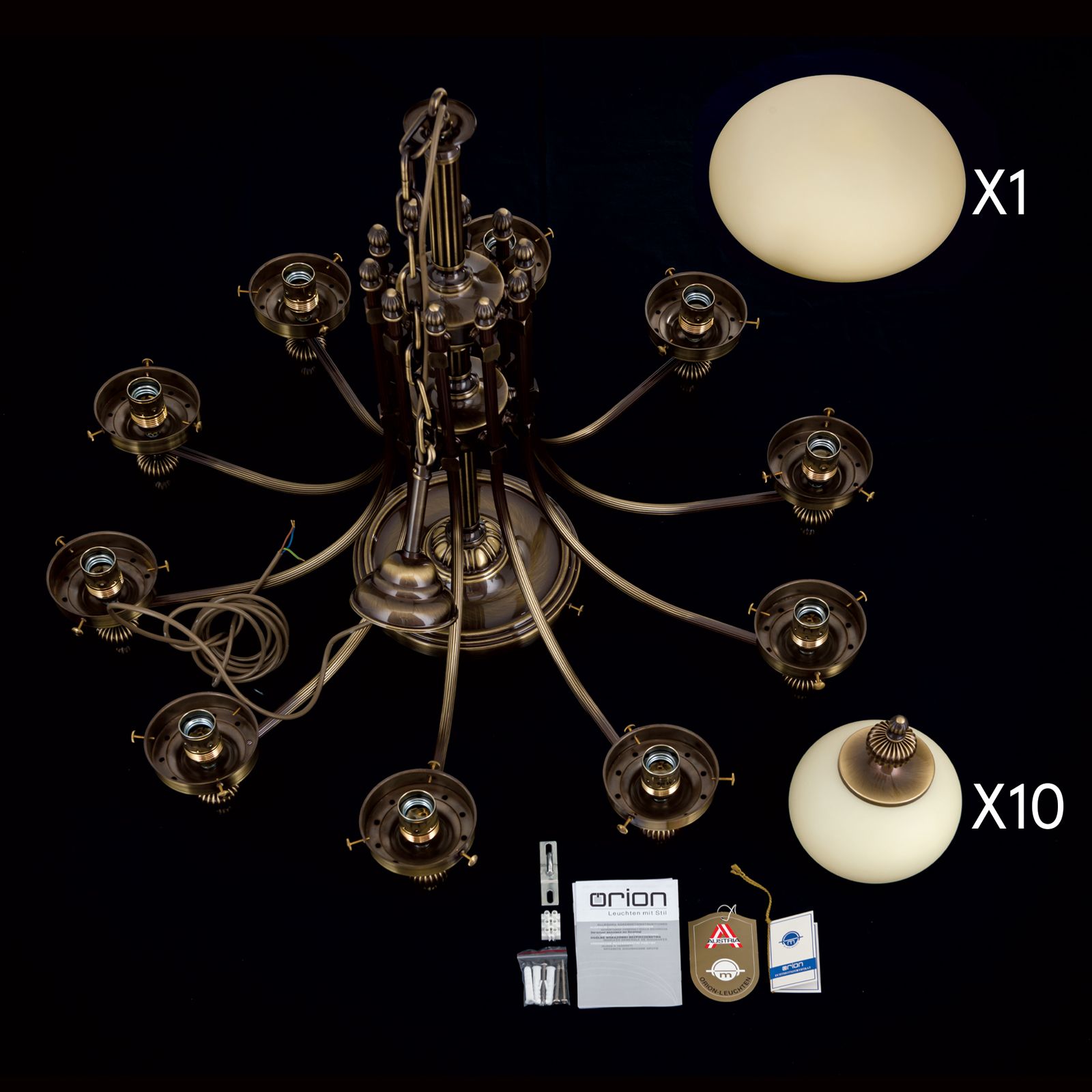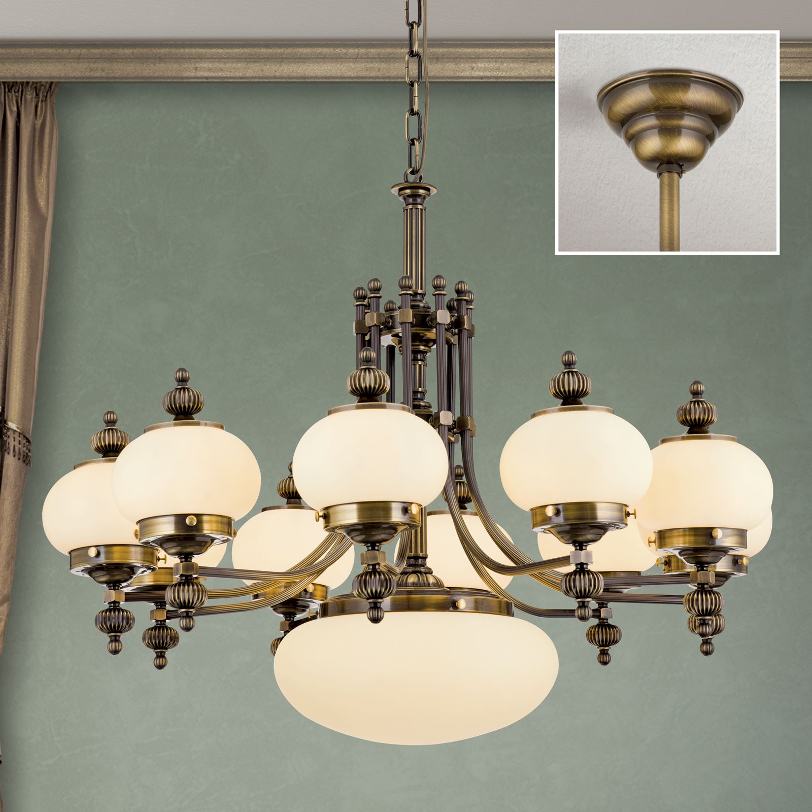 Luster WIENER NOSTALGIE, 10+1-flammig, Patina, mit champagne matten Gläsern, aufwärts