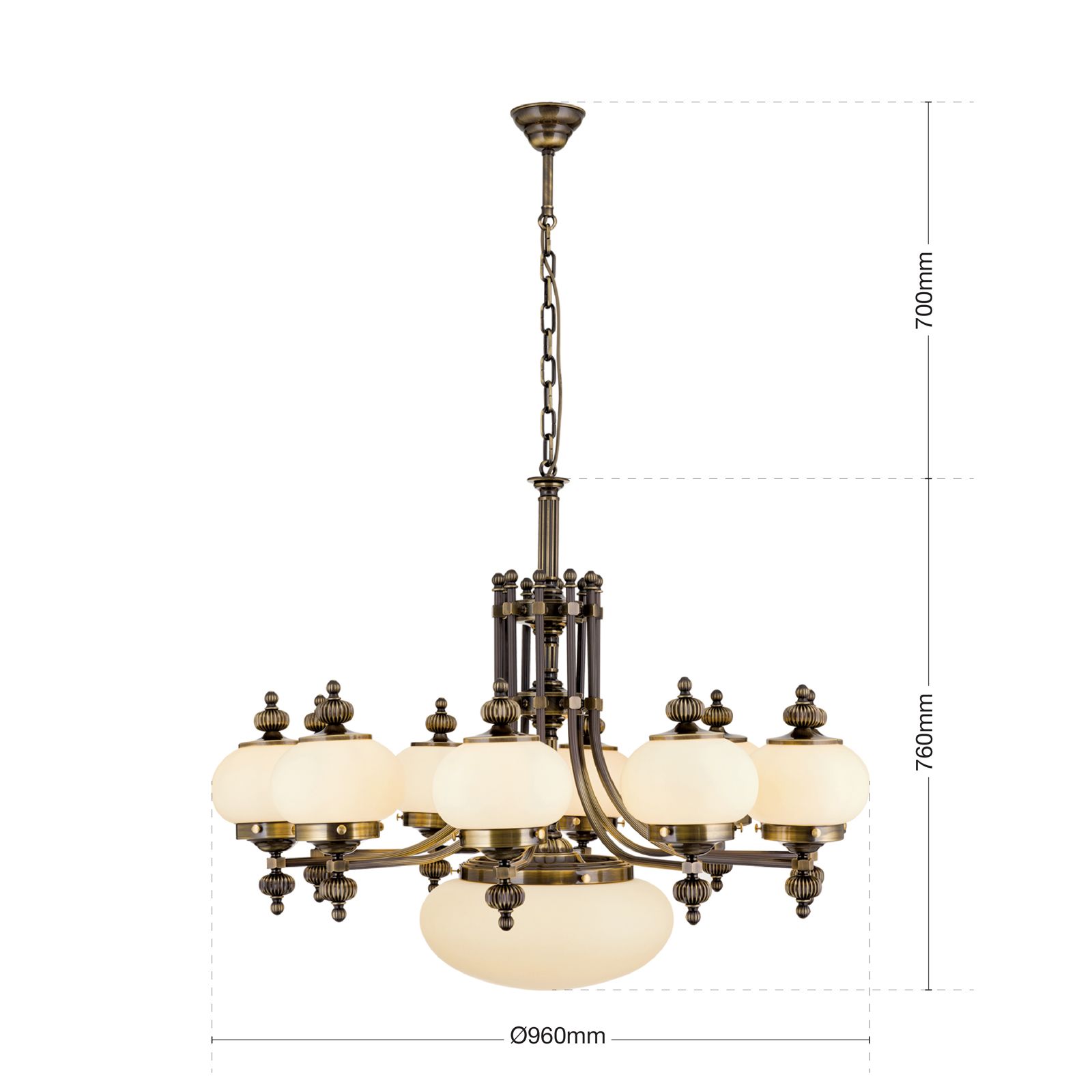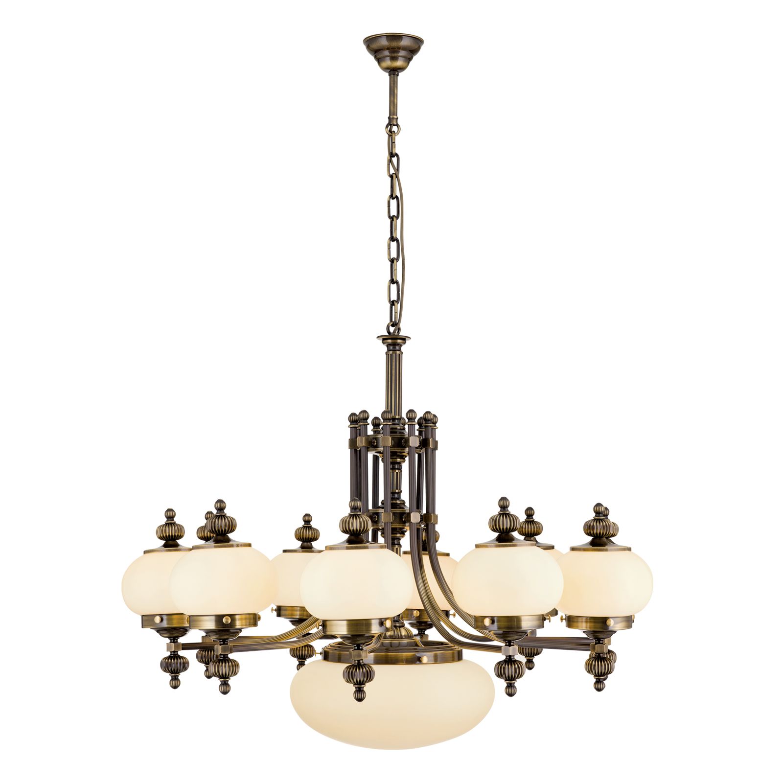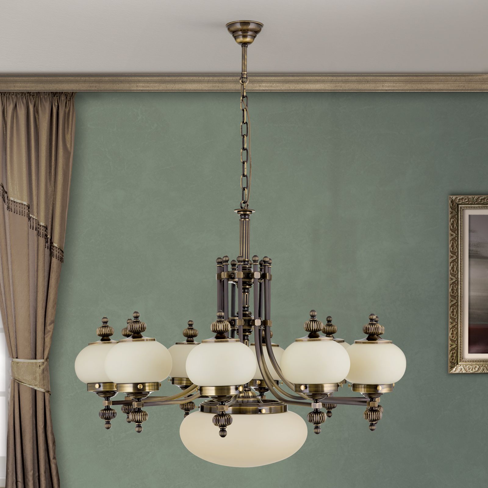 Luster WIENER NOSTALGIE, 10+1-flammig, Patina, mit champagne matten Gläsern, aufwärts