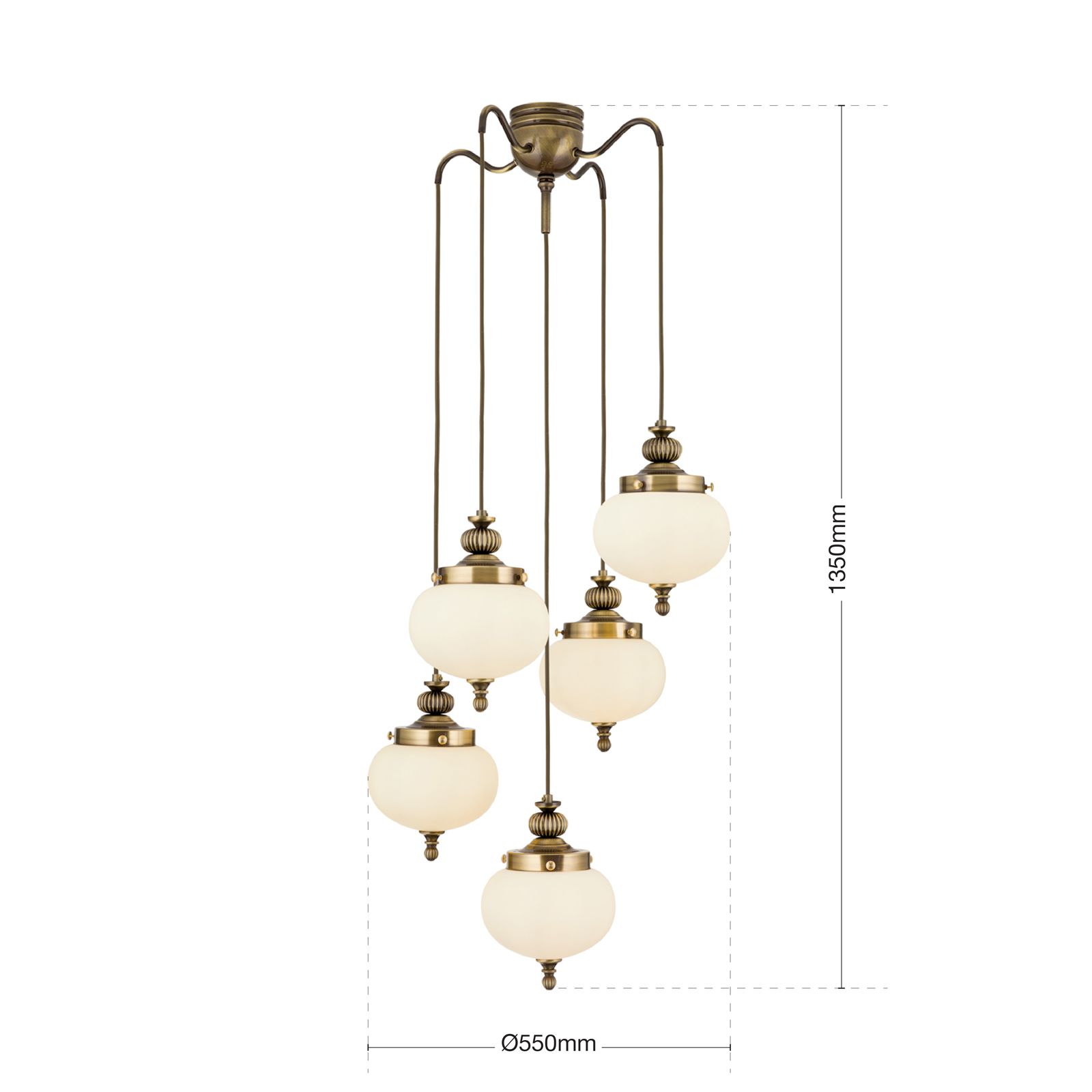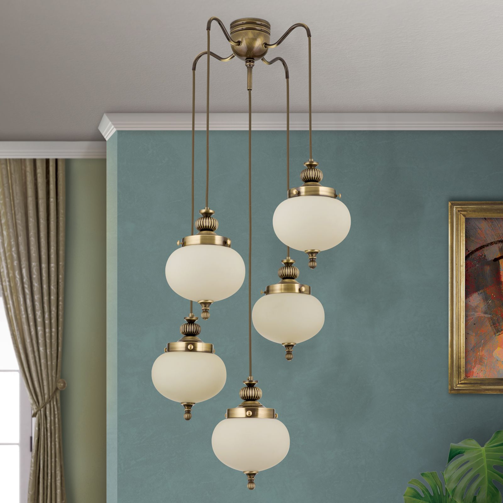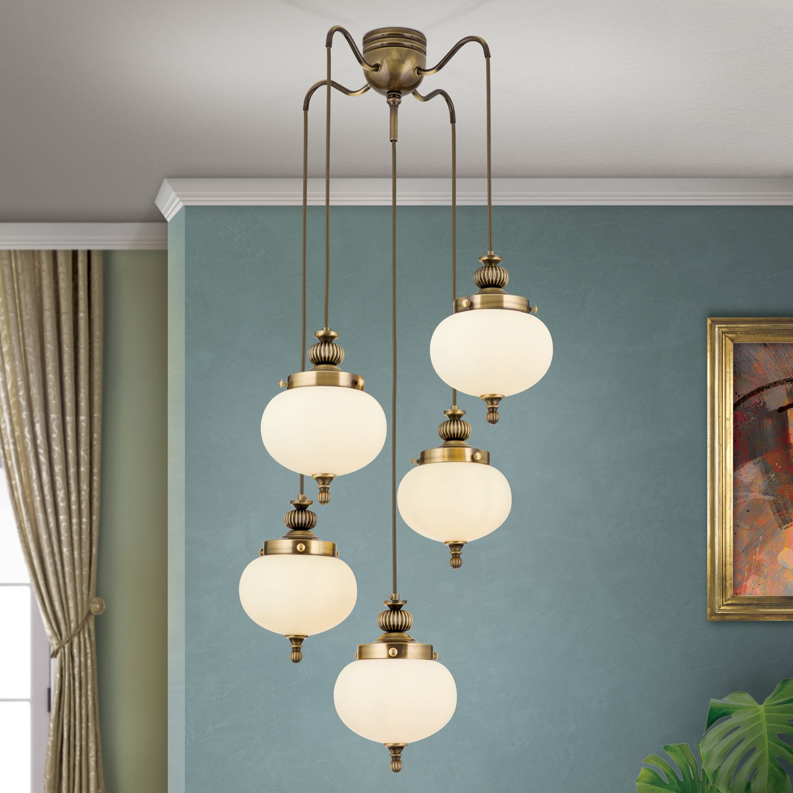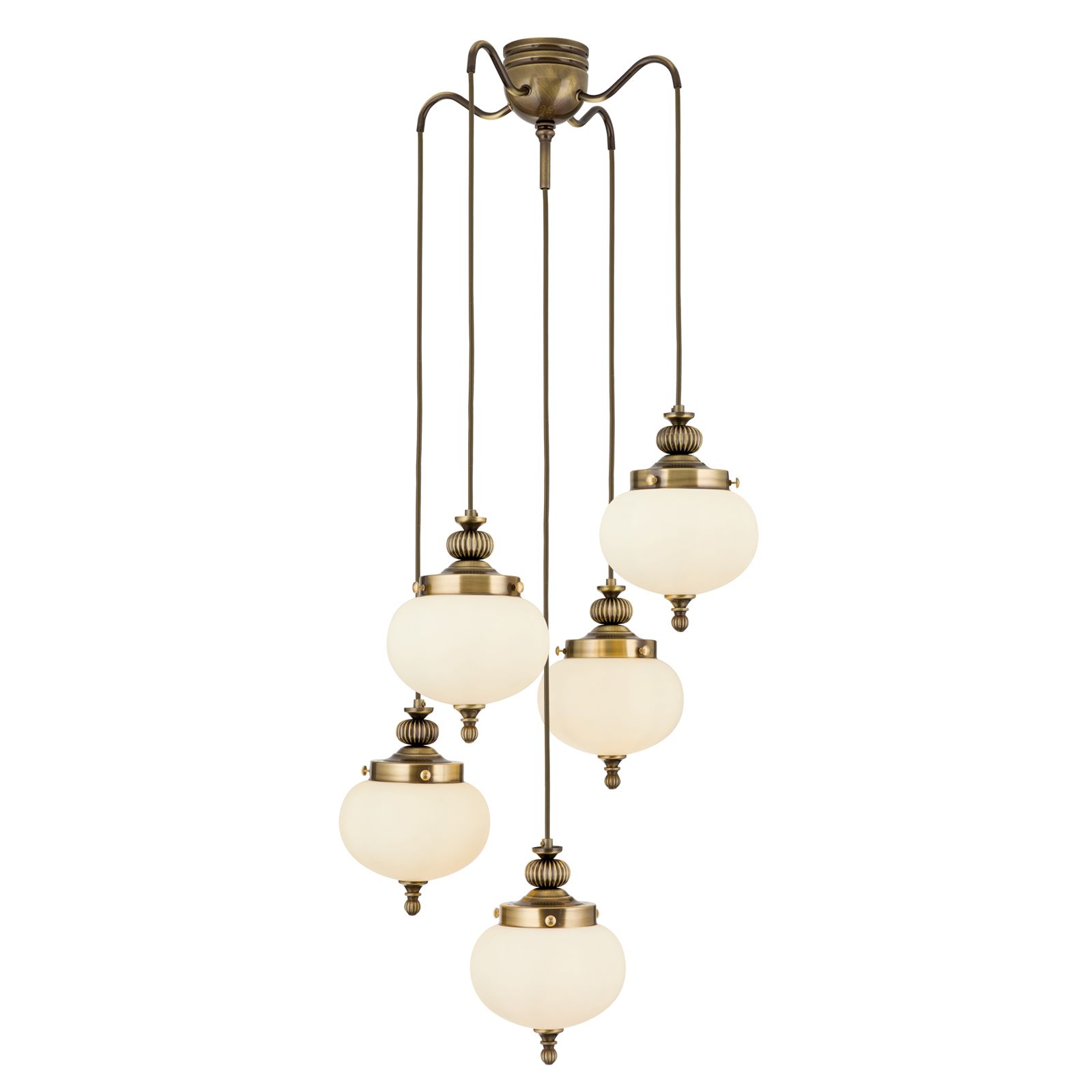 Luster WIENER NOSTALGIE, 4+1-flammig, Patina, mit champagne matten Gläsern