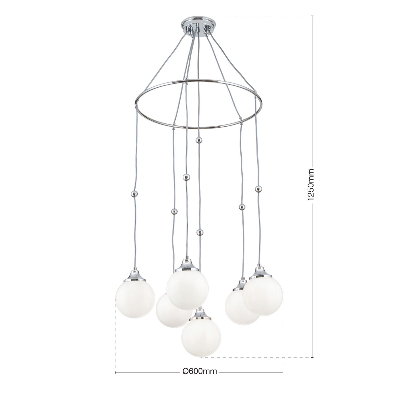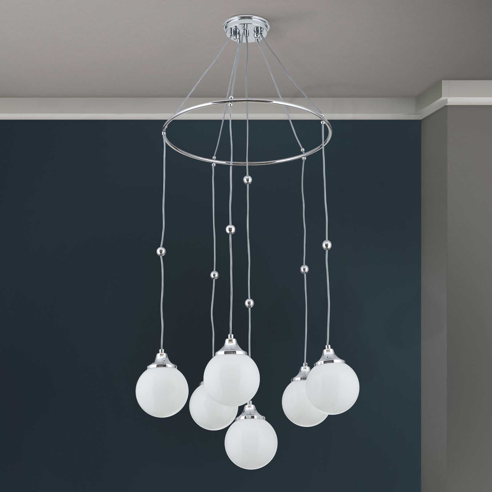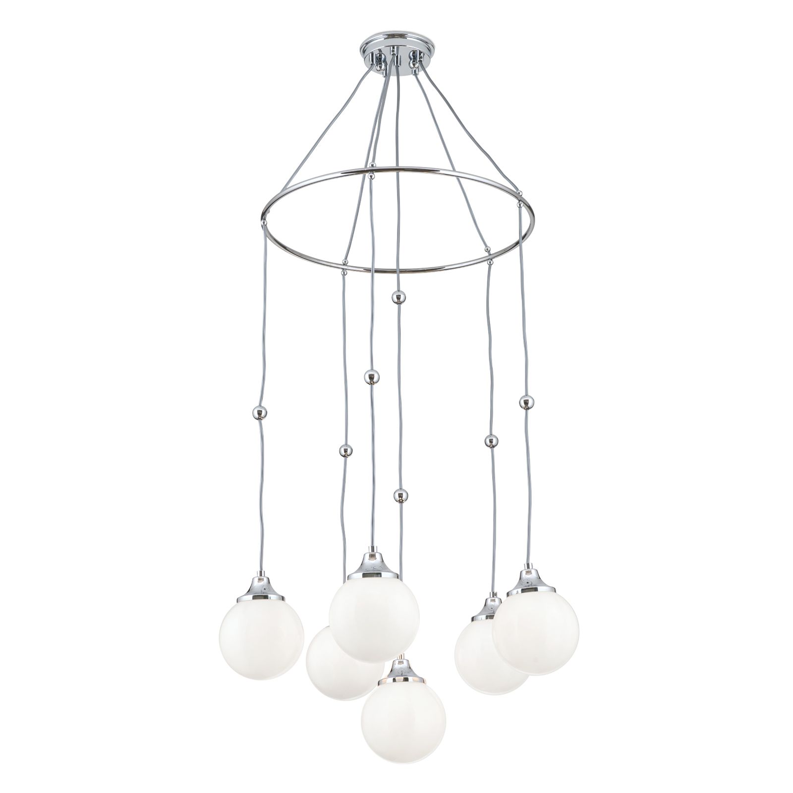 Pendelleuchte ALT WIEN, 6-flammig, Nickel, mit opal glänzenden Gläsern