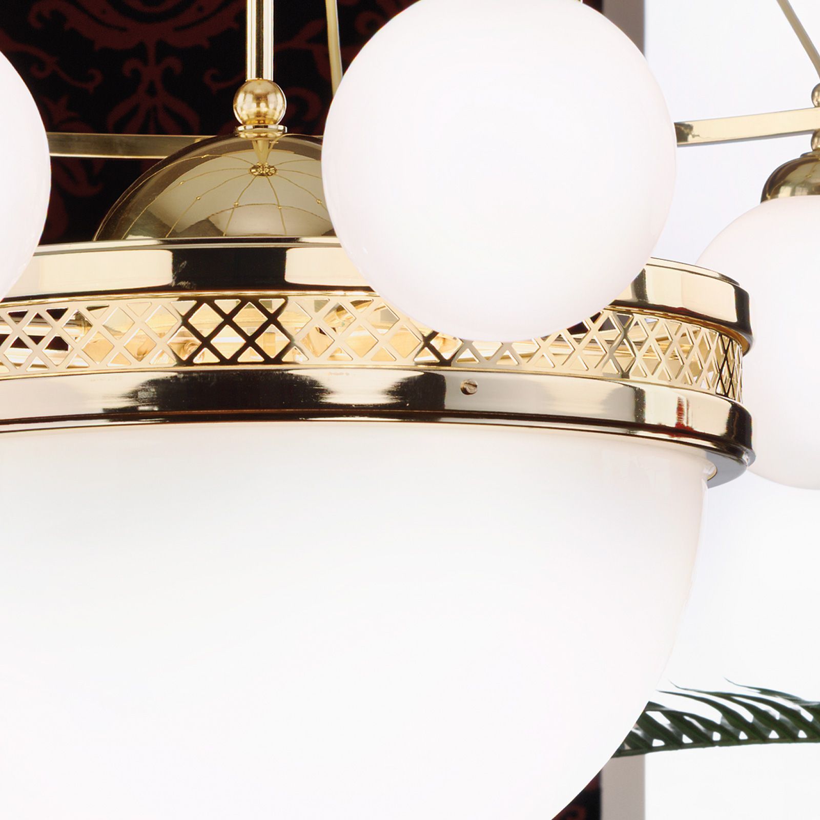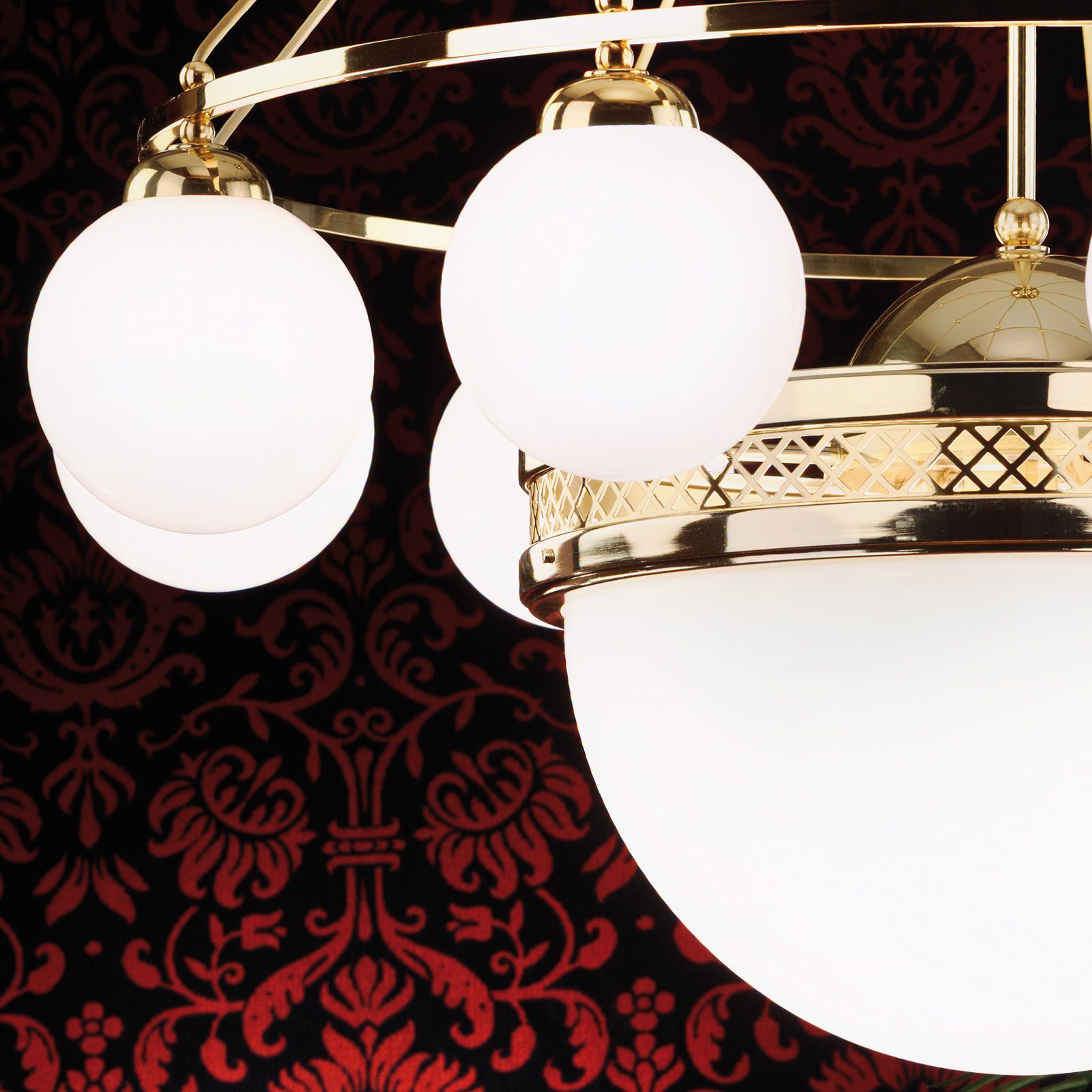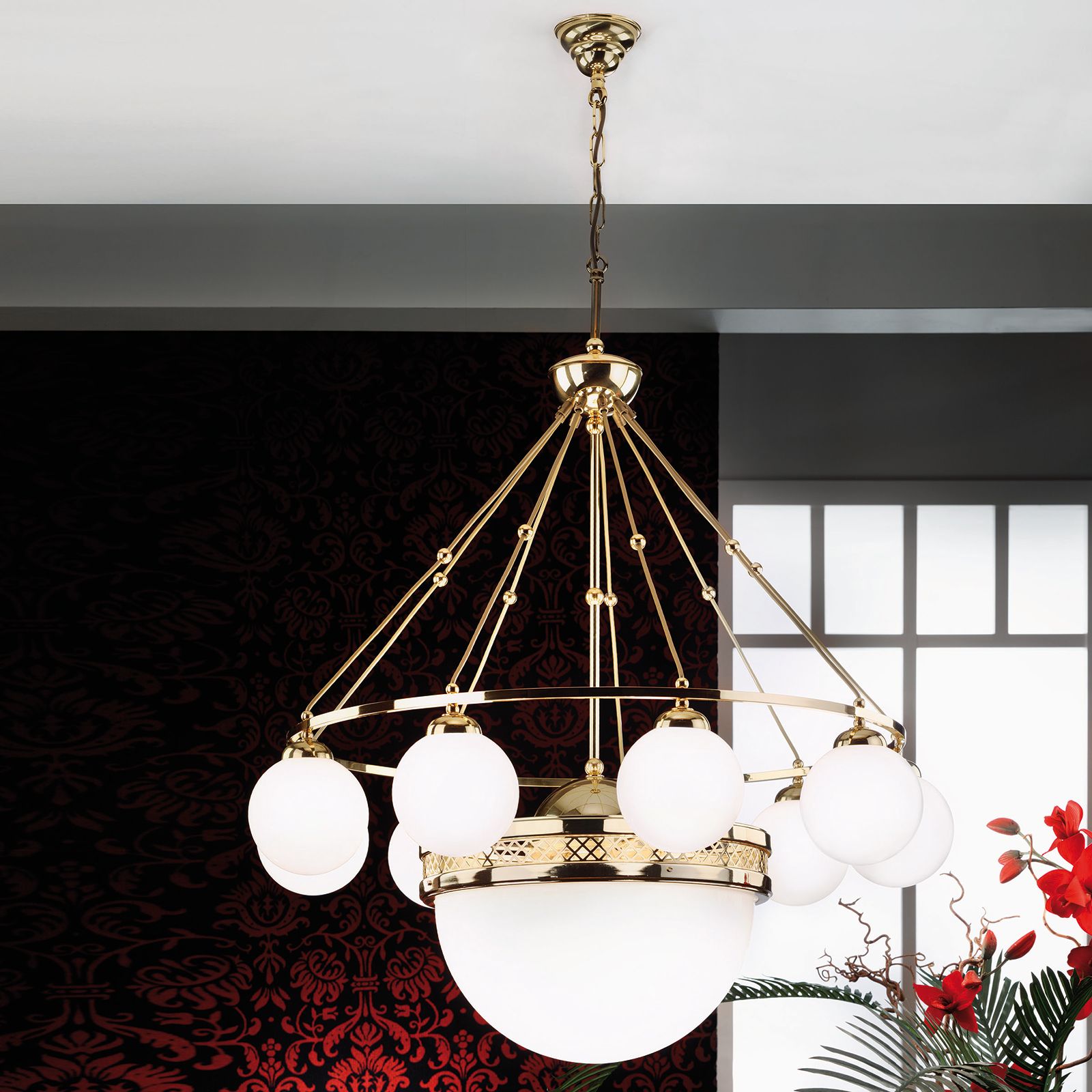 Pendelleuchte ALT WIEN, 9+1-flammig, Messing glänzend, mit opal glänzenden Gläsern