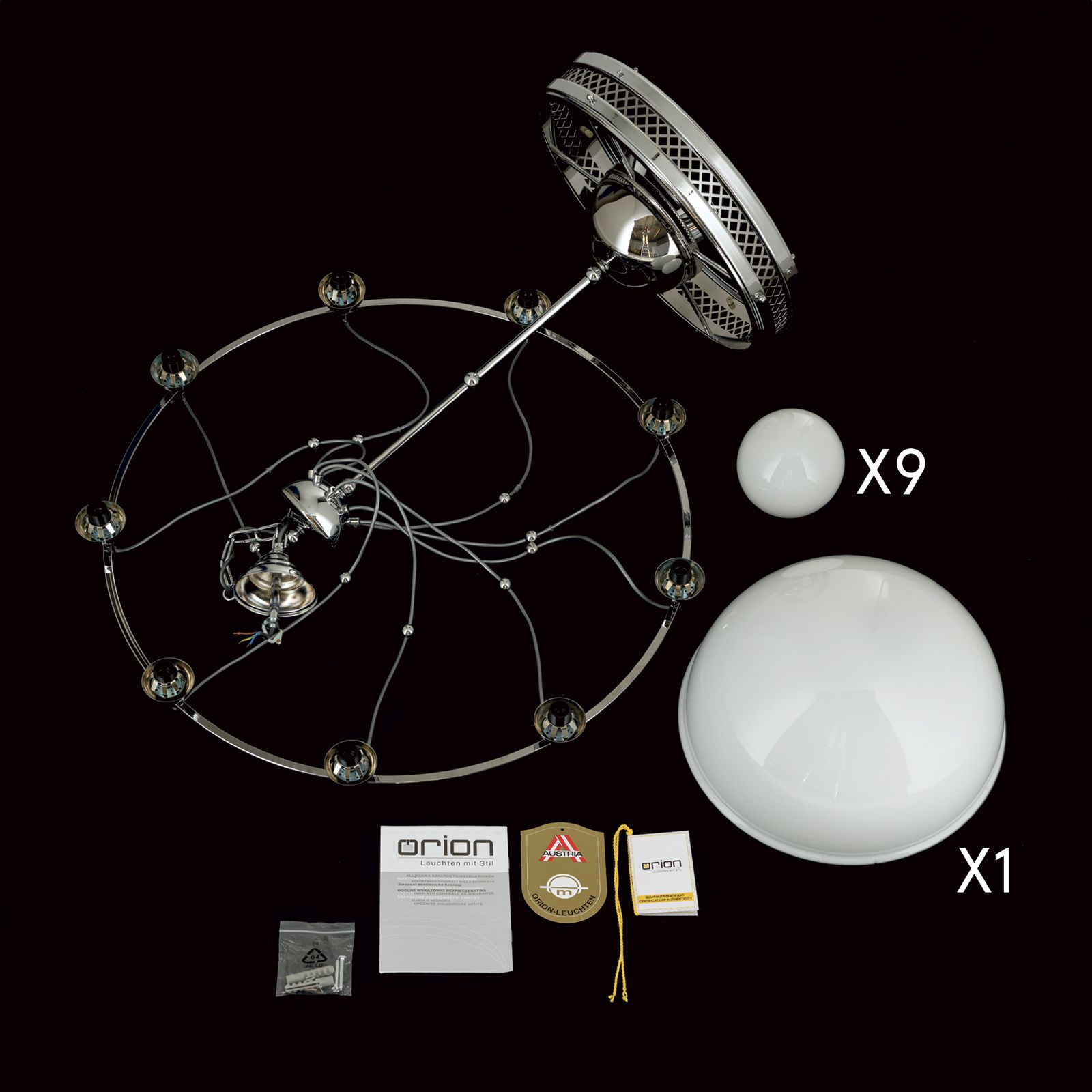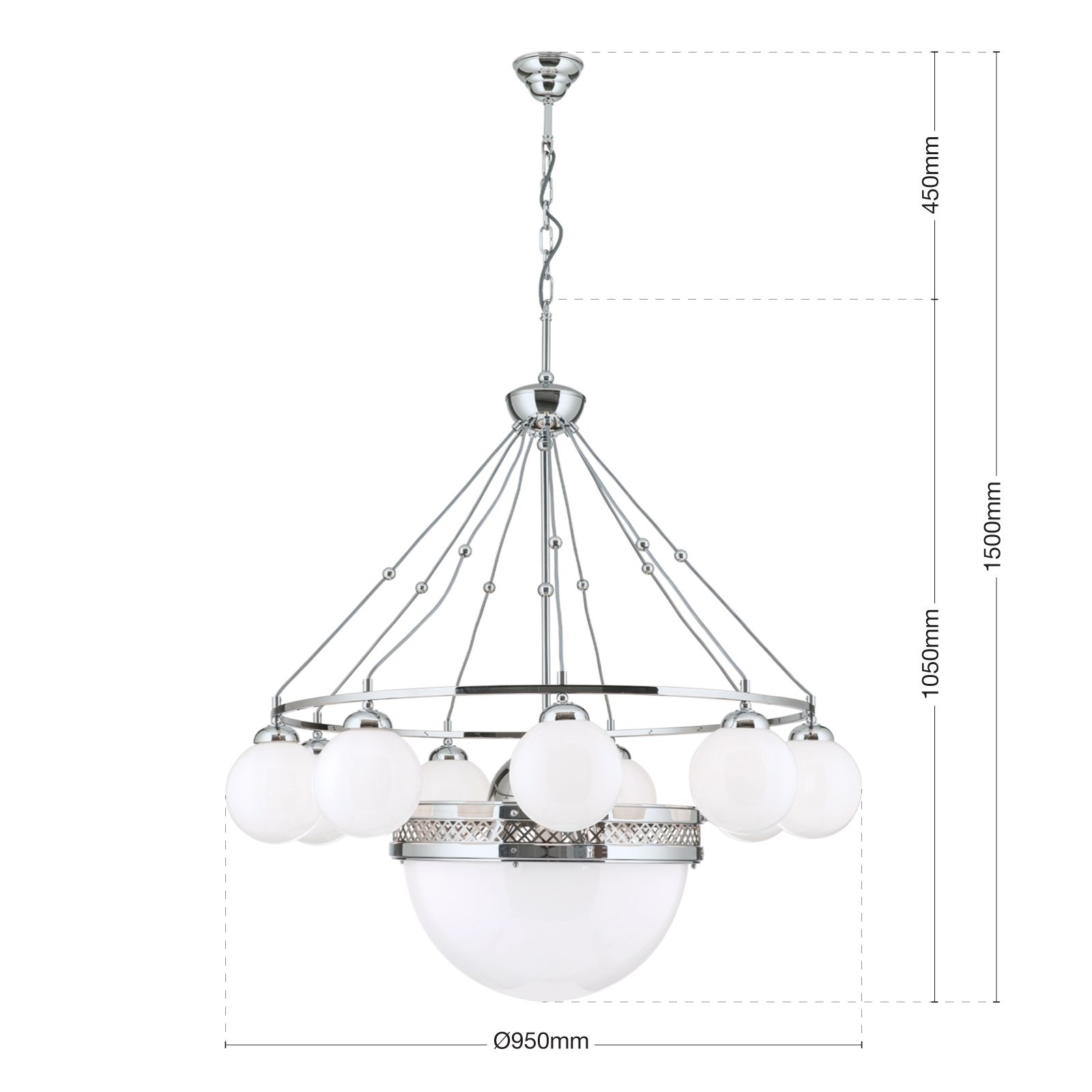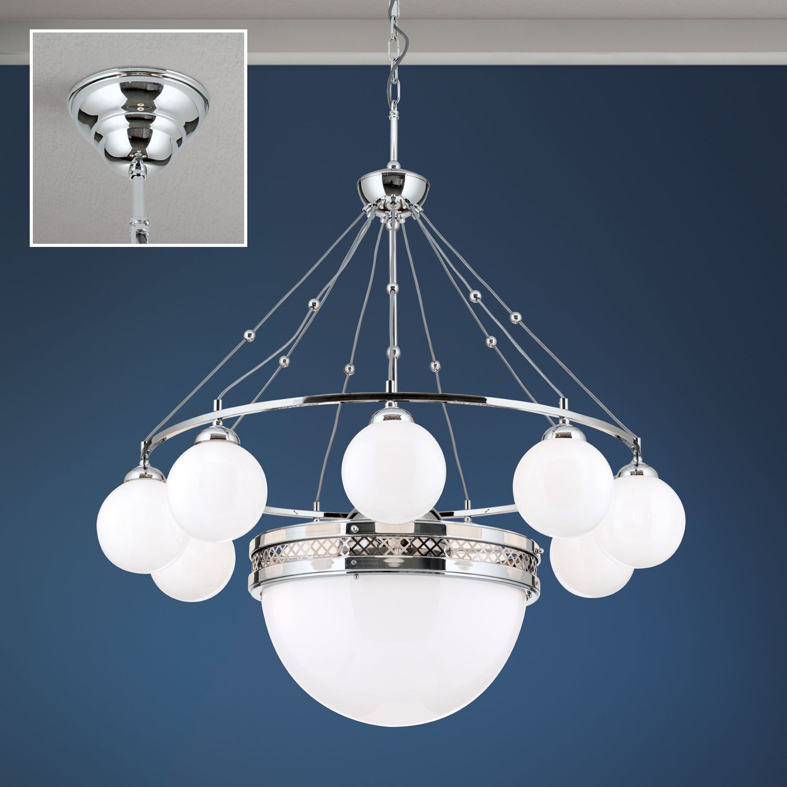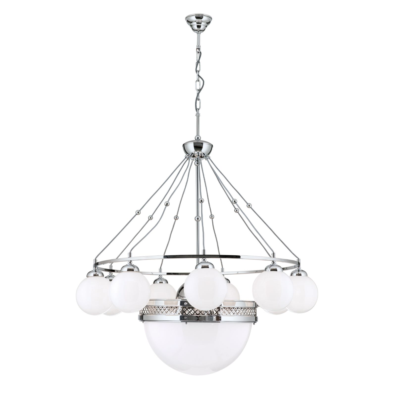 Pendelleuchte ALT WIEN, 9+1-flammig, Nickel, mit opal glänzenden Gläsern