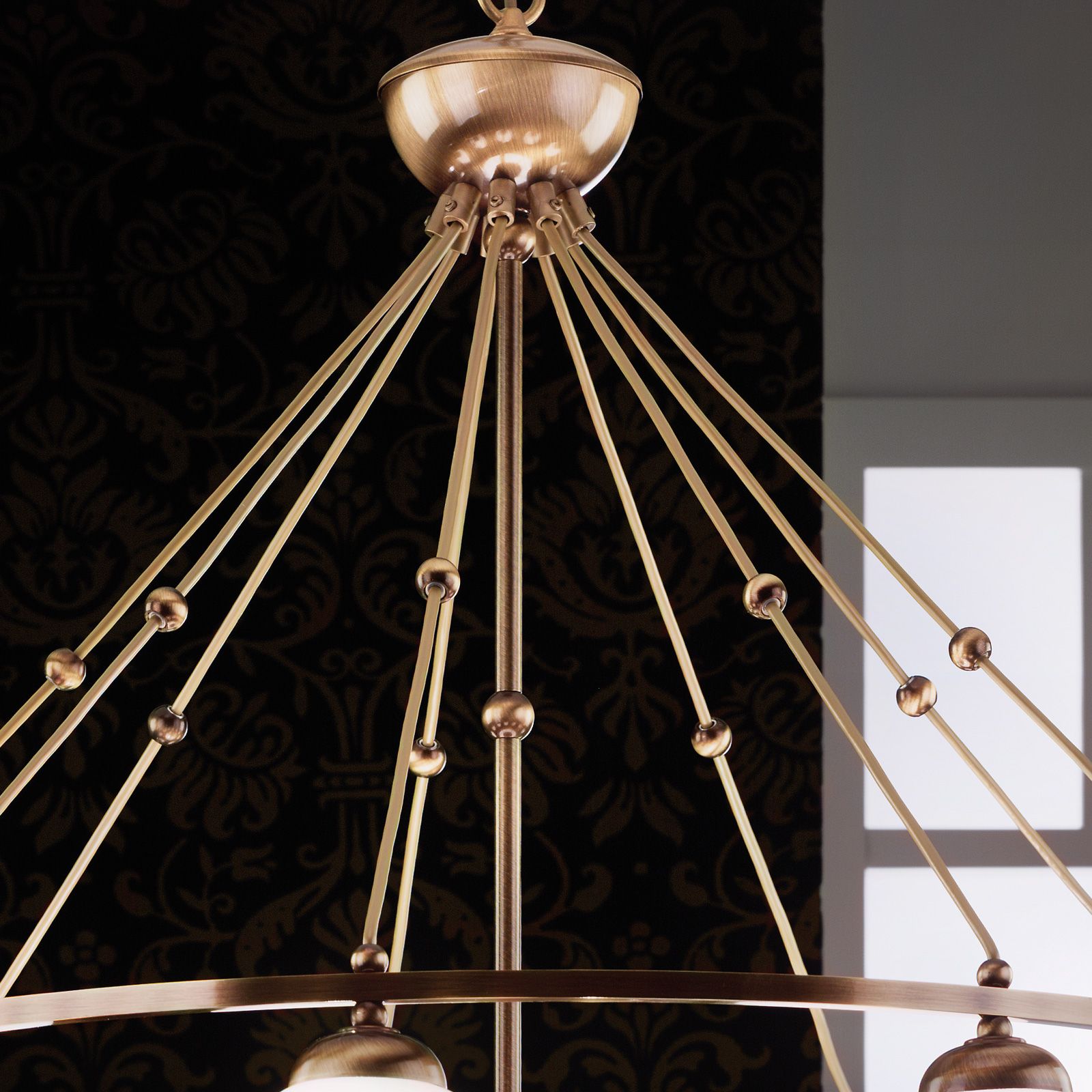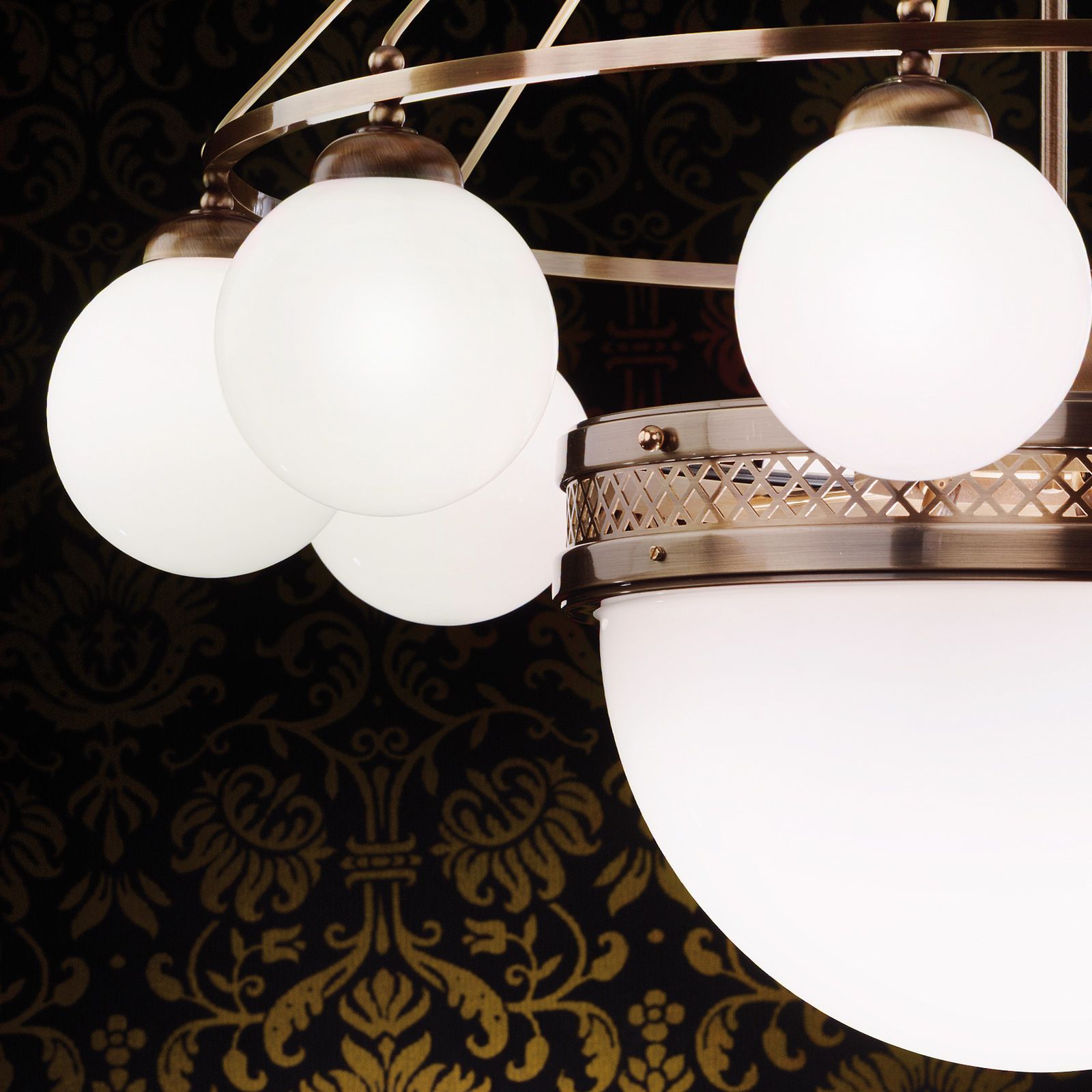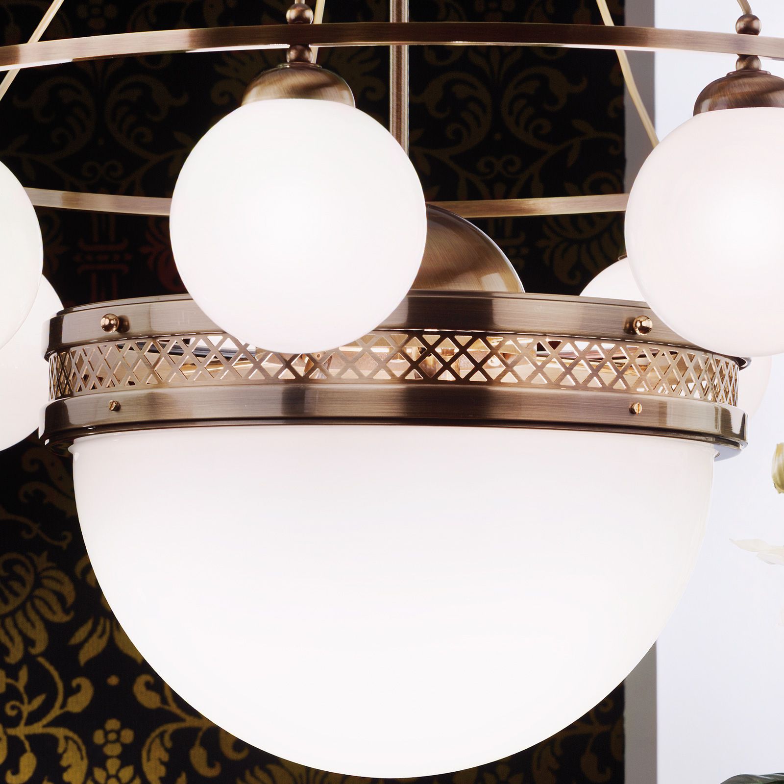 Pendelleuchte ALT WIEN, 9+1-flammig, Patina, mit opal glänzenden Gläsern