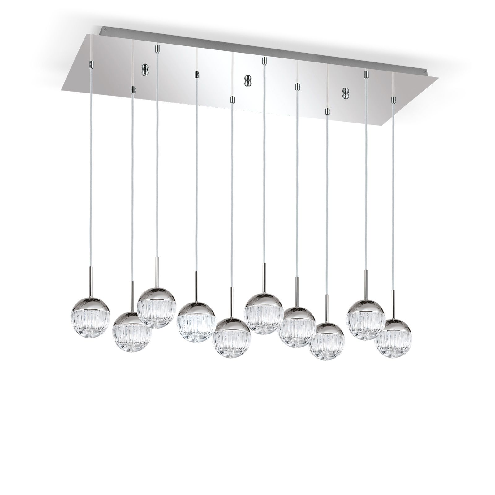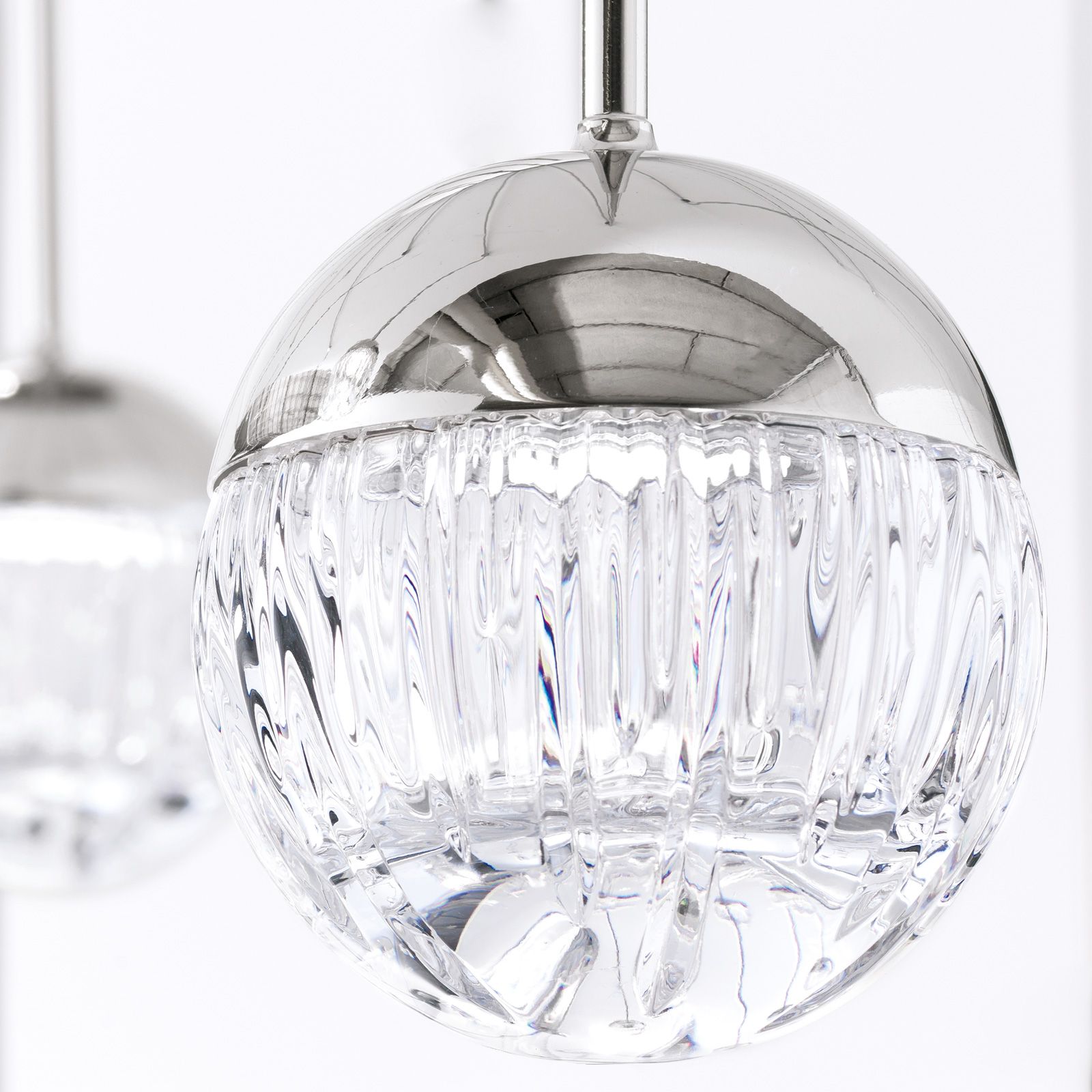 Ganze zehn Lichtkugeln aus Vollschliff Kristallglas bilden den Leuchtenkörper der Hängeleuchte BALL. Der Baldachin aus Vollmessing mit wahlweise glänzender Nickel- oder 24 Karat Gold-Veredelung und farblich passenden Textilkabeln zeigt den ausgewählten und exquisiten Charakter der Leuchte. Jede Kante der Hochblei Kristallgläser im Linienschliff funkelt und macht die Leuchte zu einem wahren Blickfang.