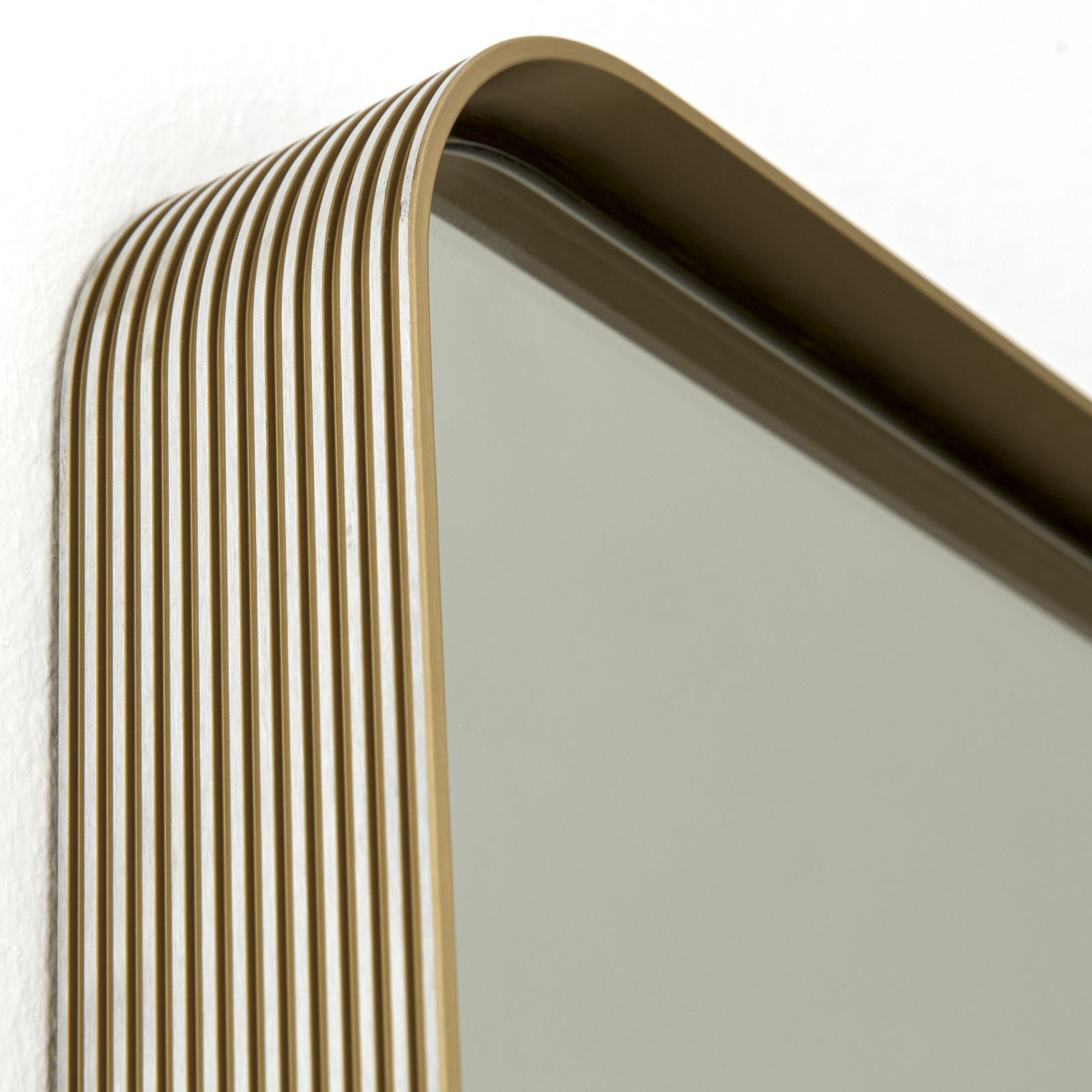 Der Spiegel CARLO hat Abmessungen von 152x76 cm und ist in den Farbvarianten gold-matt eloxiert oder schwarz erhältlich. Der Rahmen besteht aus Aluminium und zeichnet sich durch Rillen im Profil aus, die eine interessante dunkel/hell Schattierung erzeugen.