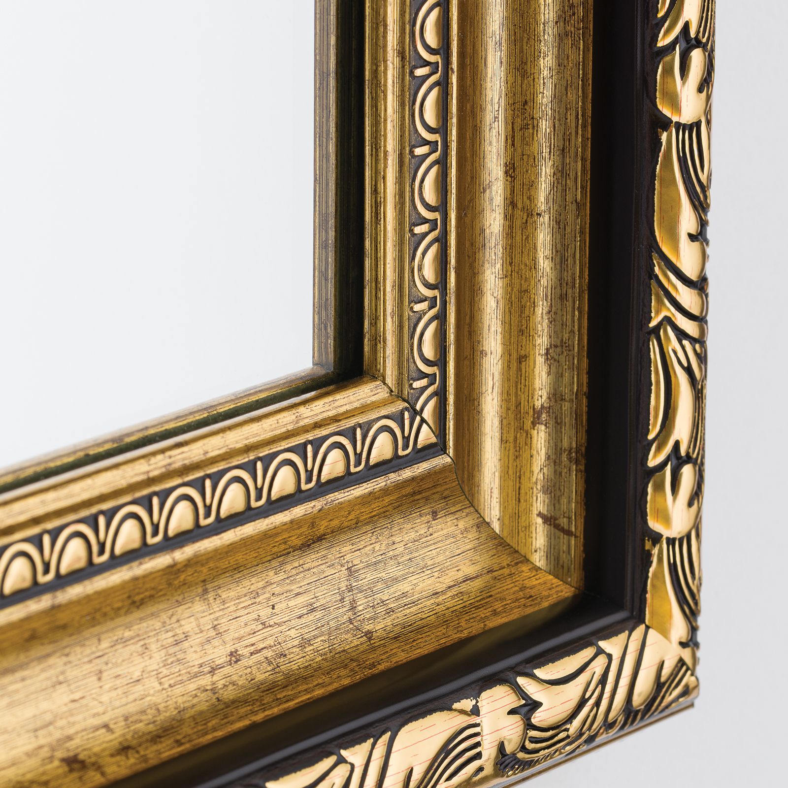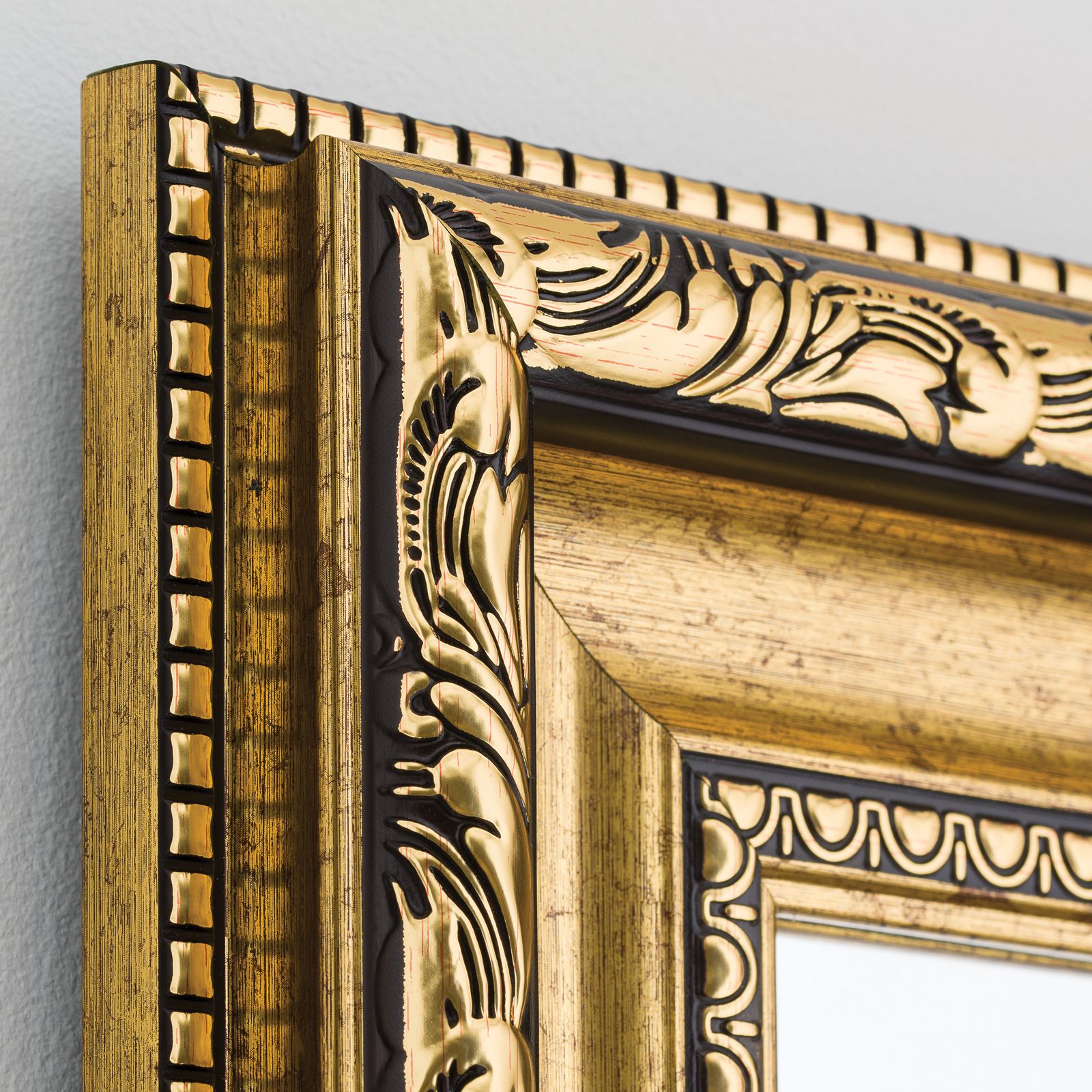 Sein antiker Barock-Stil verleiht ihm eine edle Ausstrahlung, die durch den aufwendig gestalteten Rahmen in Antik-Gold zusätzlich betont wird. Die feine Lackierung sorgt für eine hochwertige Holzoptik und ist dadurch auch sehr gut für Nassräume geeignet, während sie gleichzeitig eine lange Lebensdauer hat.