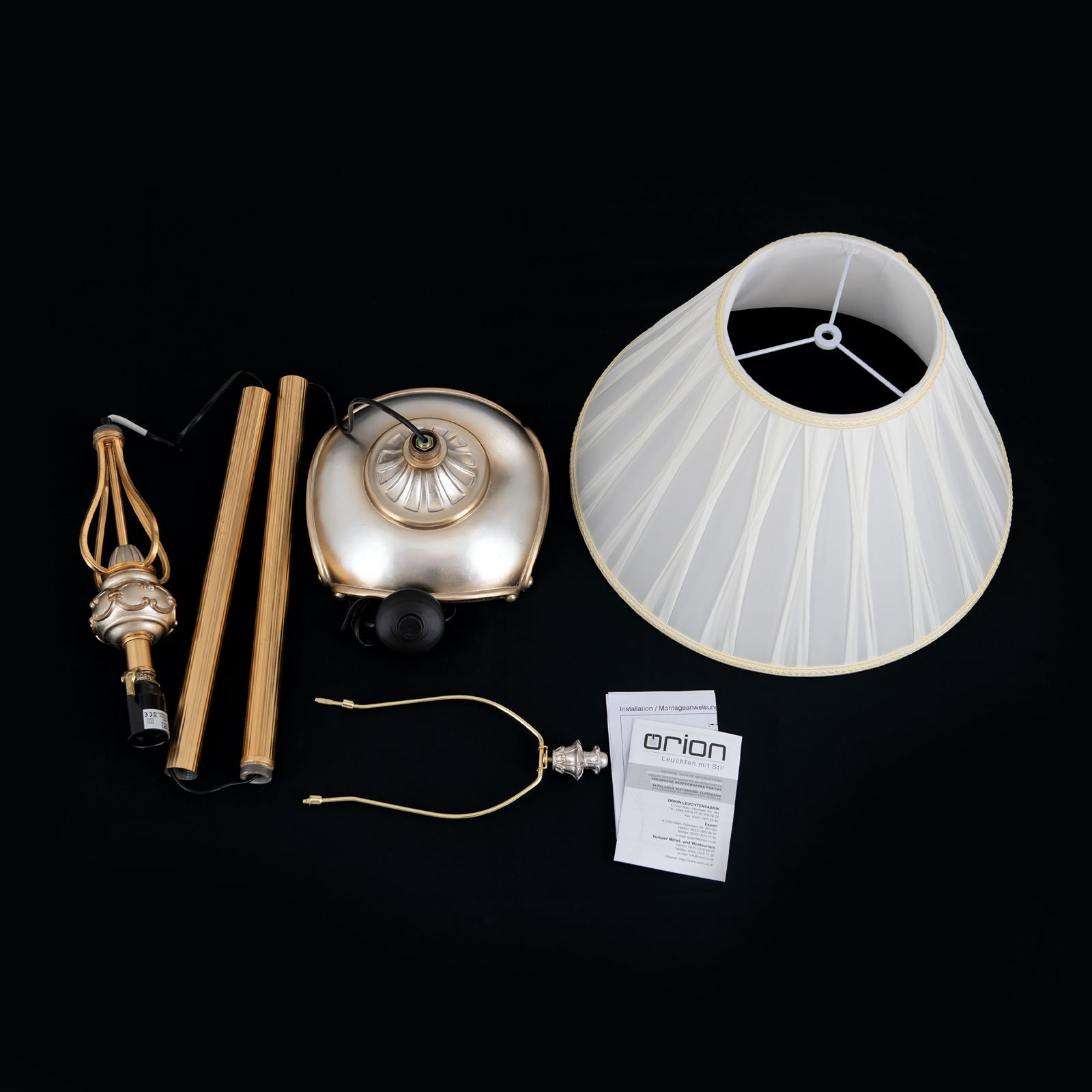 Wer ein wenig imperialen Glanz in sein Heim zaubern will, kommt um die TIZIA-Stehlampe nicht herum. Sie ist gewissermaßen eine von Lampenkopf bis -fuß durchkomponierte Zelebrierung des Edlen. Der Sockel steht auf vier verzierten Füßen und strebt in reicher Ornamentik empor. Der Schirm ist in fein gebündeltem Plissée ausgeführt und wird durch Blütenkelche gekrönt. Die hochwertige Antik-Gold Ausführung rundet das noble Erscheinungsbild ab. Jeder Raum mit passendem Mobiliar wird durch dieses Leuchtenkleinod geadelt und mit bis zu 60 Watt zum Erstrahlen gebracht. Bei aller Opulenz kann die Leuchte doch durch den Einsatz einer energiesparenden Lampe klima- und umweltfreundlich betrieben werden.