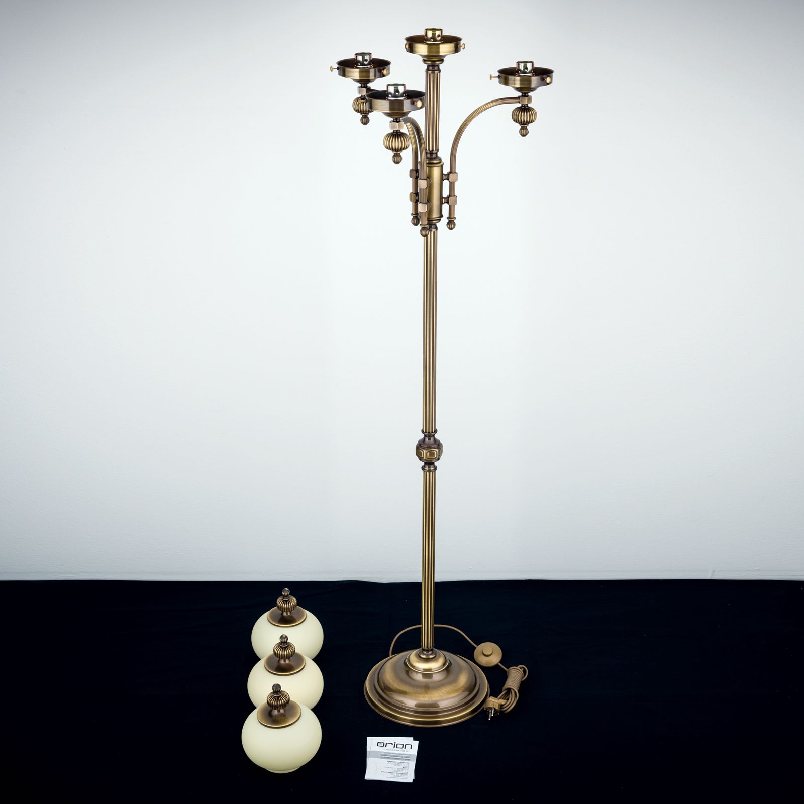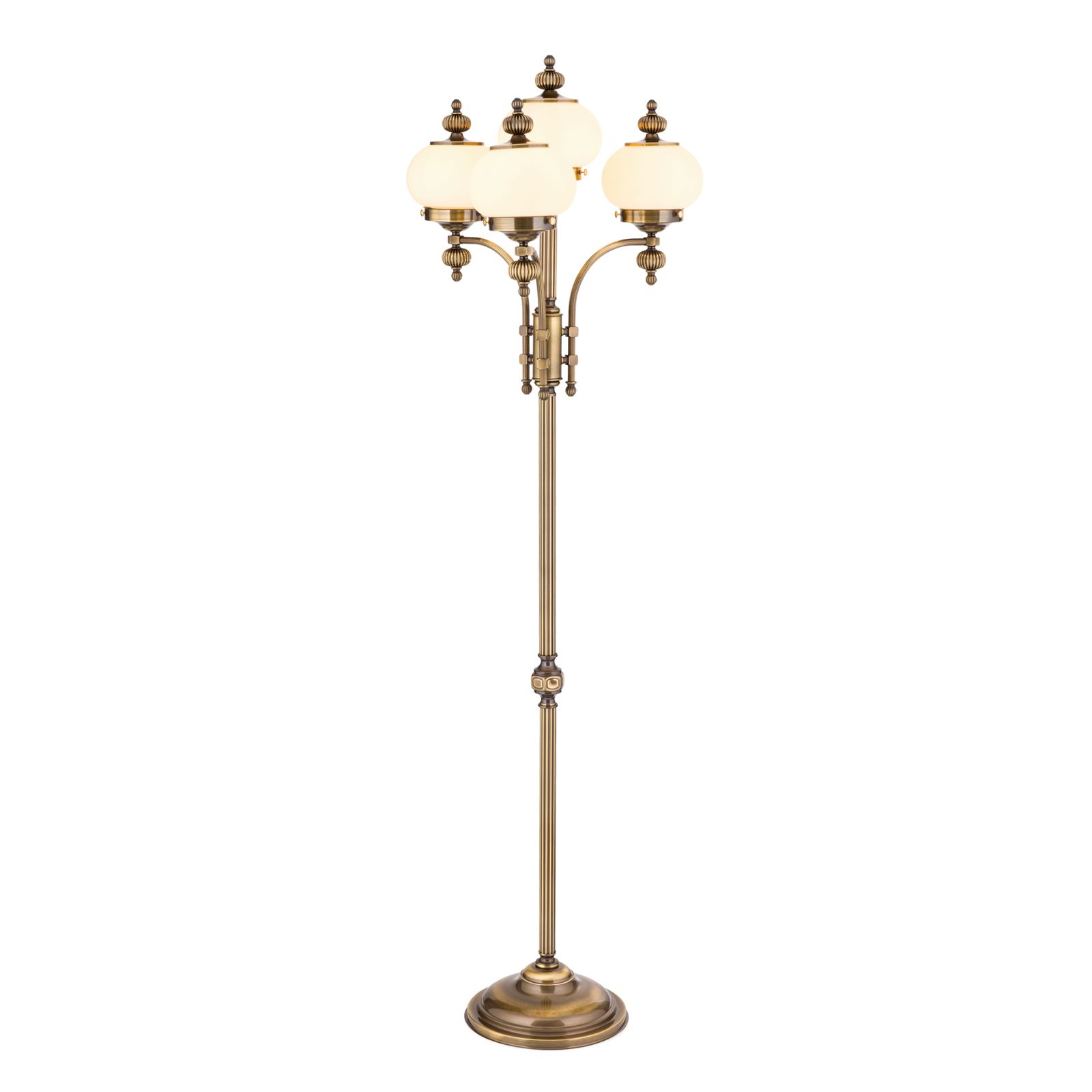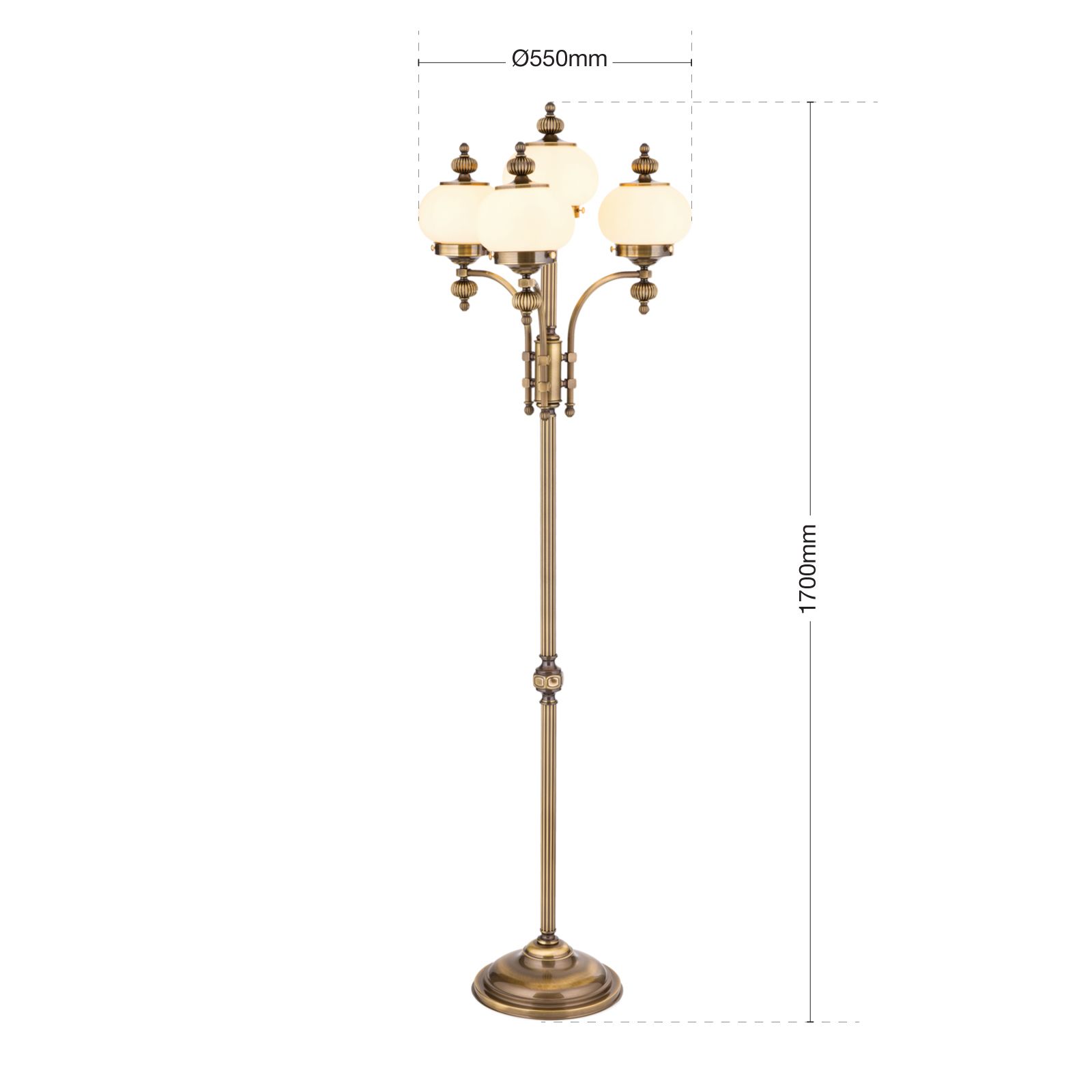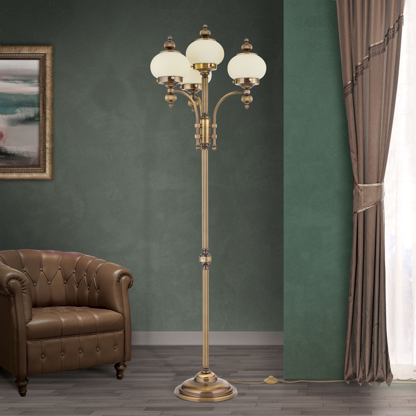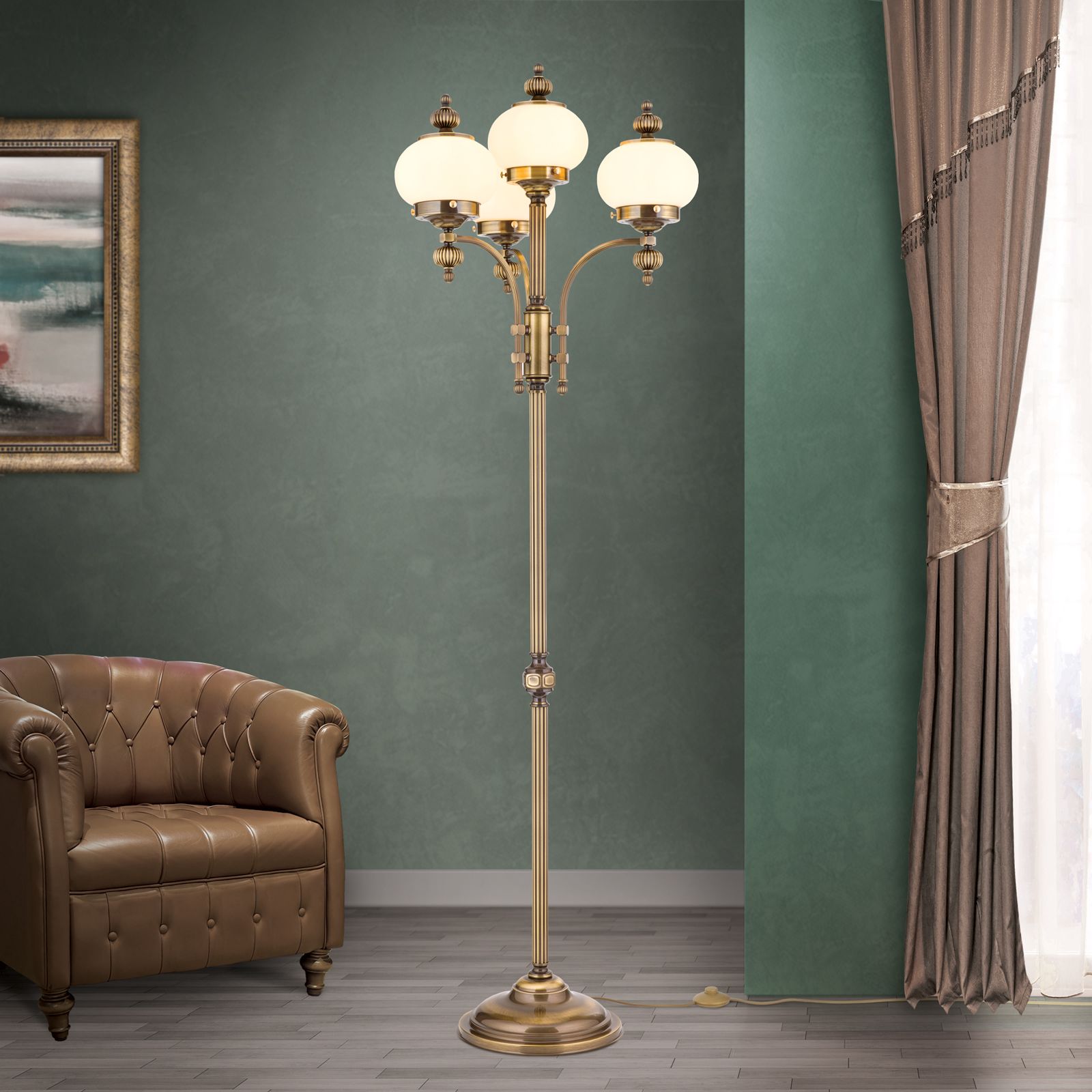 Stehlampe WIENER NOSTALGIE, 4-flammig, Patina, mit champagne matten Gläsern