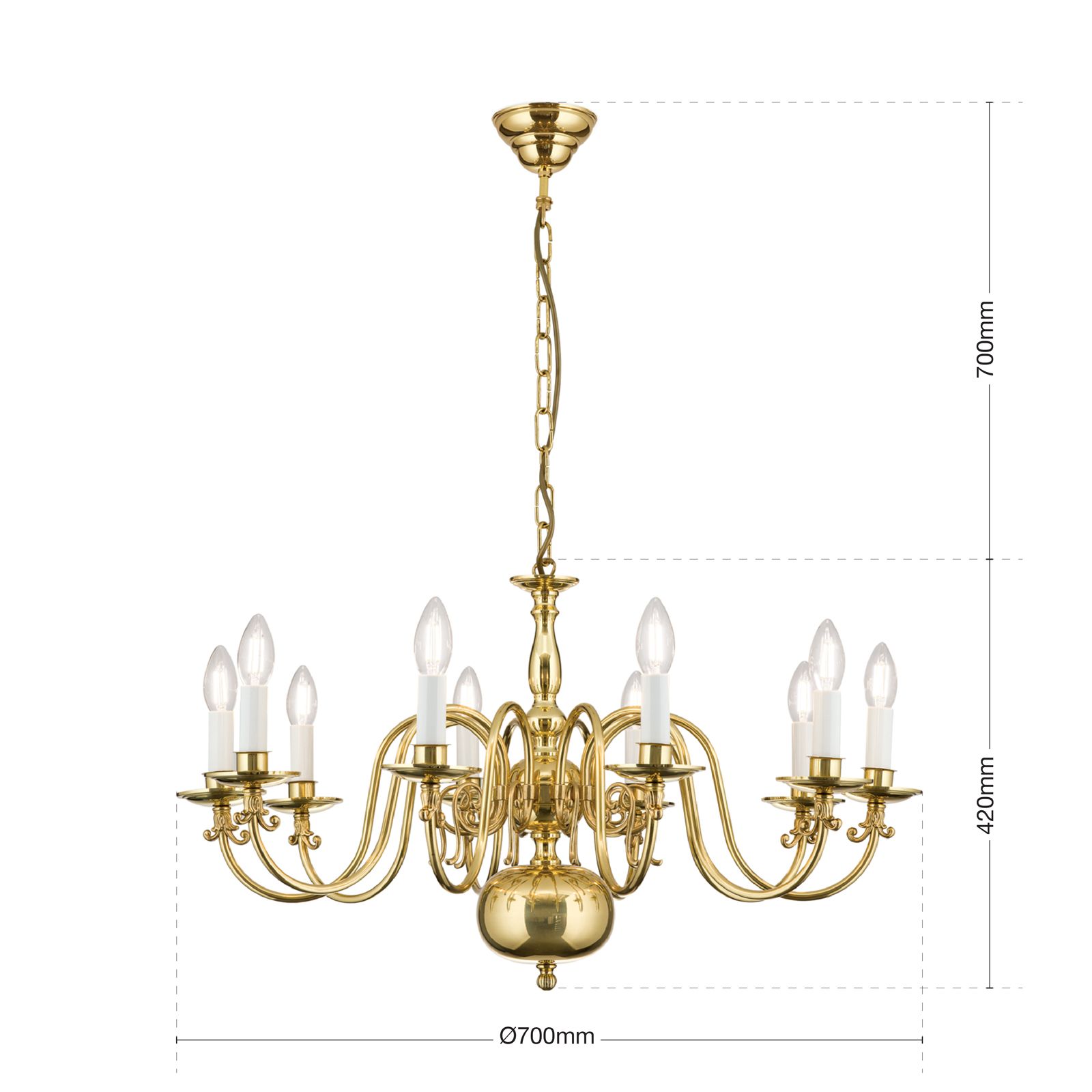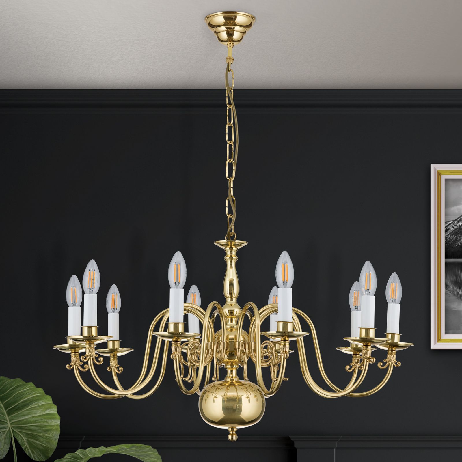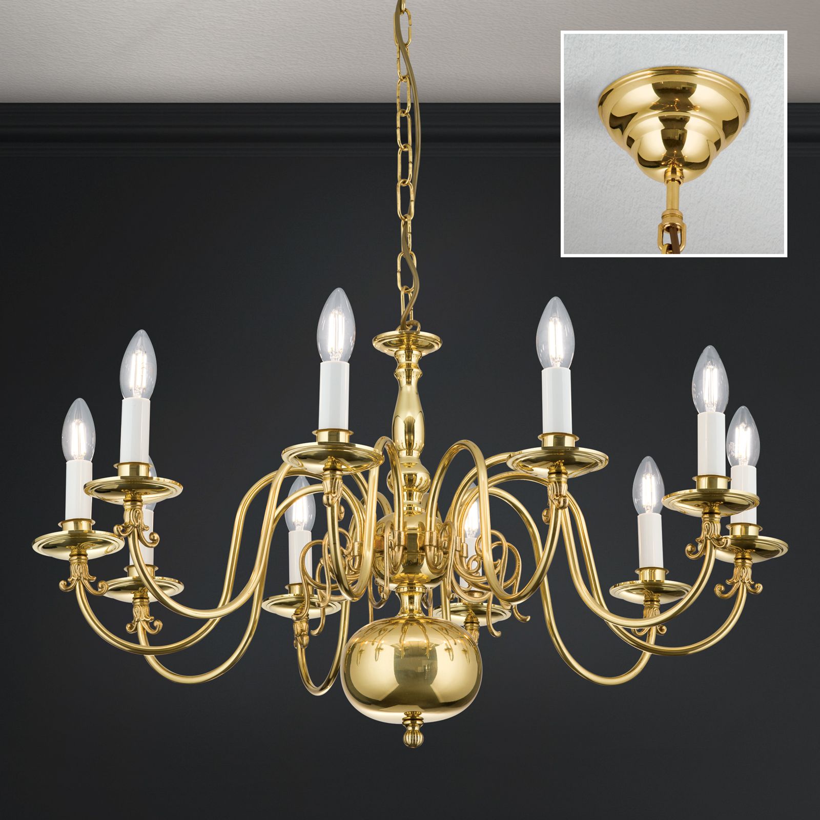 Stilluster FLÄMISCH, 10-flammig, Messing-glänzend