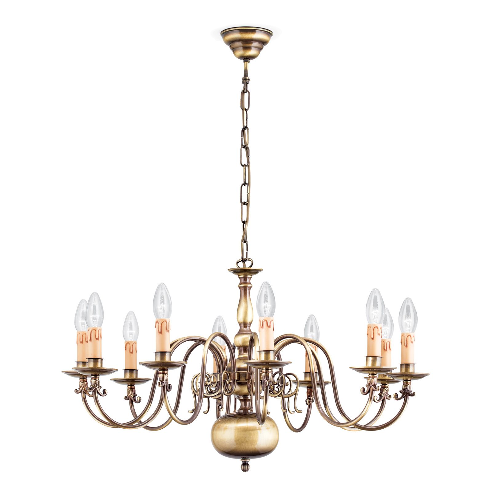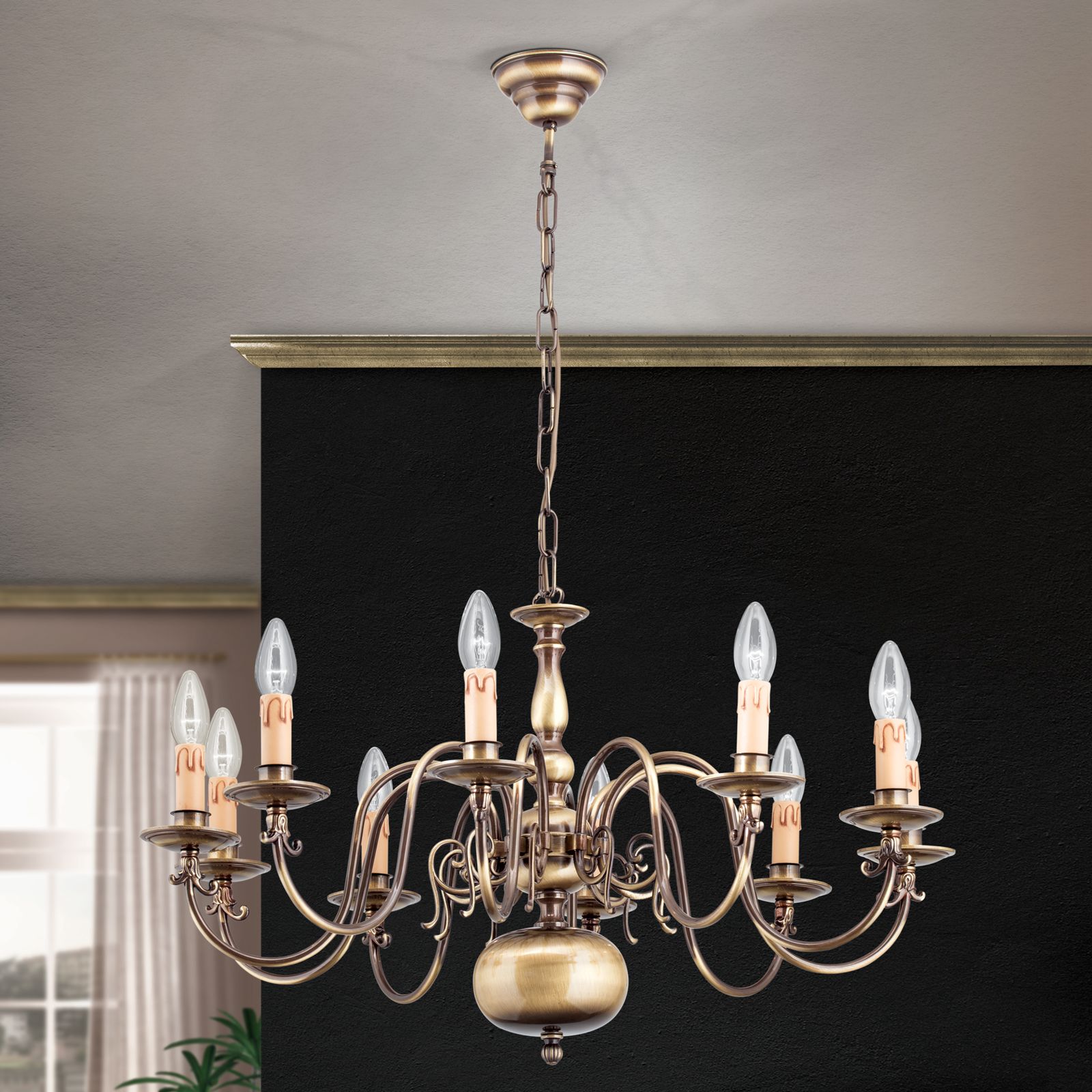 Der 10-flammige Kronleuchter aus der Reihe FLÄMISCH ist auch in Patina erhältlich.
