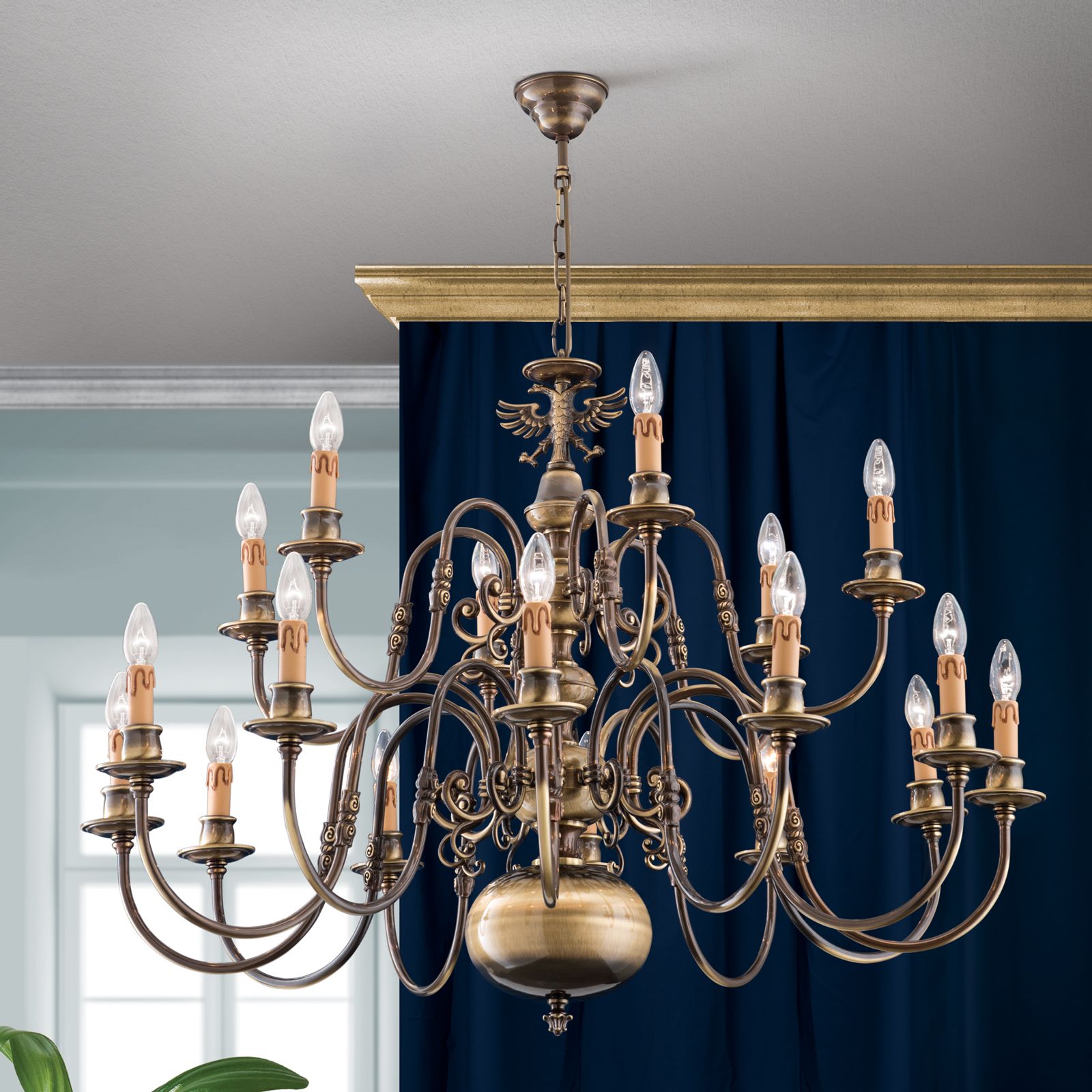 Stilluster FLÄMISCH, 12+6 flammig, Patina, mit Adler