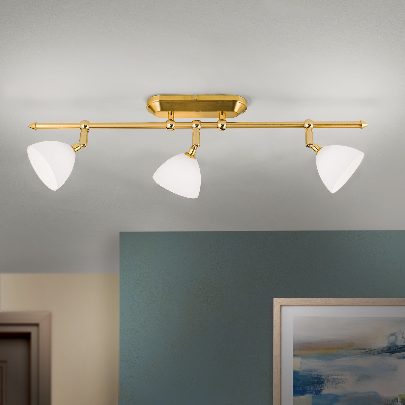 Strahler OPALDESIGN, 3-flammig, Gold-matt, mit Opalgläsern