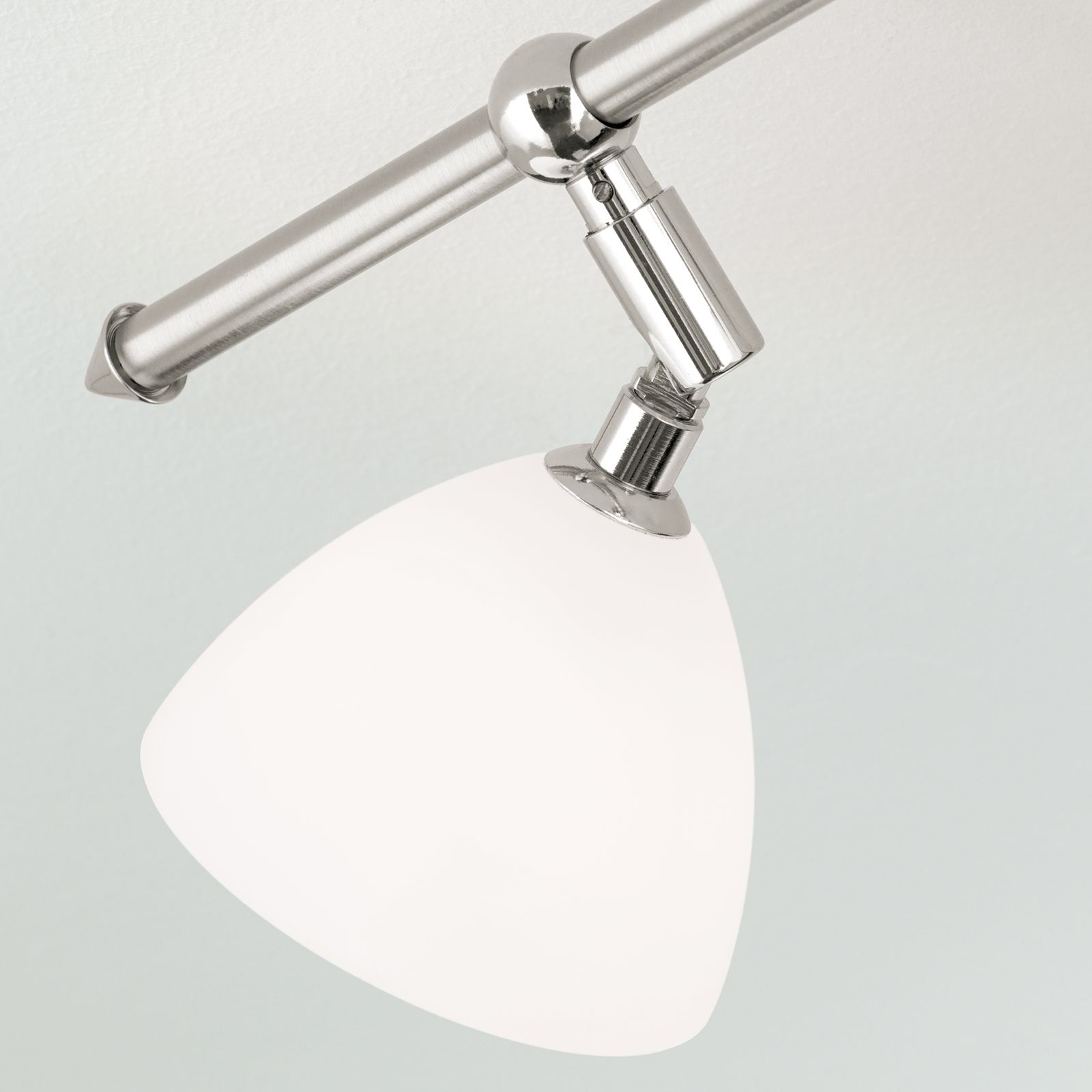 Seine Opalglasschirme in Kelchform können nicht nur für eine punktuelle Beleuchtung ausgerichtet werden, sie geben ihr Licht auf sanft an die Umgebung ab.