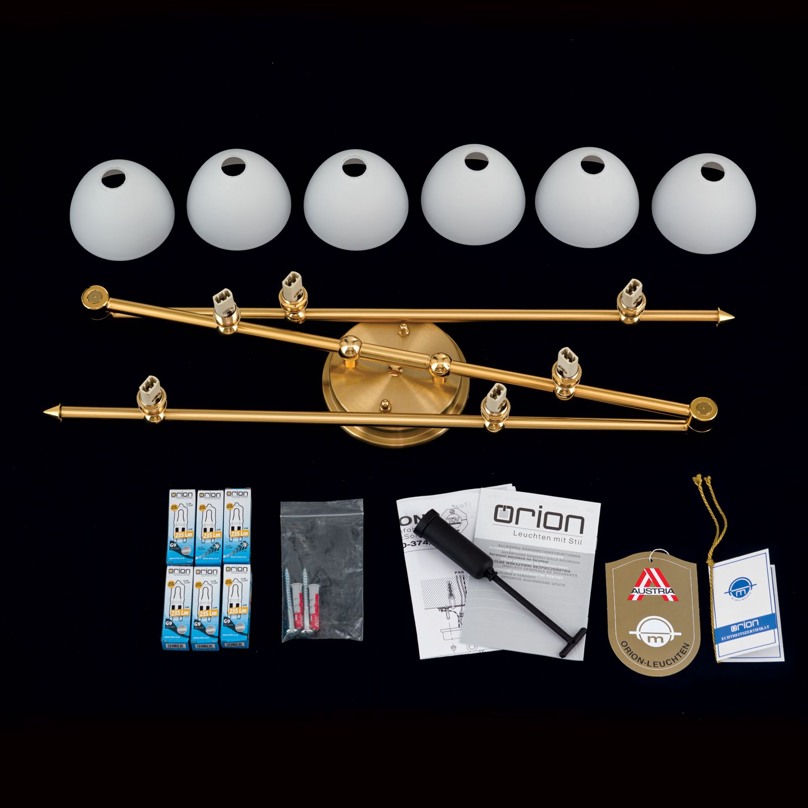 Strahler OPALDESIGN, 6-flammig, Gold-matt, mit Opalgläsern