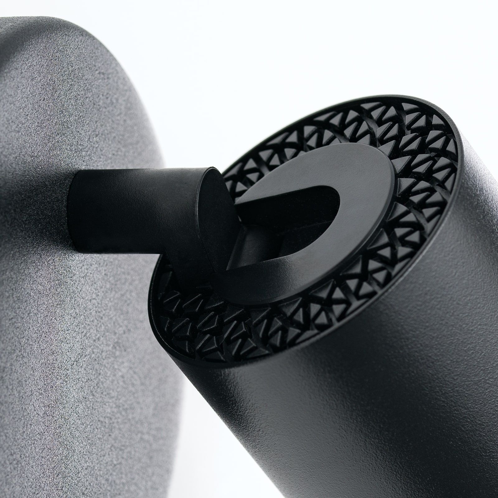 Bei aller Schlichtheit besticht die Leuchte auch durch die Detailverliebtheit, die durch dein Einsatz eines Distanzrings zur Vermeidung von Blendung und dem konsequenten Einsatz von zylindrischen Elementen zum Ausdruck kommt, ob Gehäuse, Schwenkarm oder Montageplatte.