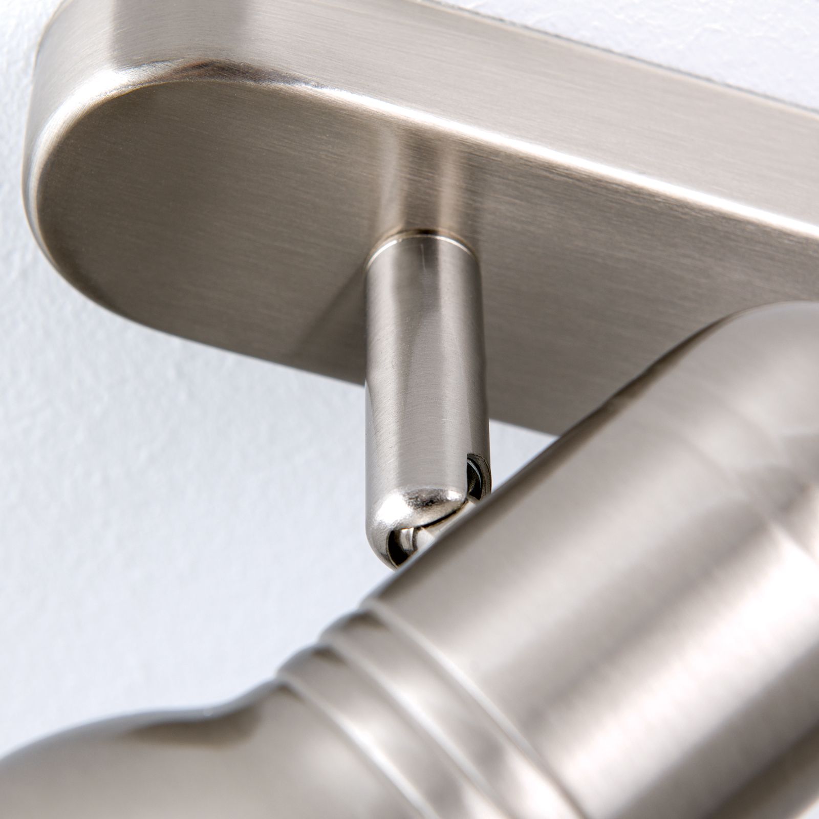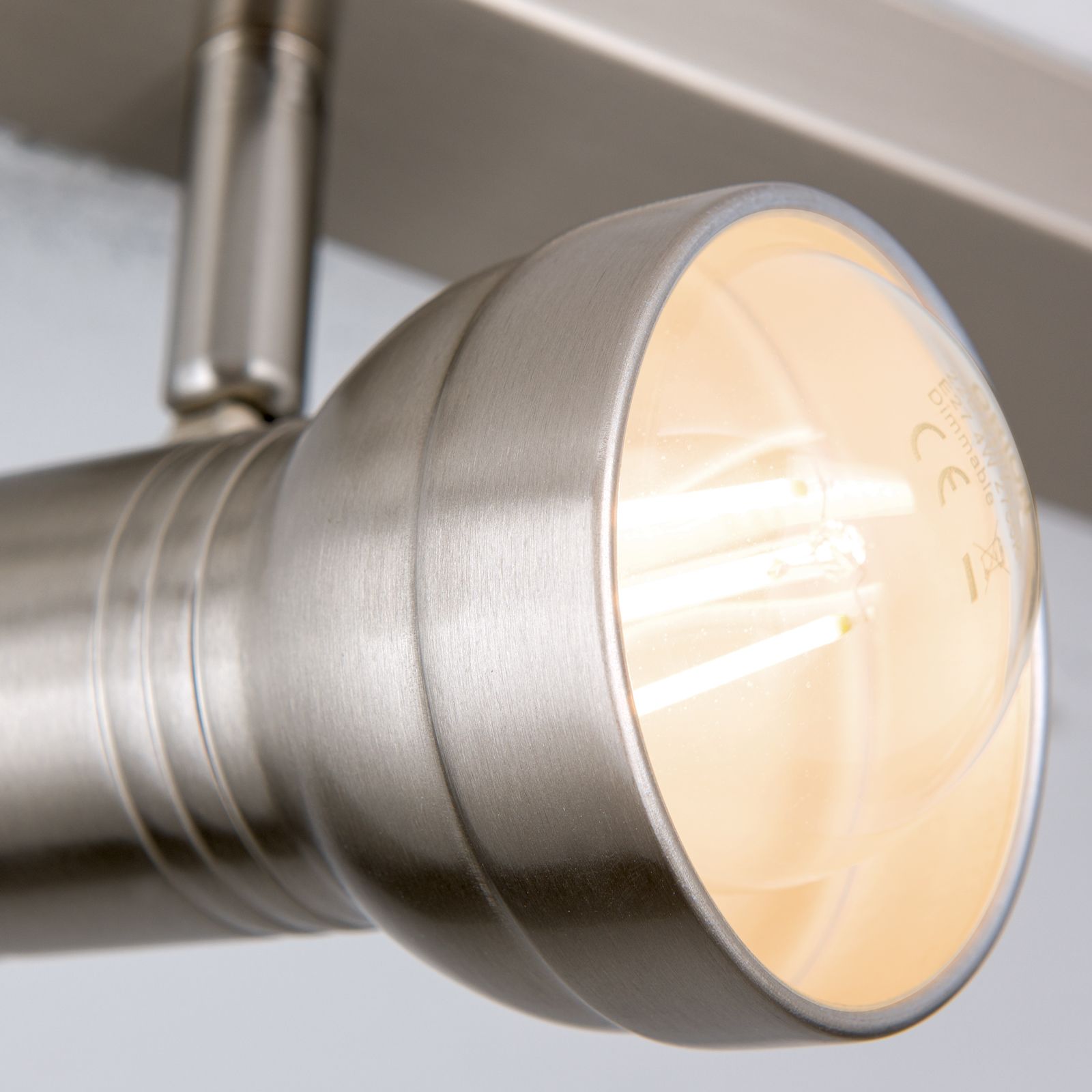 Die Satin/Nickel-matte Oberflächenveredelung rundet die hochwertige Verarbeitung des Strahlers ab. Drei E27-Fassungen für je maximal 60 Watt-starke Leuchtmittel bieten ausreichend Power für jede Wahl der Raumausleuchtung. Wird die Leuchte mit sparsamen LED-Lampen betrieben, kann man sich am Ende des Monats auch an einer Reduktion der Energiekosten erfreuen. Matte LED-Lampen in Tropfenform mit einem E27-Sockel sind die idealen Leuchtmittel für diesen Strahler.