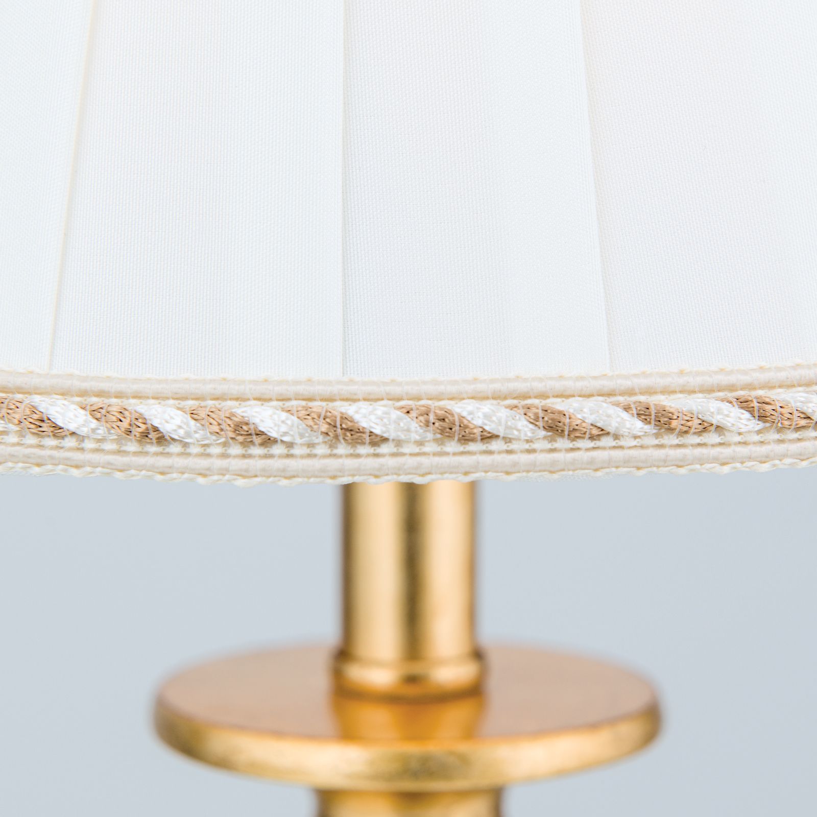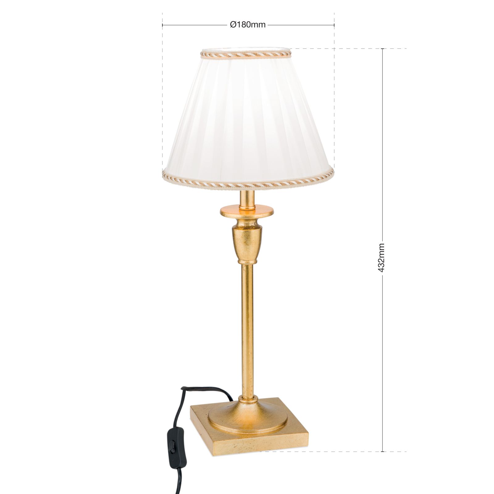Als dekoratives Element im Wohn- oder Schlafzimmer sind Tischlampen immer ein Blickfang. FONSA steht dabei für herzliche Klassik und zeigt vor allem im Detail ihren eindrucksvollen Charakter. Ein weißer Plisseeschirm steht im harmonischen Zusammenspiel mit einer antik goldenen Zierbordüre am oberen und unteren Rand des Schirms. Der Standfuß spiegelt diese Farbgebung in antikem Gold wieder und unterstreicht das Design mit einer Patina ähnlichen Oberfläche.