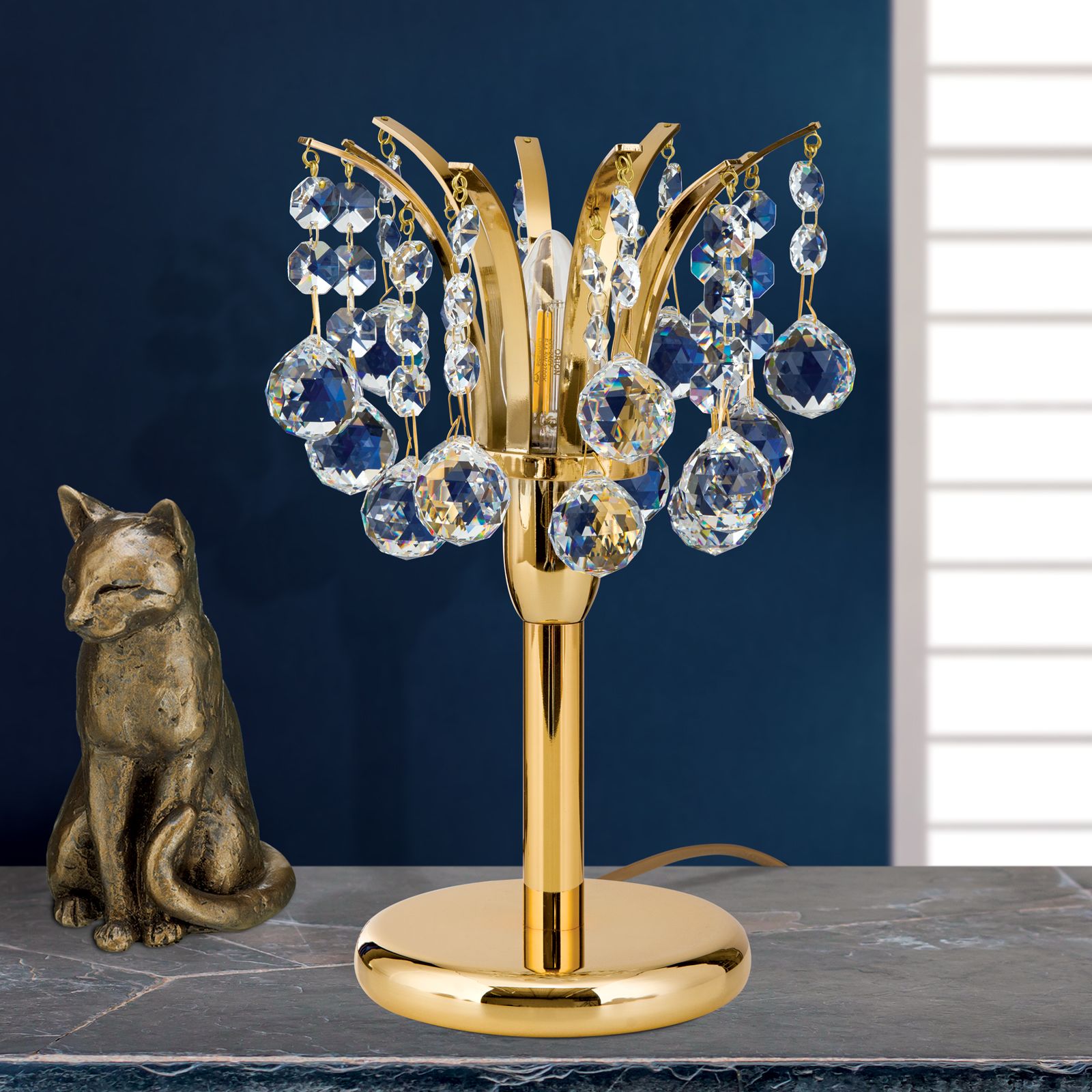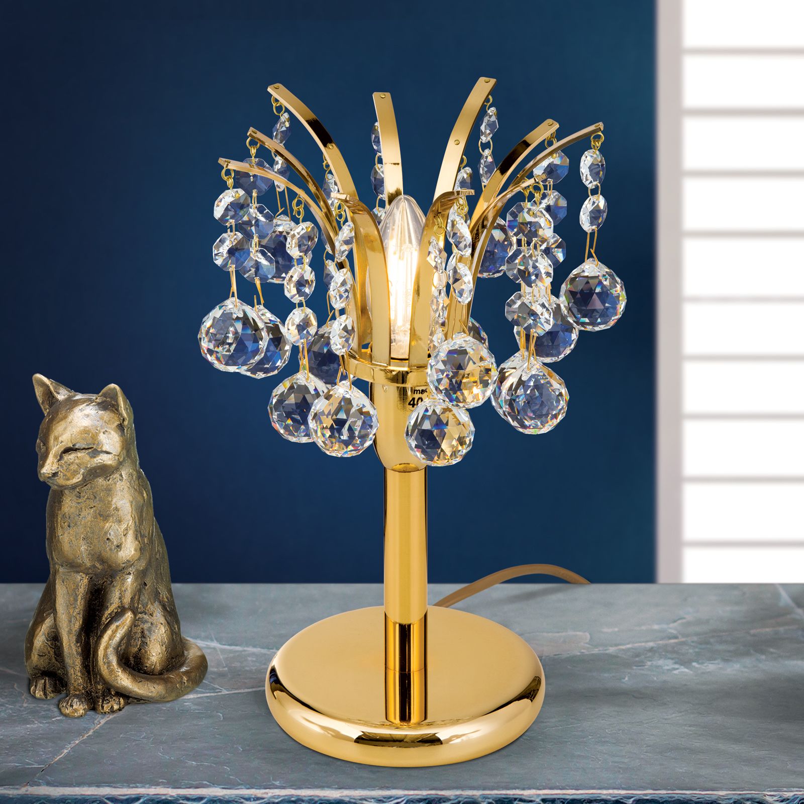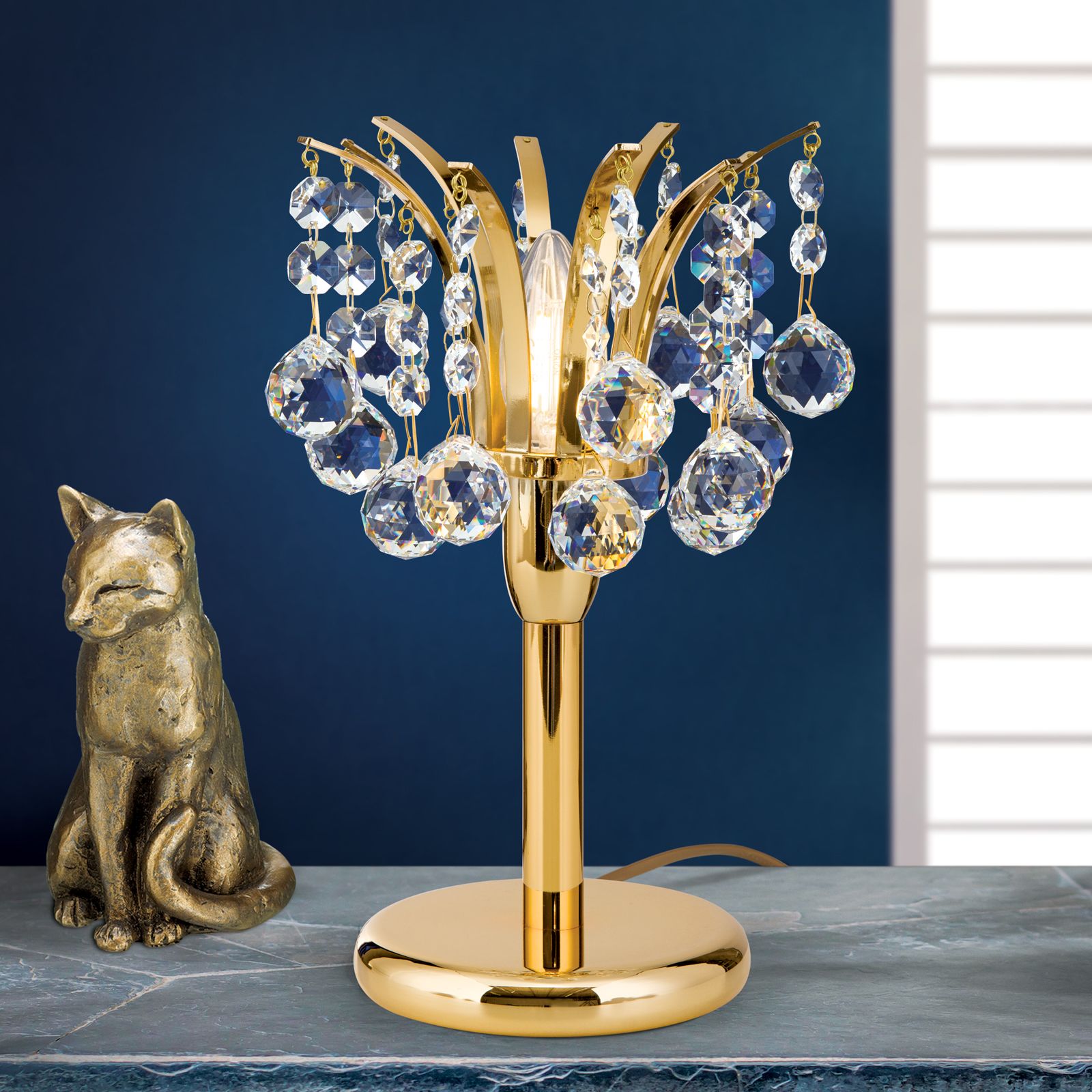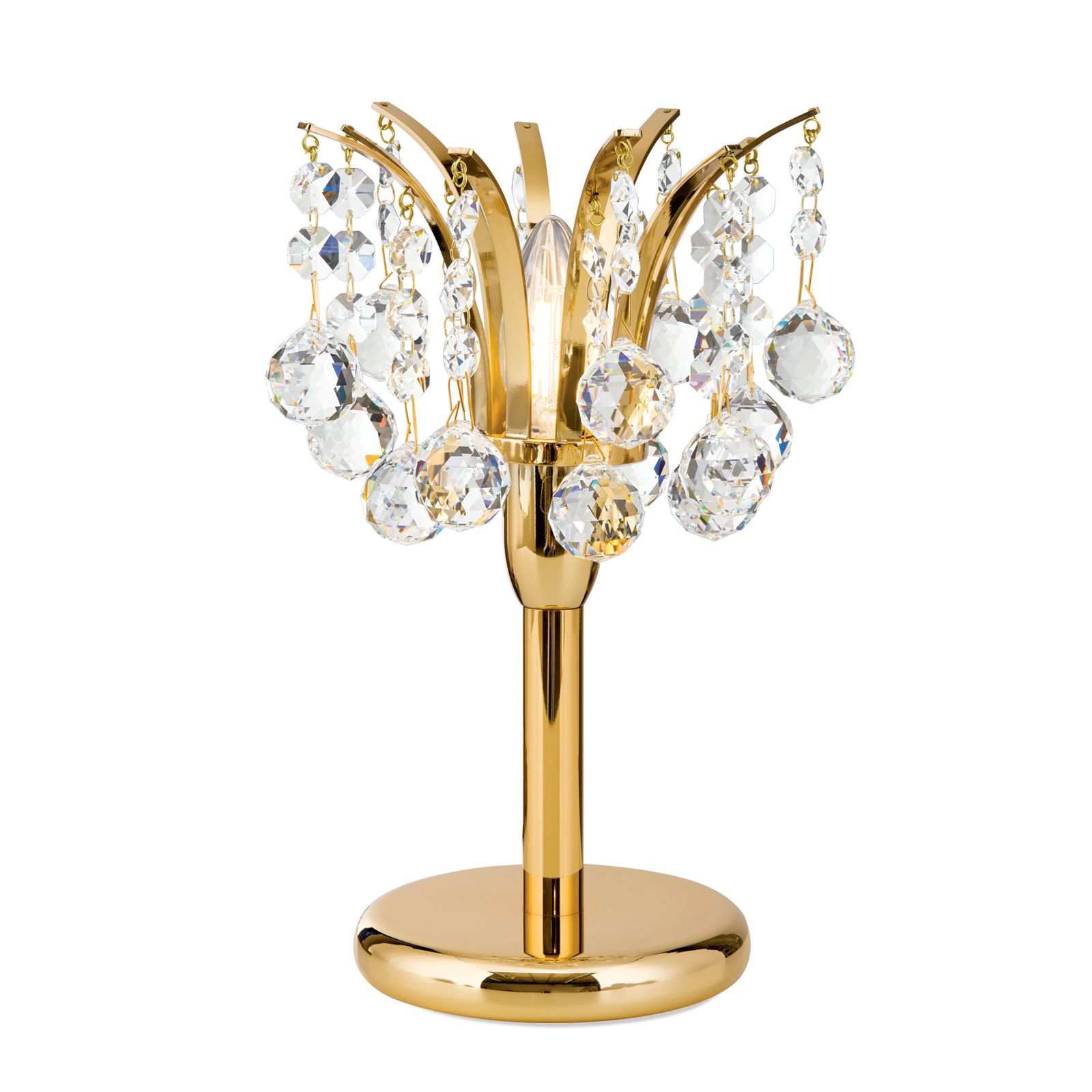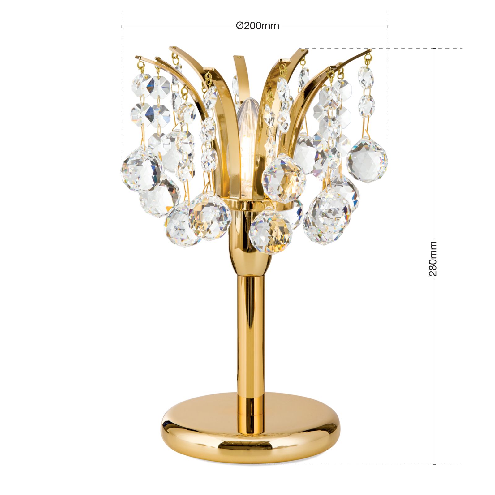 Tischlampe KRISTALL KLASSISCH, Gold, mit klarem Kristallbehang, H28cm