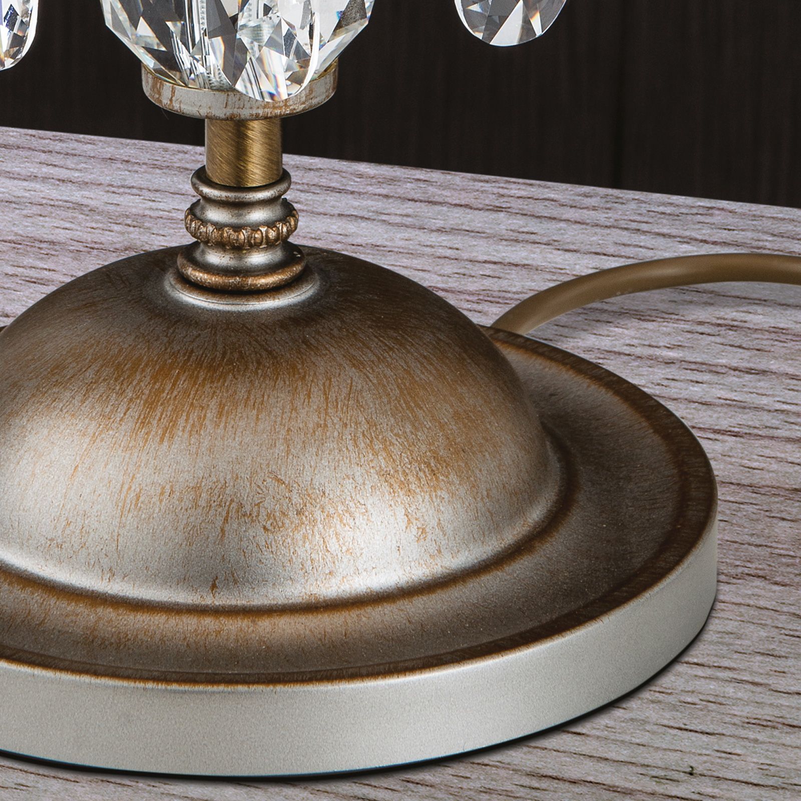 Die 1-flammige Tischlampe aus der MIRAMARE-Serie ist dank ihres kostbaren Kristallschmuckes ein Kleinod. Warmes Licht wird durch den plissierten Schirm gleichmäßig verteilt. Das Glitzern und Funkeln der Kristalle rankt sich um eine elegant geformte Blüte in der Mitte des Lampenschaftes. Der Korpus aus Vollmessing ist mit handbemaltem und handschattiertem Silbergold versehen. Ein kleines Antiktischchen neben einem Lesesessel eignet sich für dieses kleine Lichtjuwel genauso sehr, wie ein modernes Sideboard oder eine Vorzimmerkommode. Die Leuchte verfügt über eine E14-Fassung für maximal 40 Watt.