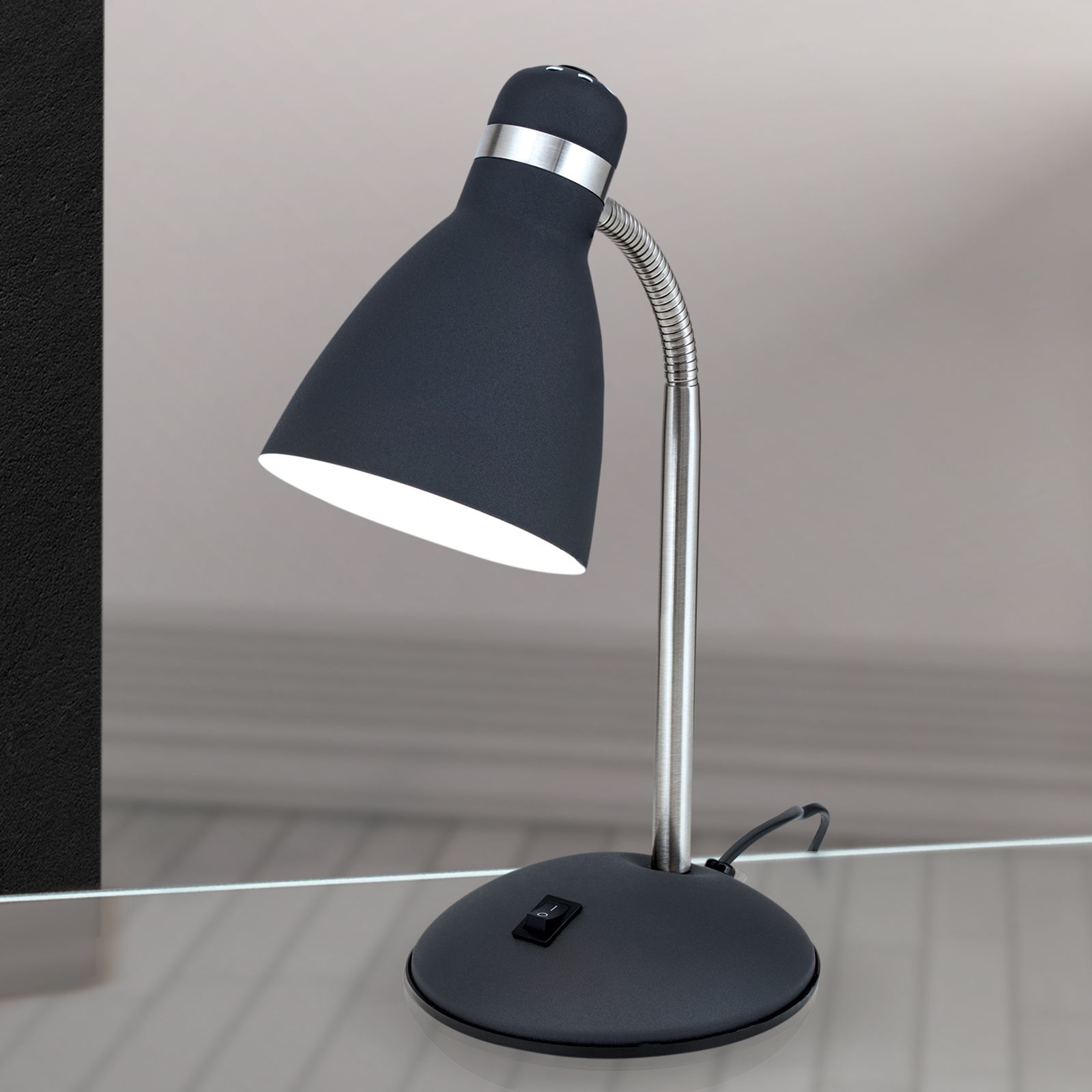 Harmonisch im Gesamtbild erscheint die Tischlampe SCHOOL und ist der ideale Begleiter für Arbeitsplätze von Groß und Klein. Der Standfuß sowie der Schirm sind farblich gleich, lediglich der silberne Leuchtenarm, der den oberen Teil des Schirms umschließt, hebt sich vom Rest ab. Zusätzlich lässt sich der Arm in seiner Richtung ändern, um den Lichtstrahl dorthin zu lenken, wo man ihn gerade braucht. Ein problemloses Ein- und Ausschalten der Leuchte ermöglicht der integrierte Schalter, welcher am Fuß der Lampe angebracht ist. Mit einer E27-Fassung ausgestattet, kann sie mit maximal 40 Watt bestückt werden. Empfehlenswert sind dabei sparsame LEDs zu verwenden, da sich durch einen äußerst niedrigen Stromverbrauch auszeichnen.