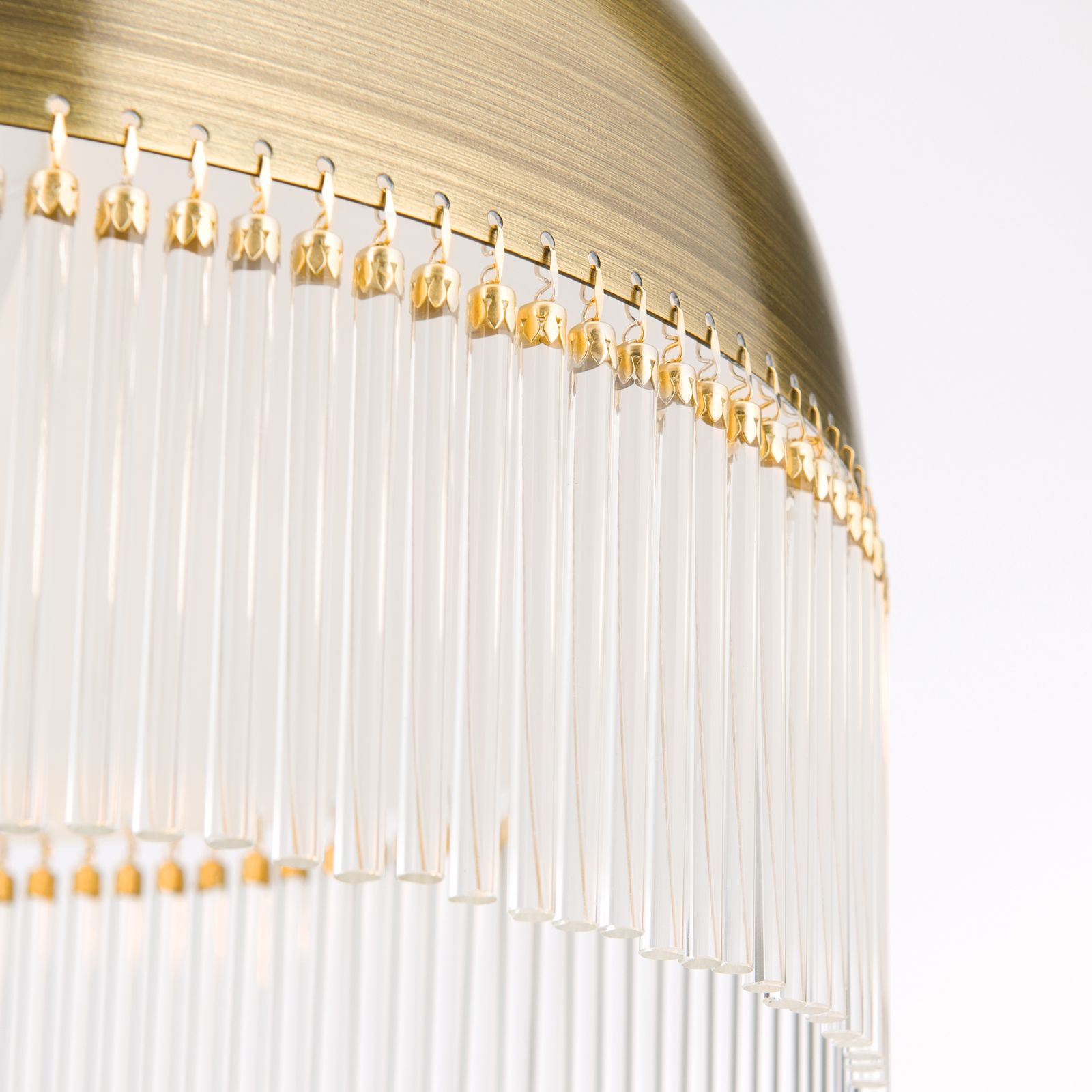 Die 2-flammige Tischlampe aus der STÄBCHENSERIE präsentiert sich als beeindruckendes Kunstwerk, das die klaren Linien zeitgenössischer Stilrichtungen mit der opulenten Eleganz des Historismus harmonisch verbindet. Hergestellt aus edlem Messing, strahlt sie eine zeitlose Raffinesse aus, die jeden Raum aufwertet. Der Messingschirm, geschmückt mit anmutigen Glasstäben, verleiht dieser Lampe einen bezaubernden Reiz.