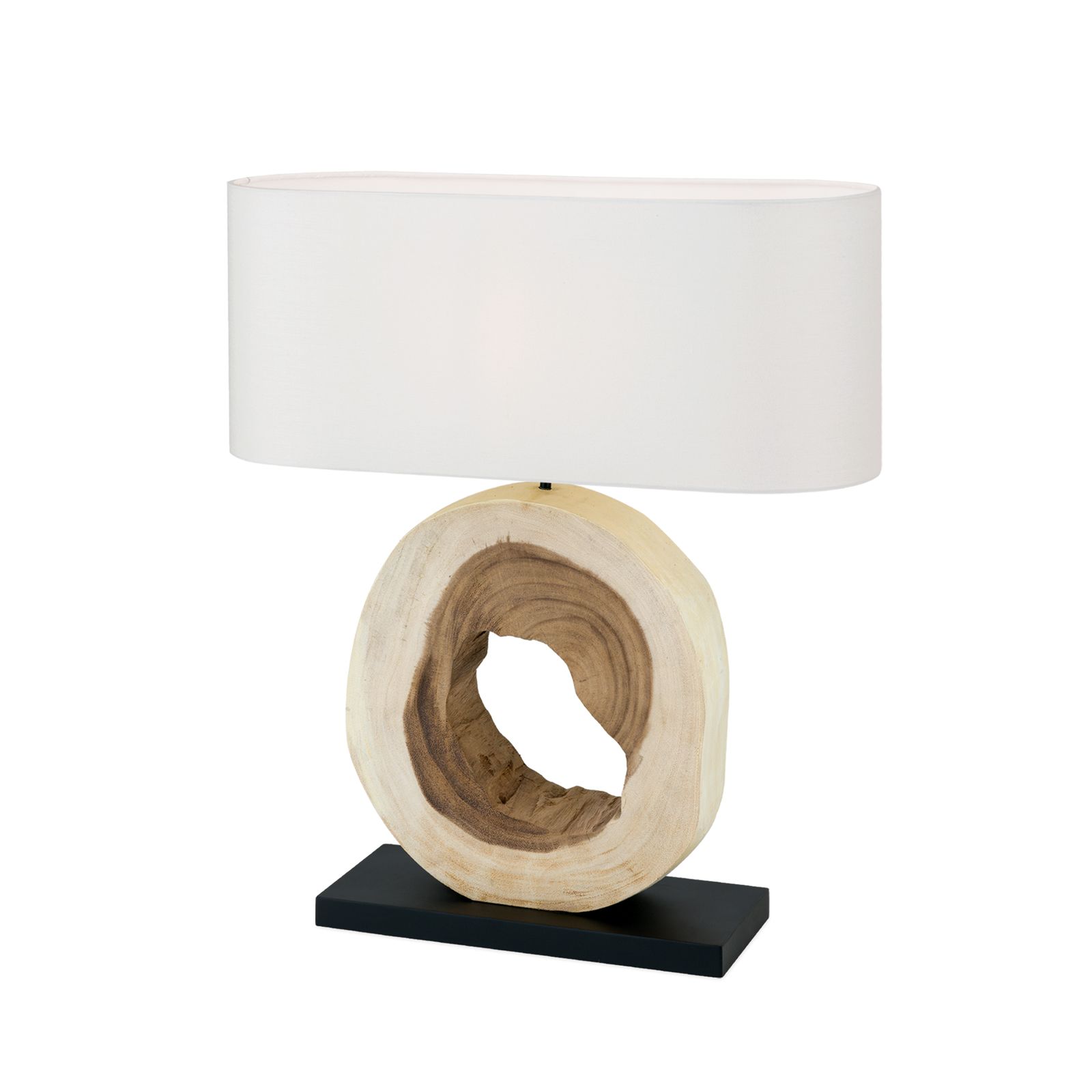 Tischleuchte NATHAN, Naturholz mit weißem Stoffschirm