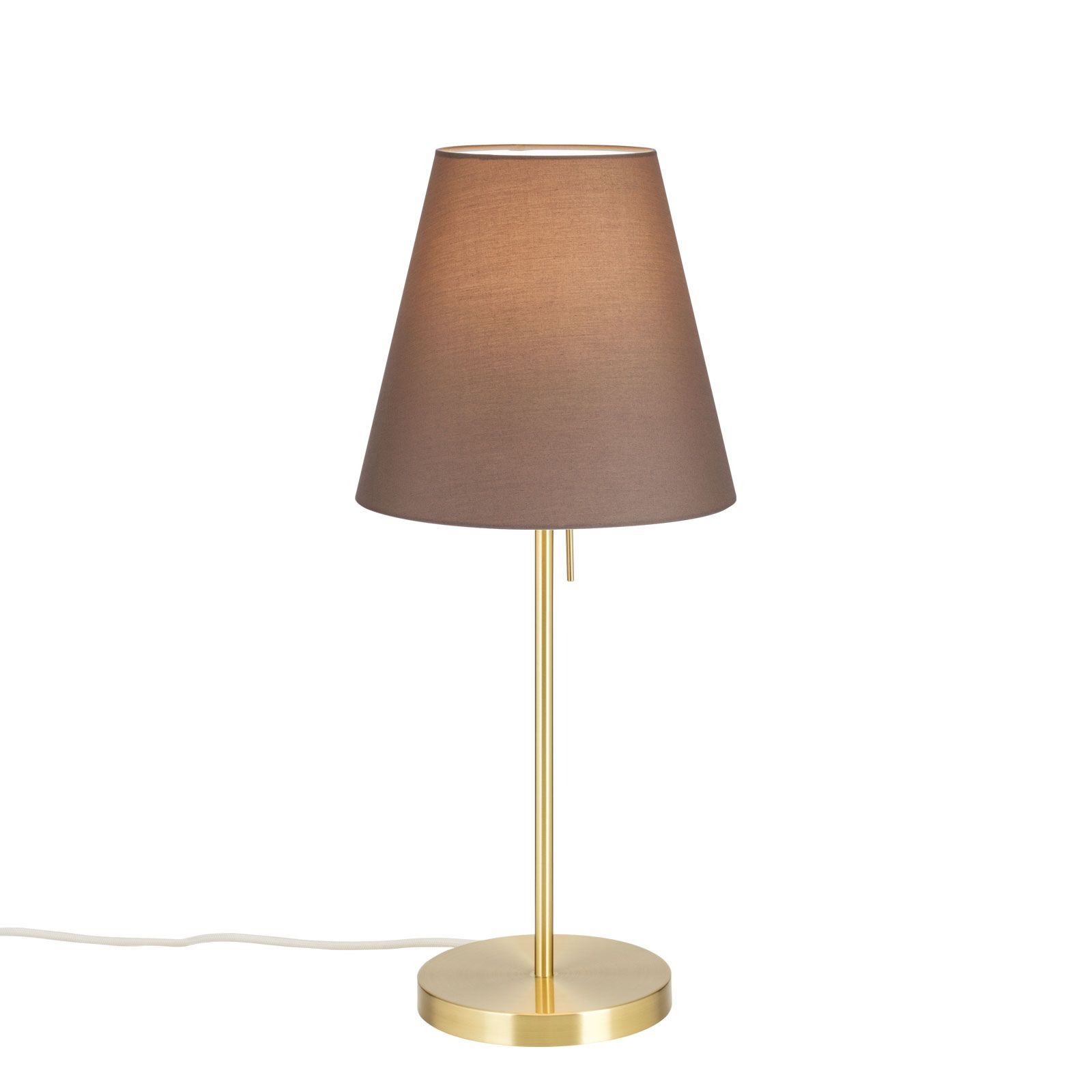 Tischleuchte SHADE, Medium, Messing-matt, mit konischem, braunem Schirm